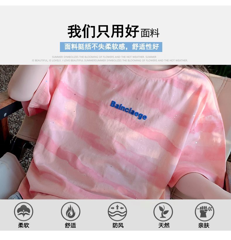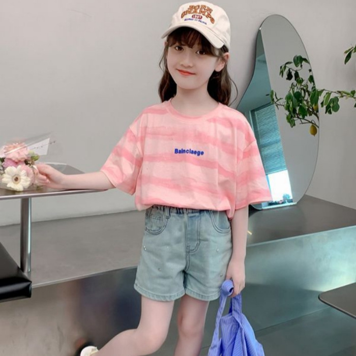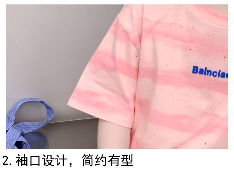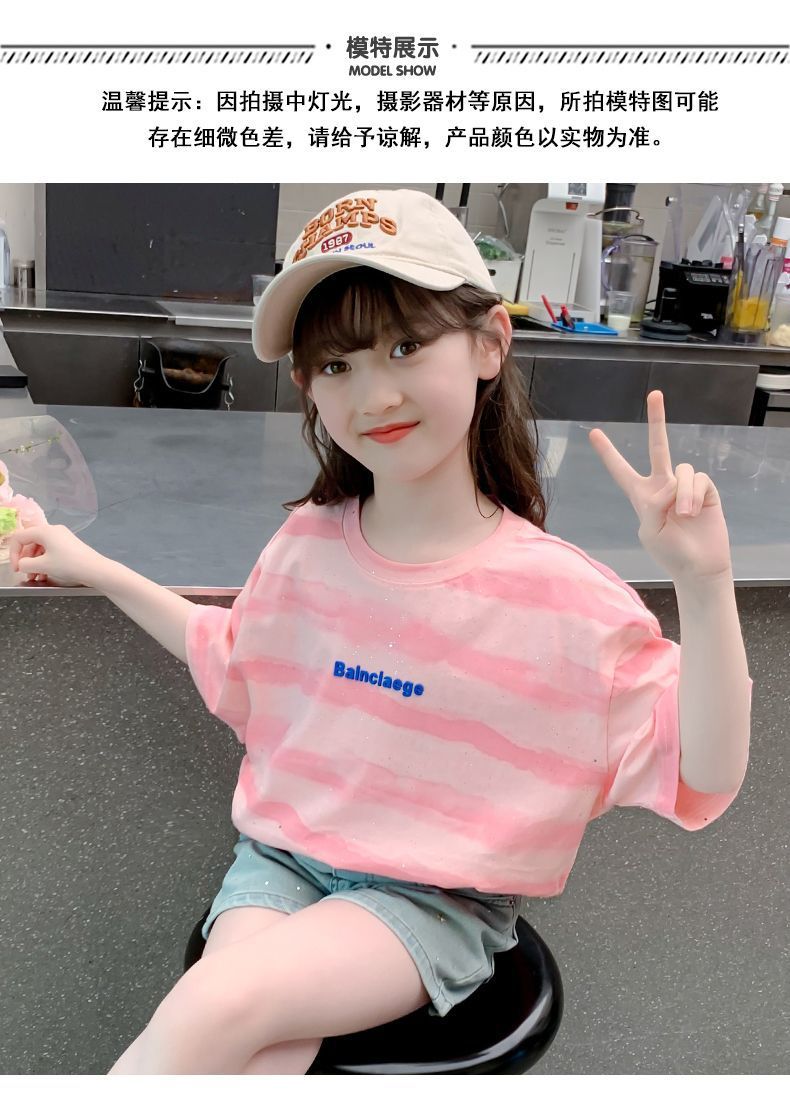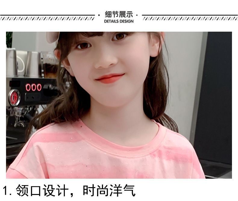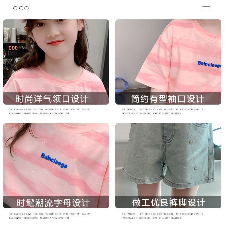 여자 반팔 티셔츠 2025 새로운 스타일 여름 어린이 온라인 인기 서양식 올 매치 코튼 티셔츠 걸스 여름 최고 트렌디스토어 가기