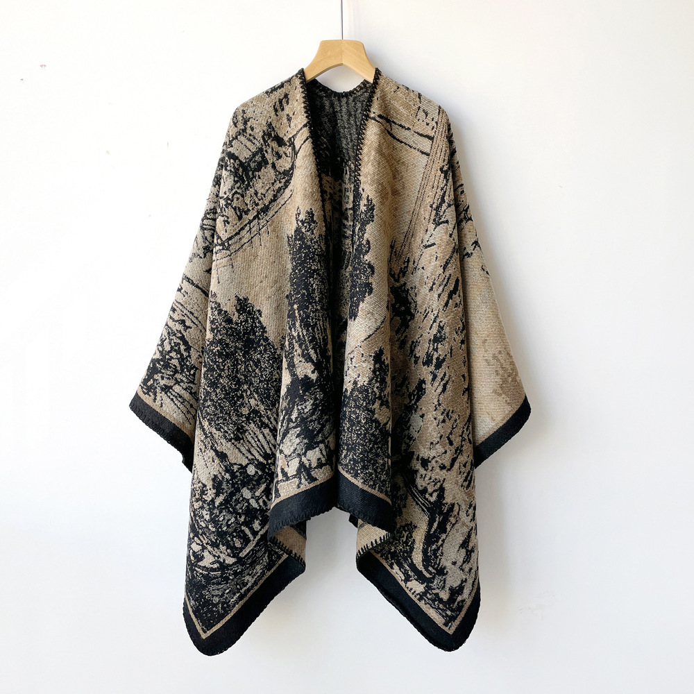 유행 목도리 여성 신장 리장 관광 사진 분위기 높은 감각 스카프 시원한 바람 야외 차가운 울