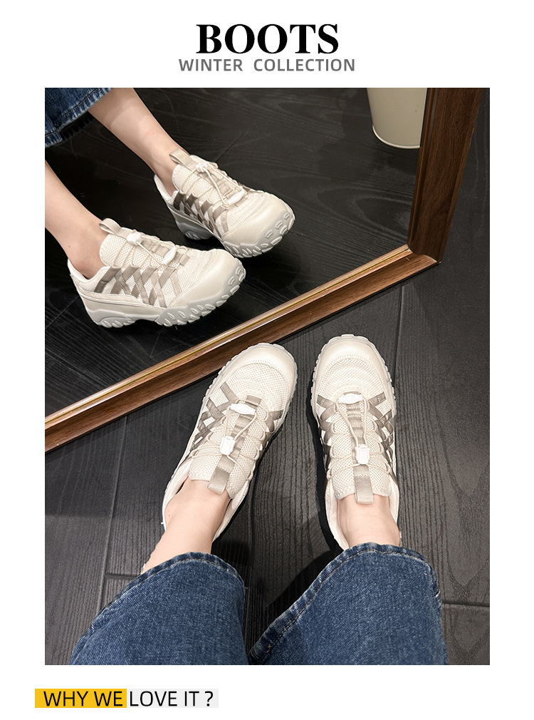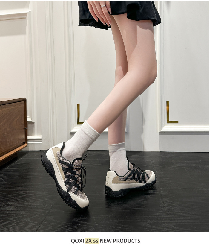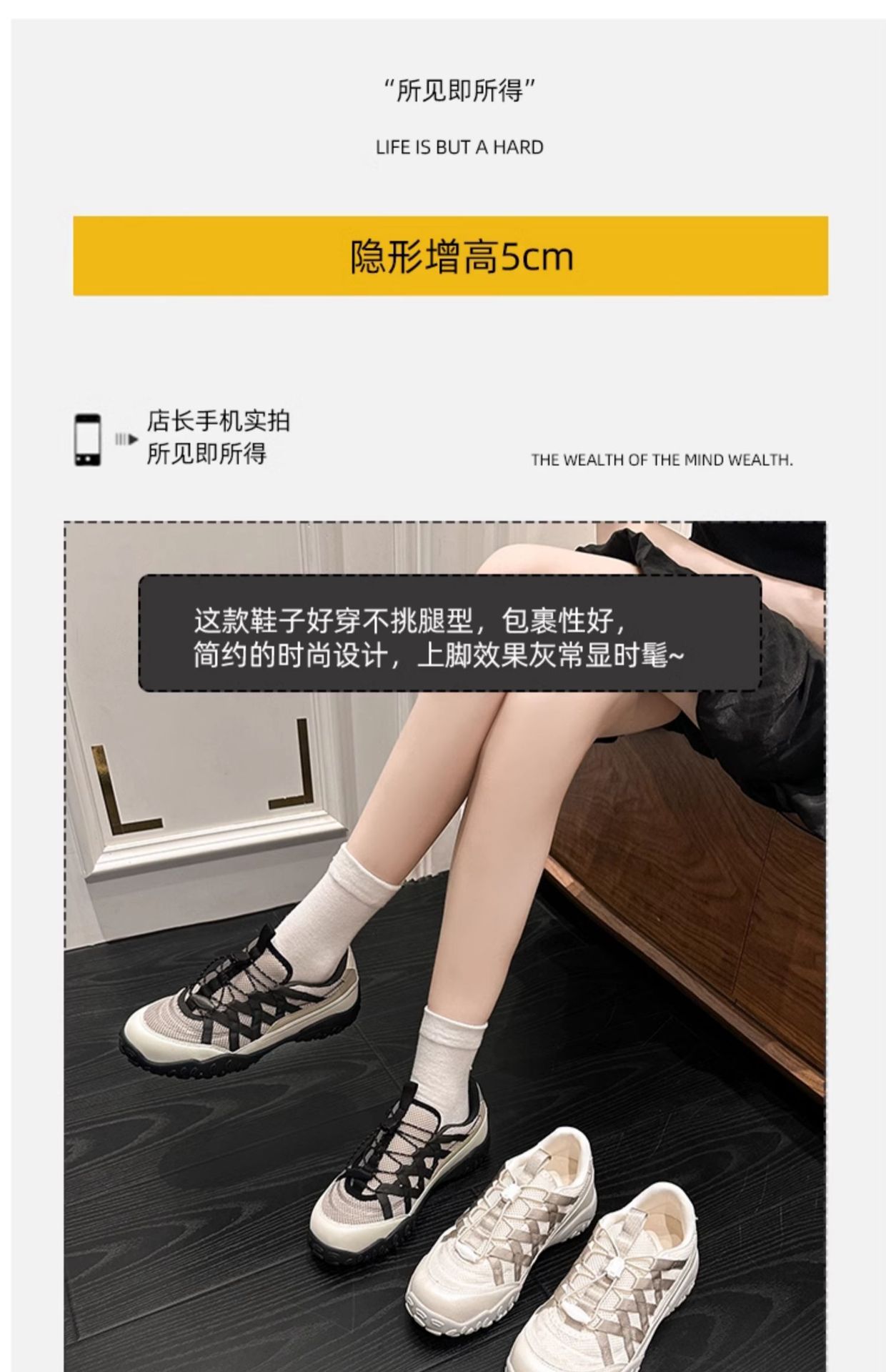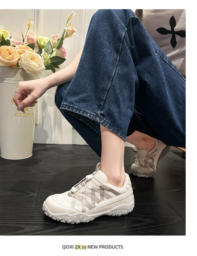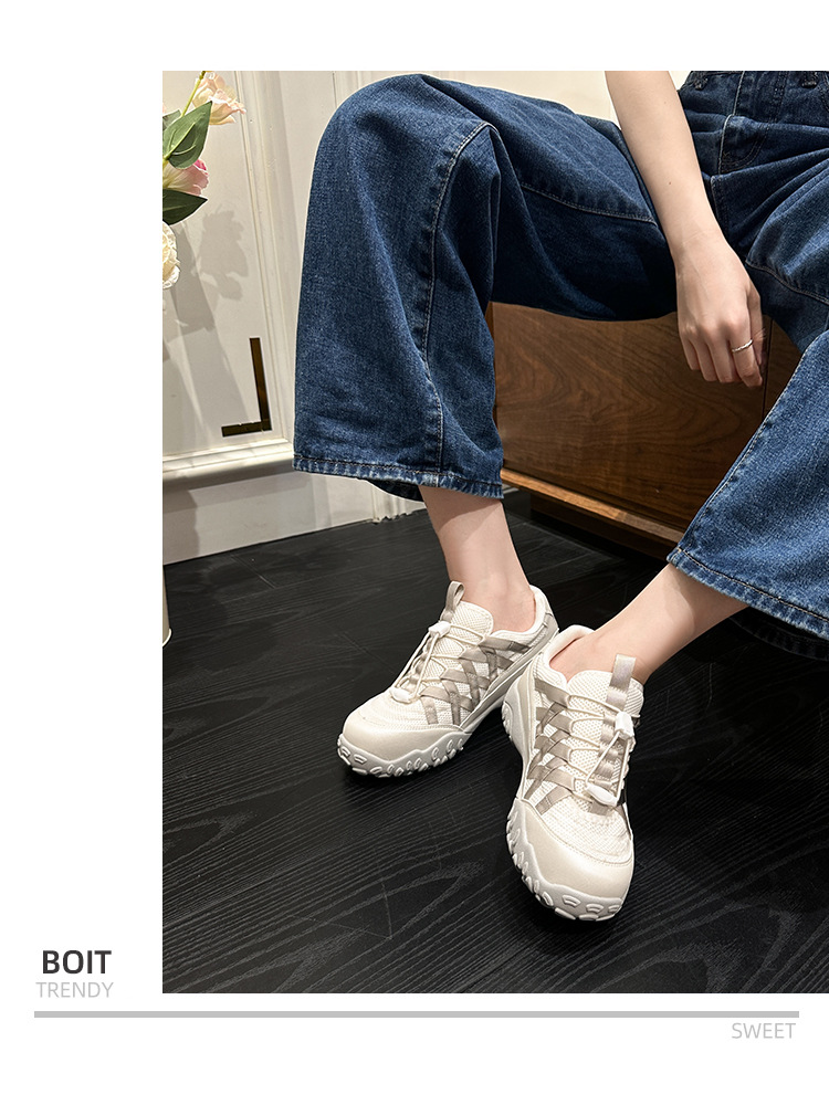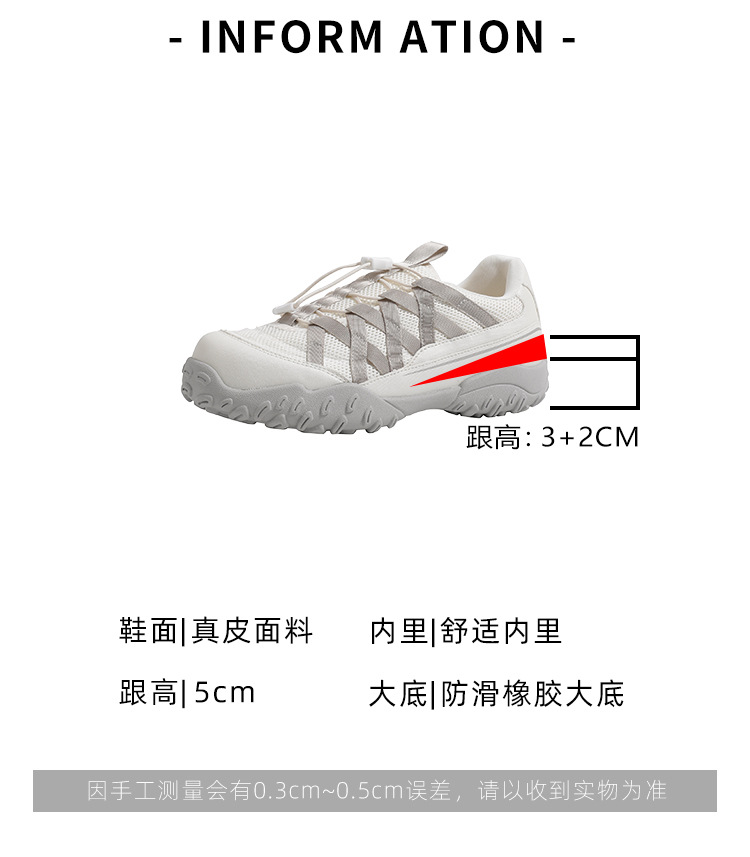 Cowhide 버전 ~ Han Suxi 두꺼운 밑창 캐주얼 운동화 여성 등산 플랫폼 신발 발레 리본 토레 신발스토어 가기