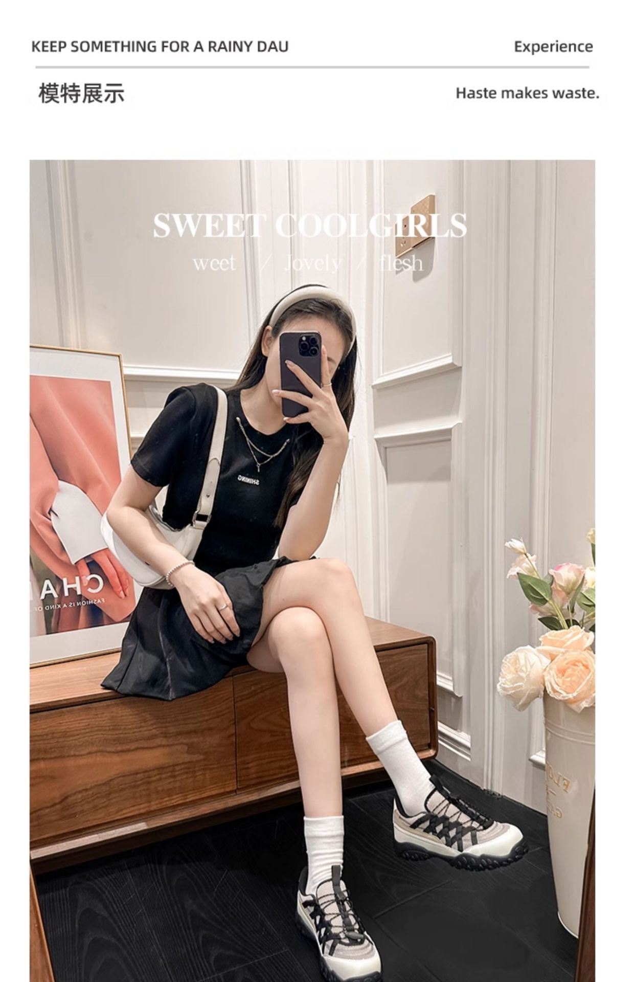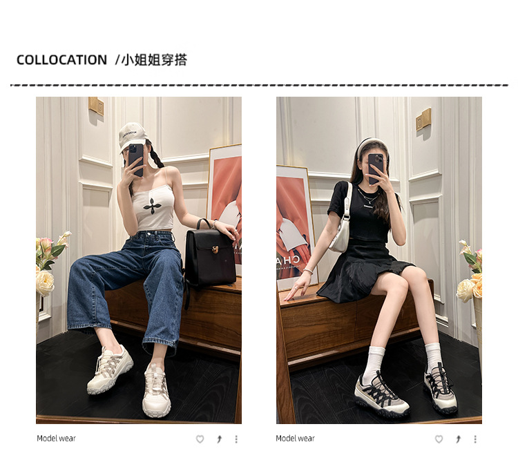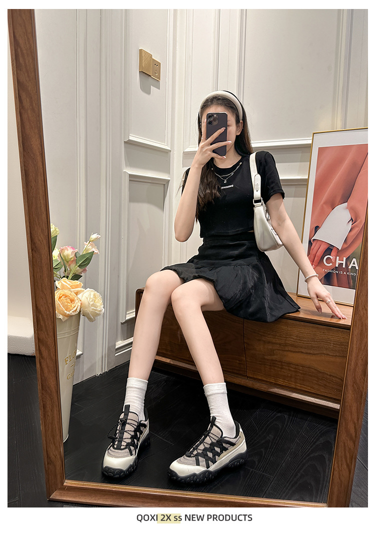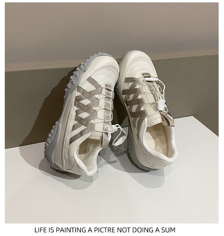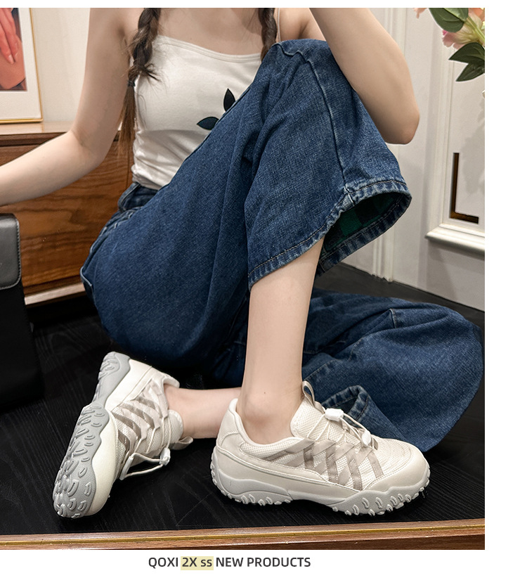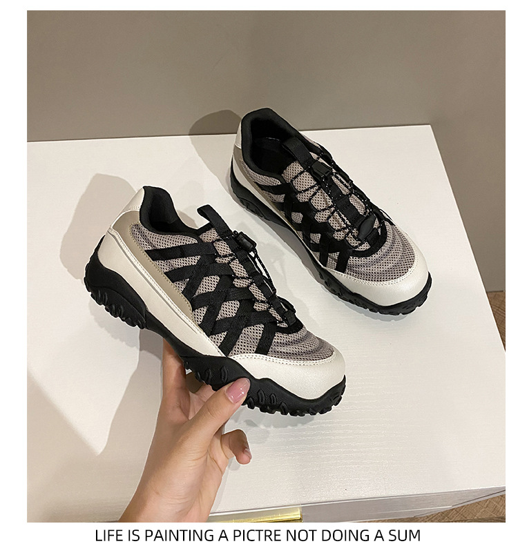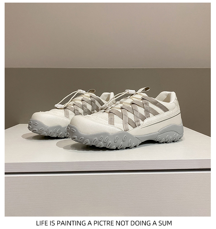 Cowhide 버전 ~ Han Suxi 두꺼운 밑창 캐주얼 운동화 여성 등산 플랫폼 신발 발레 리본 토레 신발스토어 가기