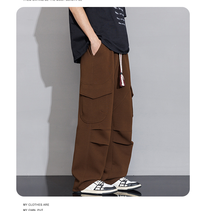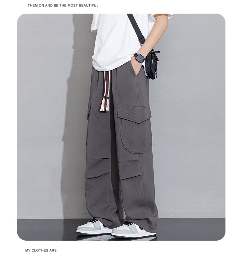 봄과 가을 패션 일본 스타일 캐주얼 루즈 바지 남자 기본 스트레이트 스트레이트 그린 우아한 올 매치 워크 바지스토어 가기