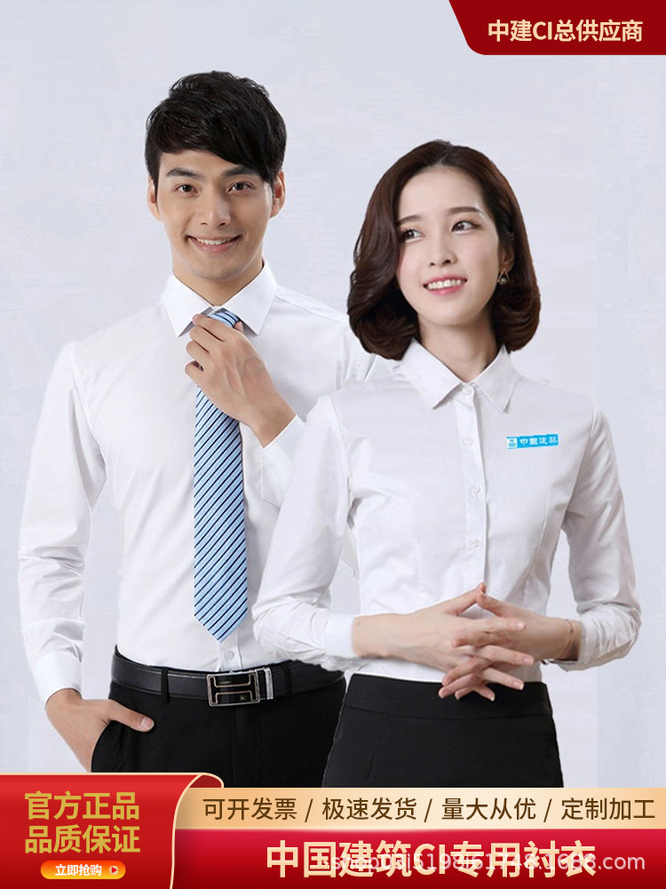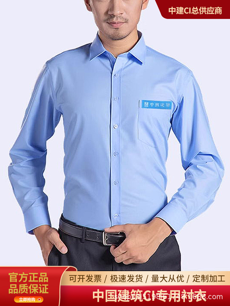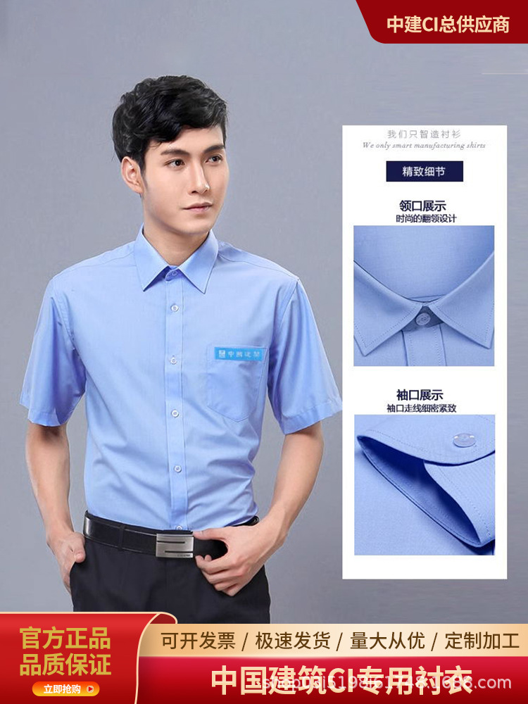 중국 건설 긴 반팔 셔츠 사업 바지 셔츠 블루 화이트 중국 건설 CI 툴링 골드 쉴드 코튼스토어 가기