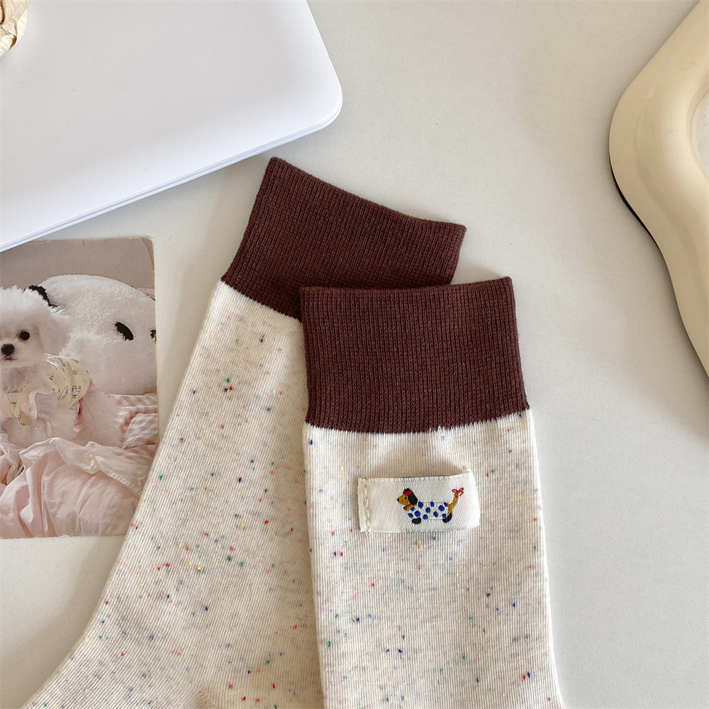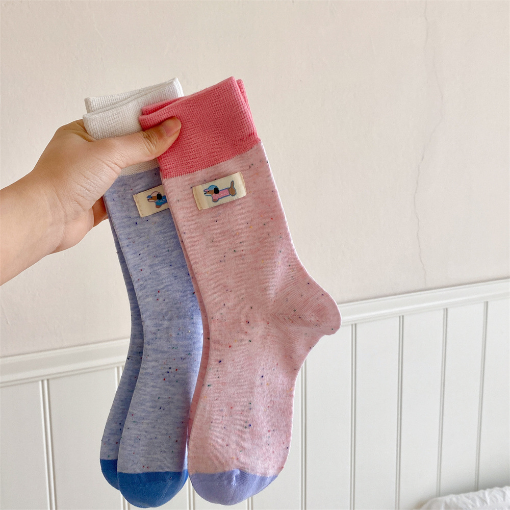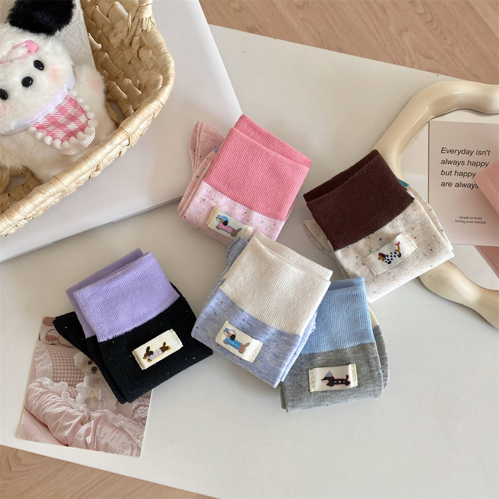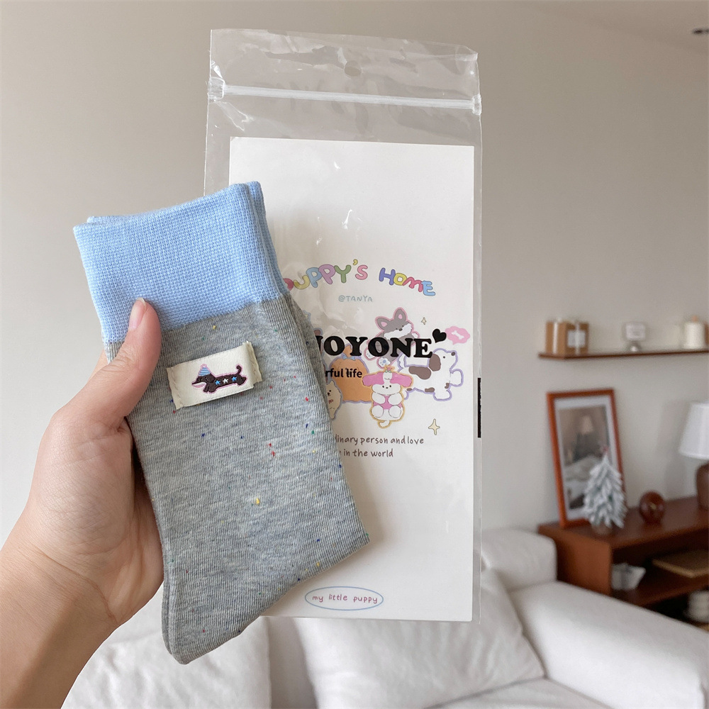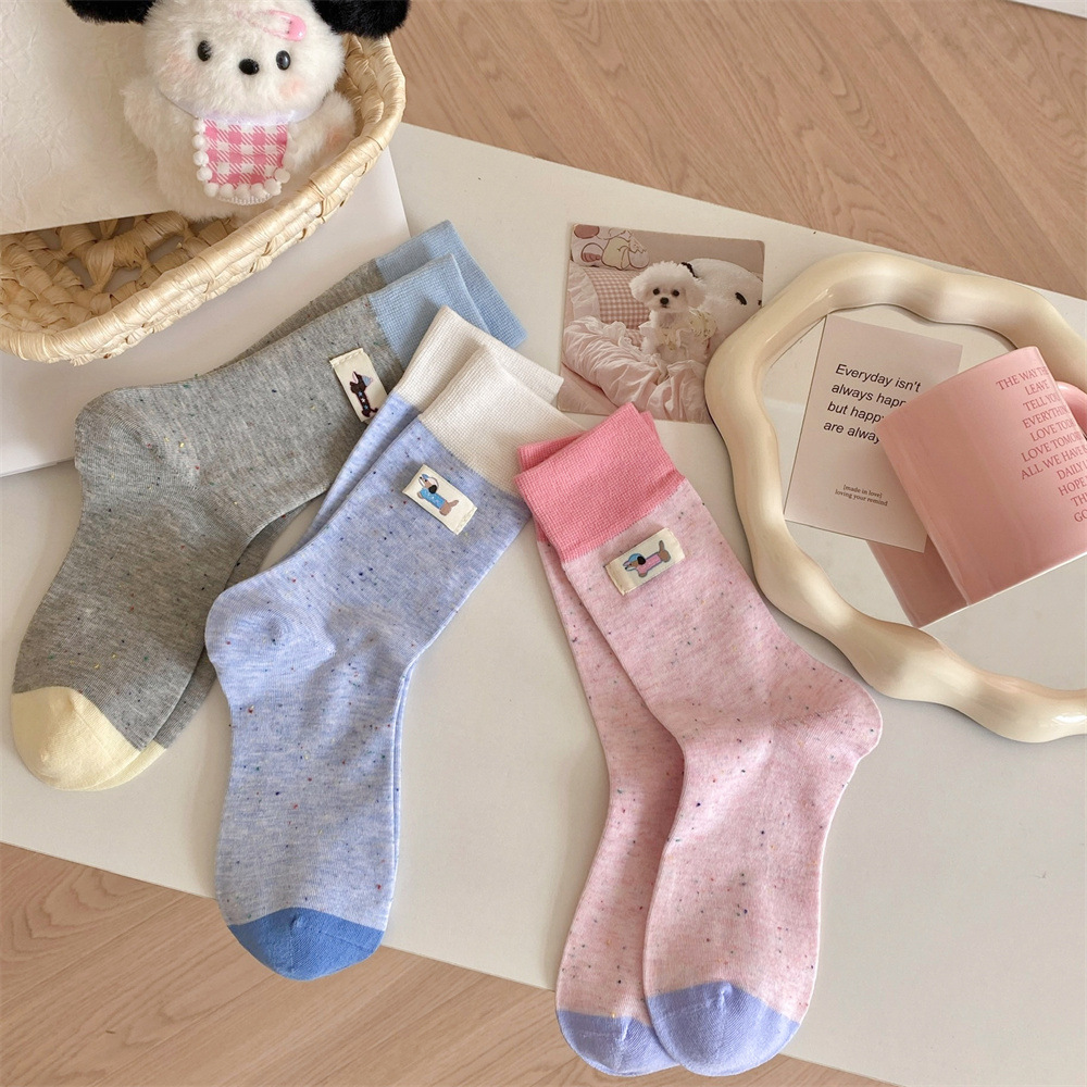 귀여운 개 양말 여성 순수 면 중간 길이 양말 만화 여름 한국 스타일 학술 스타일 디자인 센스 스타킹 독일 훈련 신발스토어 가기