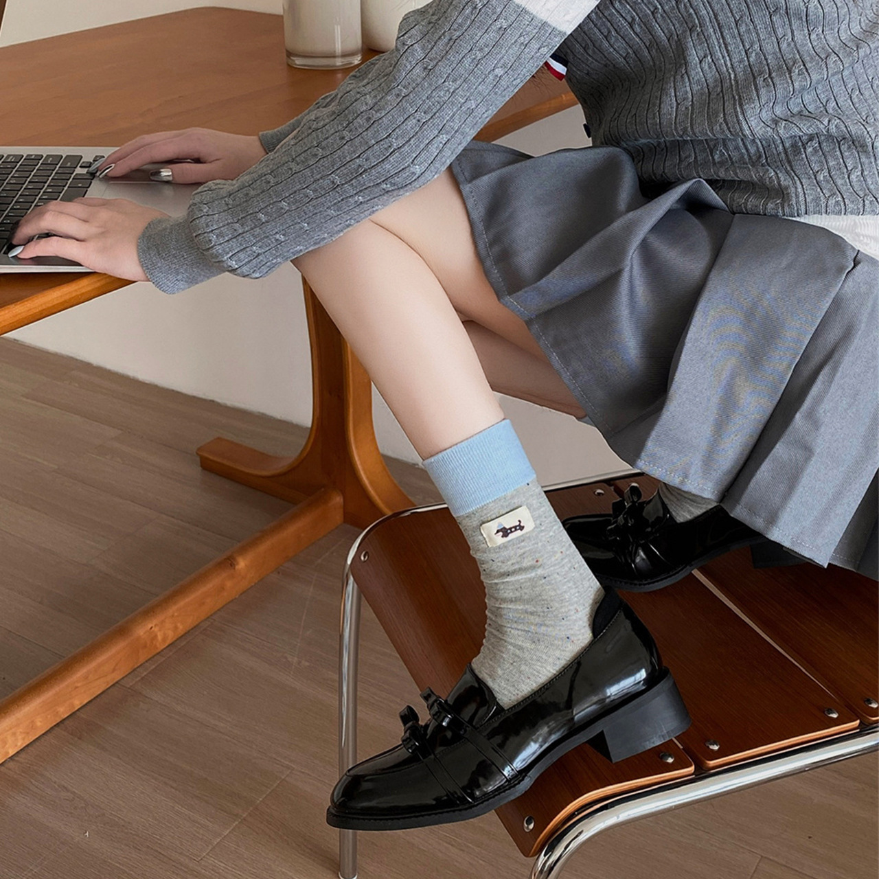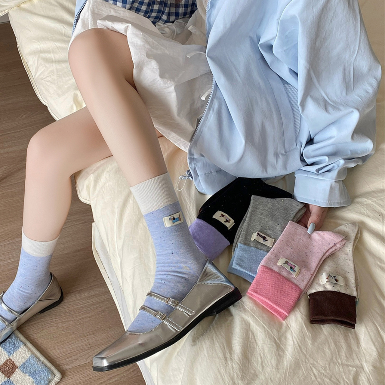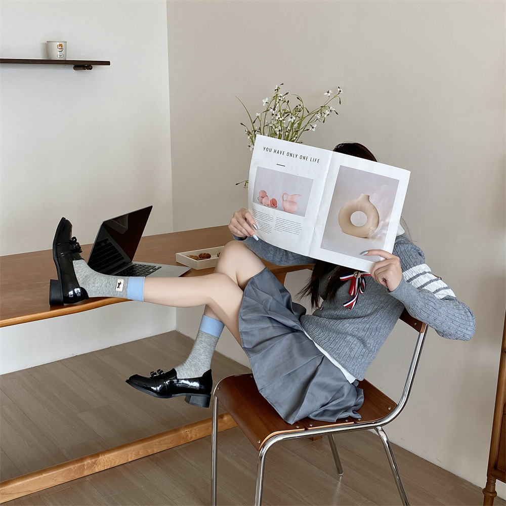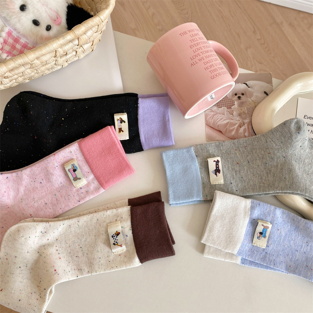 귀여운 개 양말 여성 순수 면 중간 길이 양말 만화 여름 한국 스타일 학술 스타일 디자인 센스 스타킹 독일 훈련 신발스토어 가기