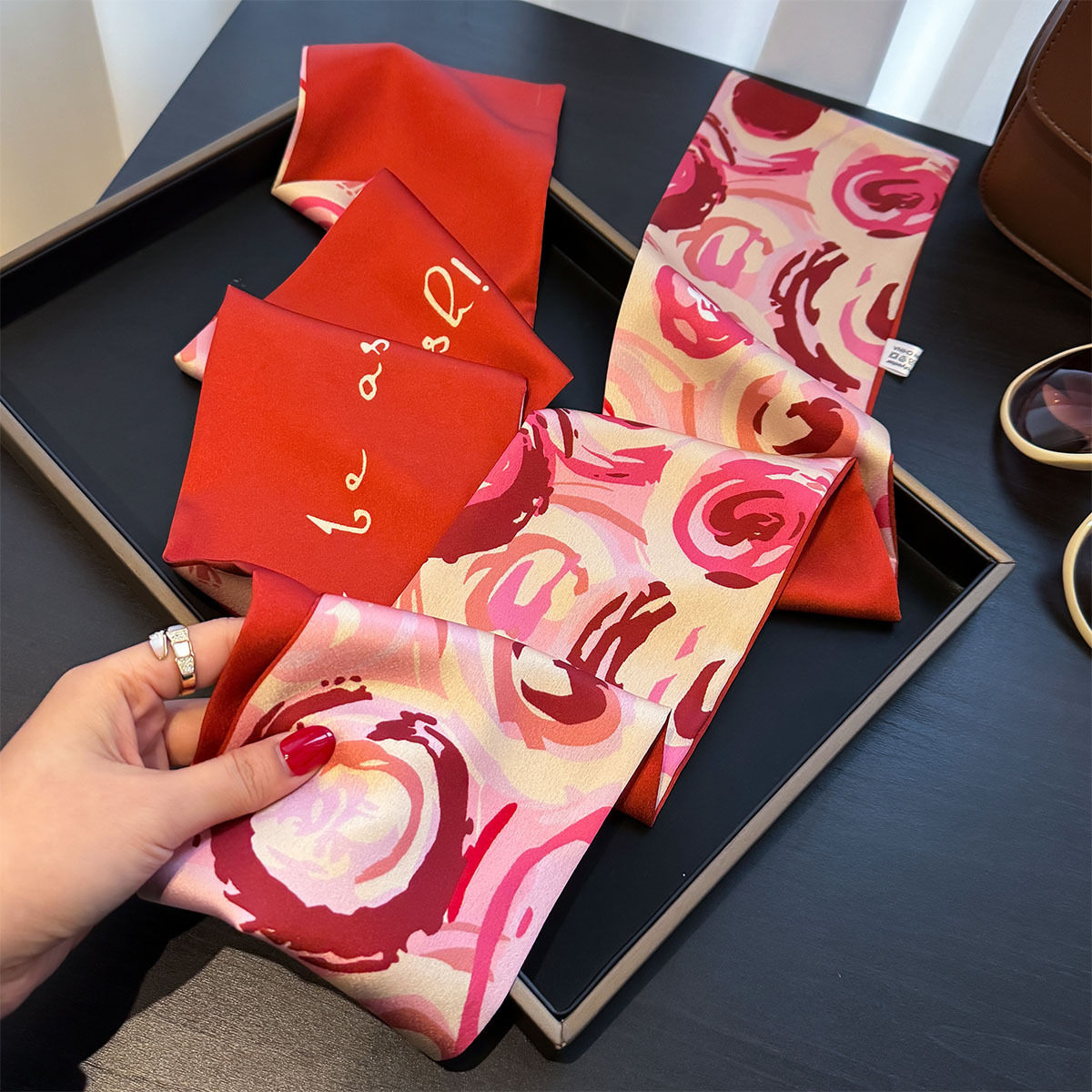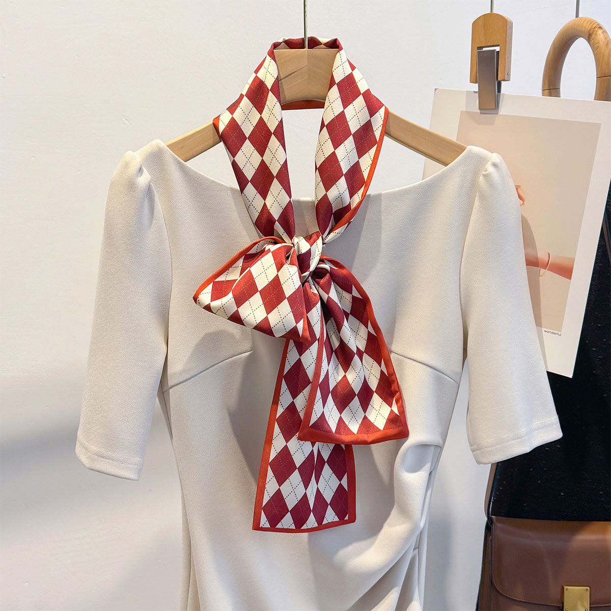 봄과 여름 새로운 긴 작은 스카프 빛 럭셔리 우아한 스카프 헤어 벨트 여성의 더블 레이어 우아한 타이 백 벨트 리본 작은 스카프스토어 가기