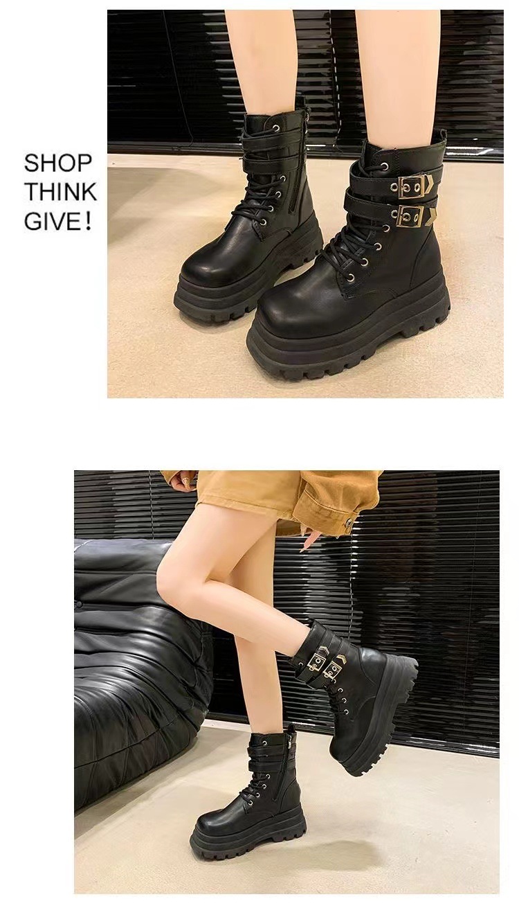 두꺼운 밑창 영국식 마틴 부츠 코믹 콘 여성용 발목 부츠 가을 및 겨울 가죽 부츠 코스 하이힐 신발 고딕 작은 오토바이 부츠스토어 가기