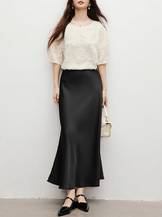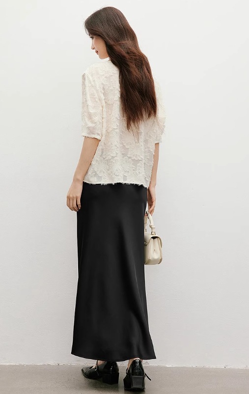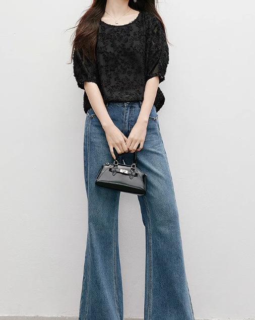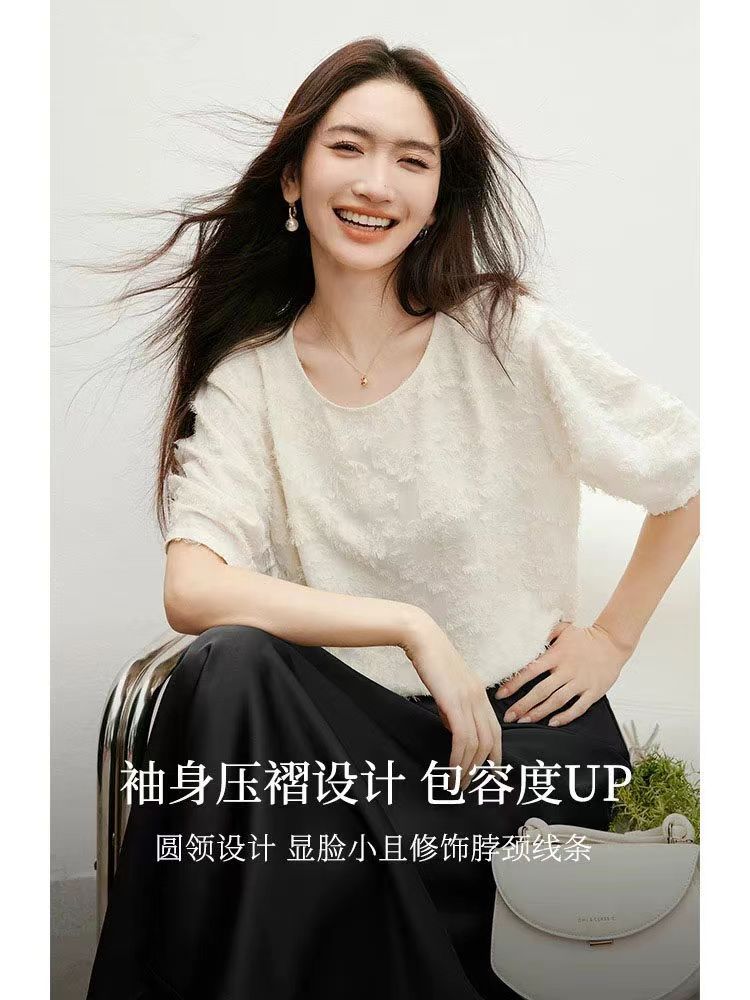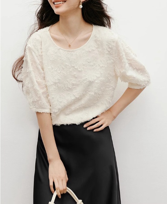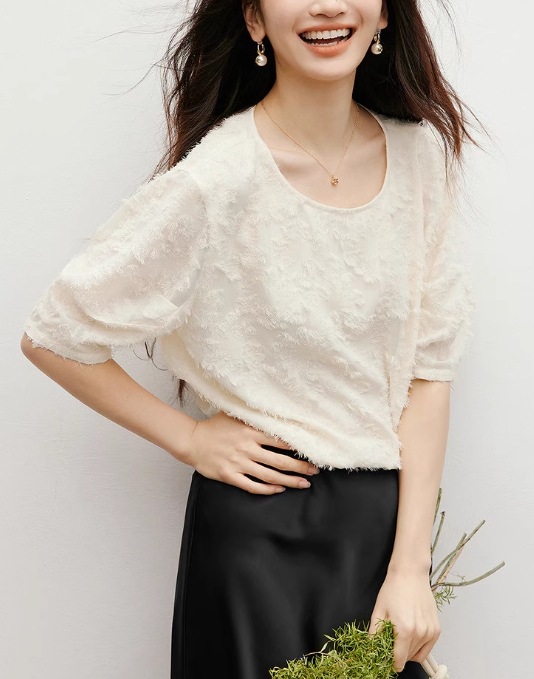 컷 꽃 질감 쉬폰 셔츠 2025 봄 새로운 둥근 목 기질 짧은 소매 상단 90225062001H스토어 가기