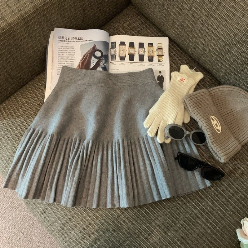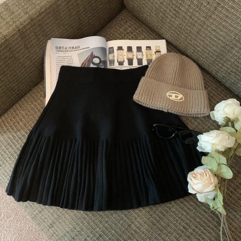 봄과 여름 새로운 스트레치 높은 허리 슬리밍 주름 치마 여성의 짧은 유행 엉덩이 아우터 착용 니트베이스 스커트스토어 가기