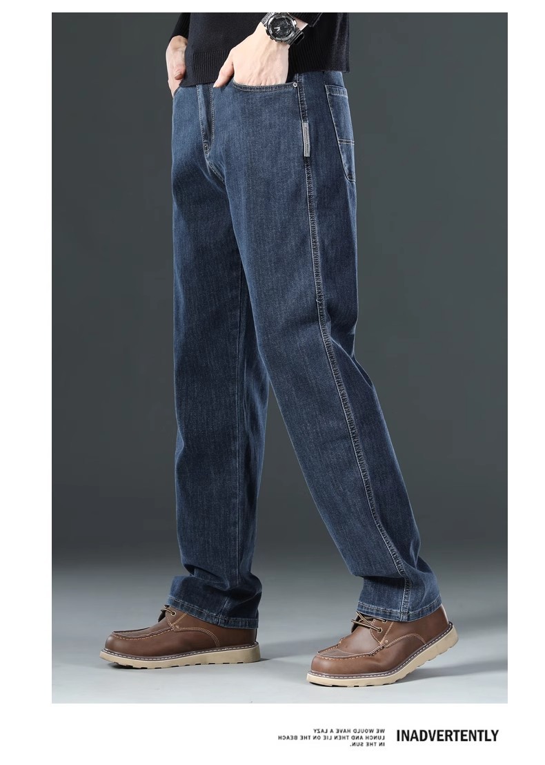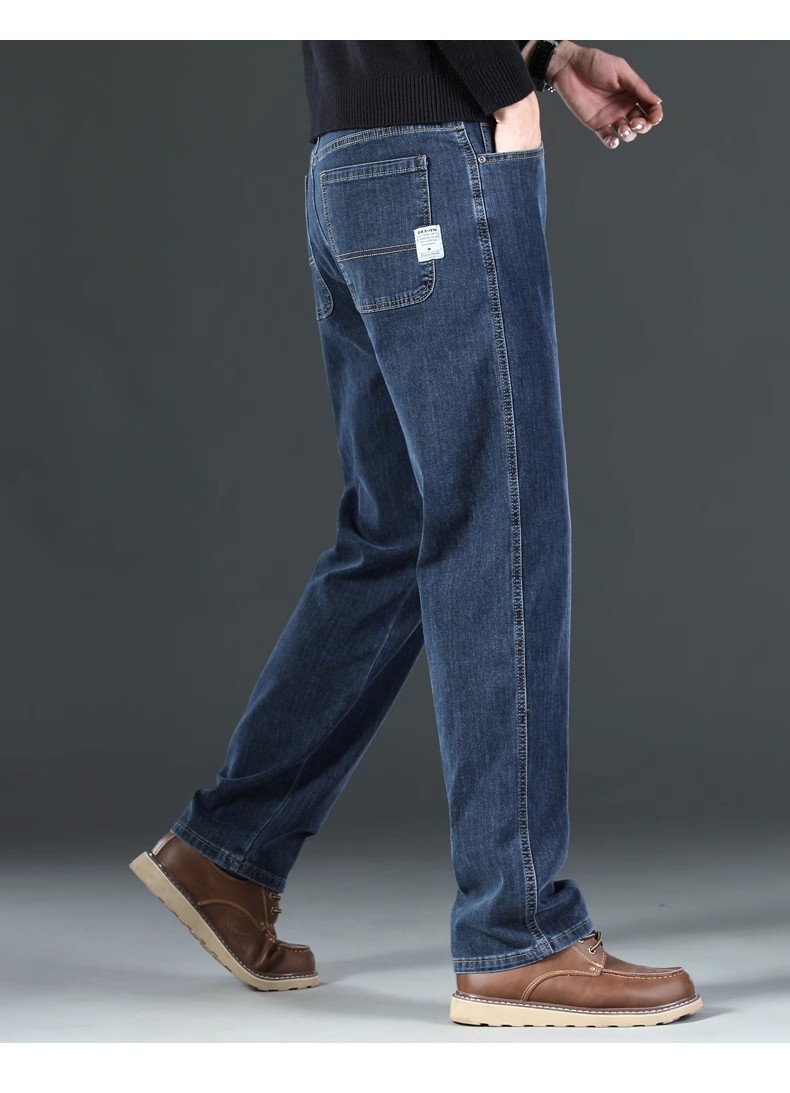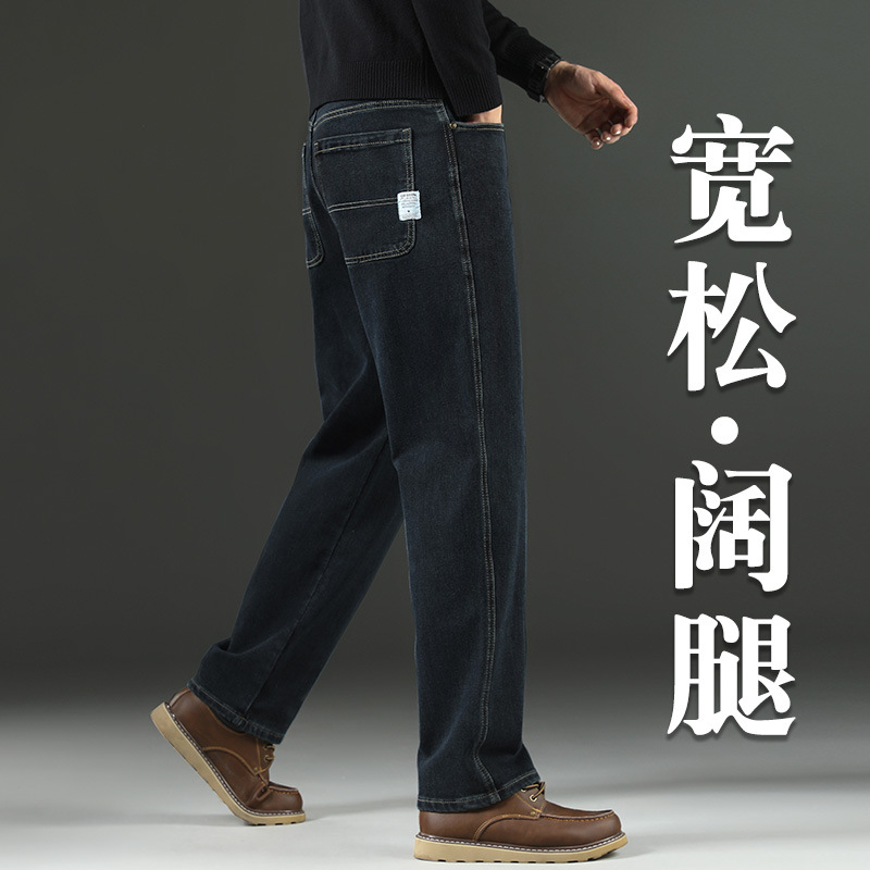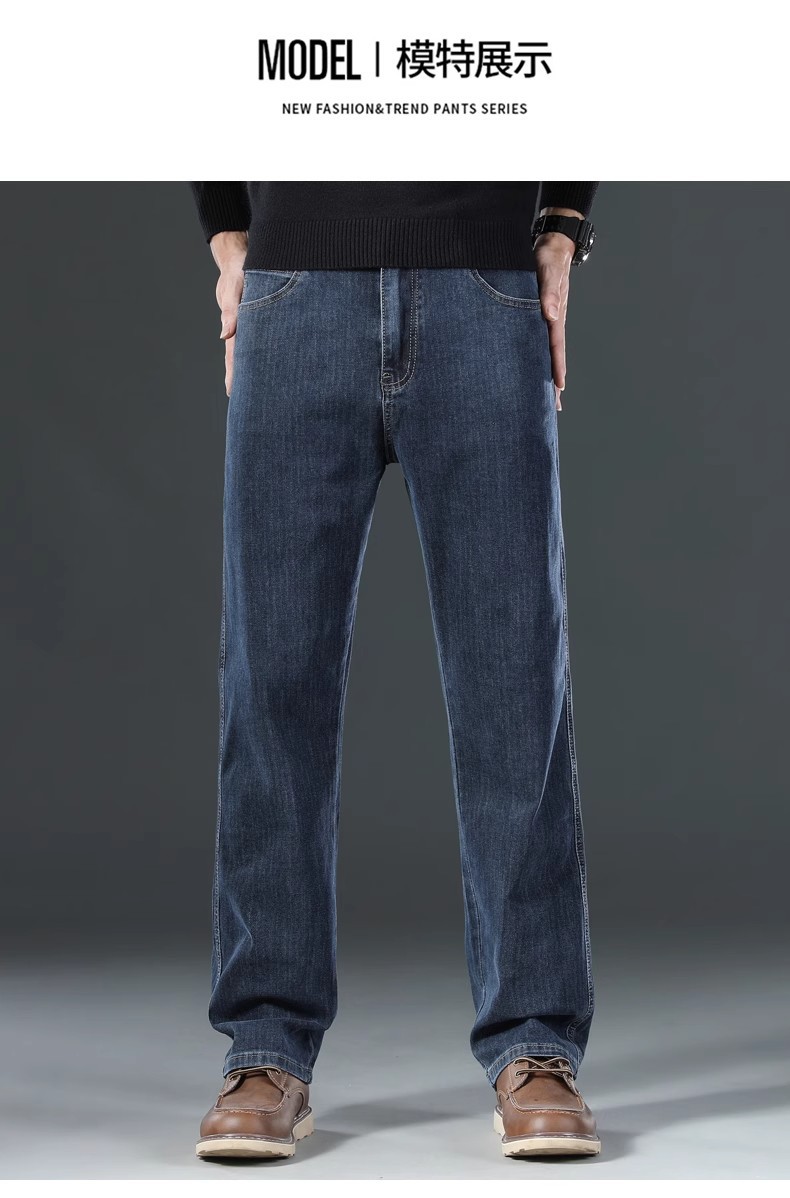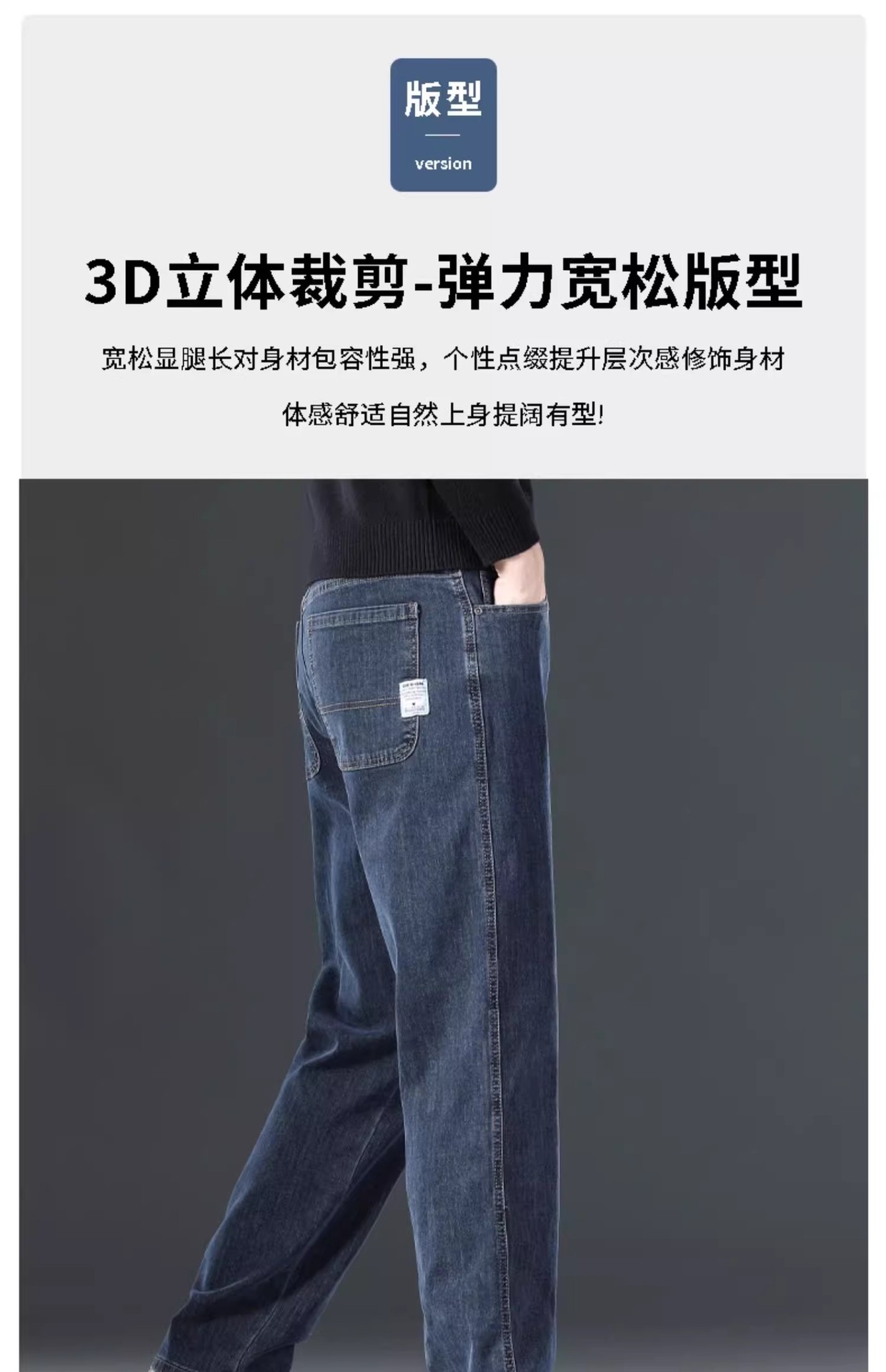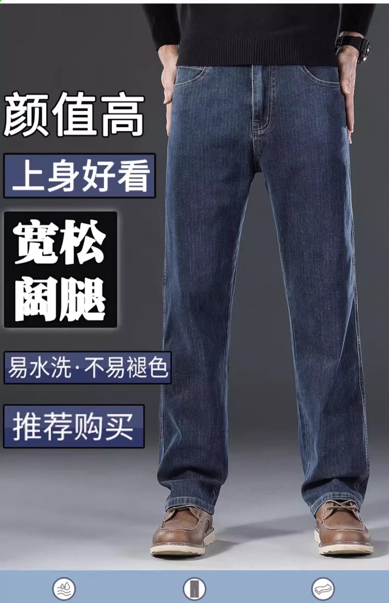 고급 와이드 레그 청바지 2025 년 봄과 여름 스트레칭 중년의 느슨한 스트레이트 롱 팬츠 남성 원피스 헤어 세대스토어 가기