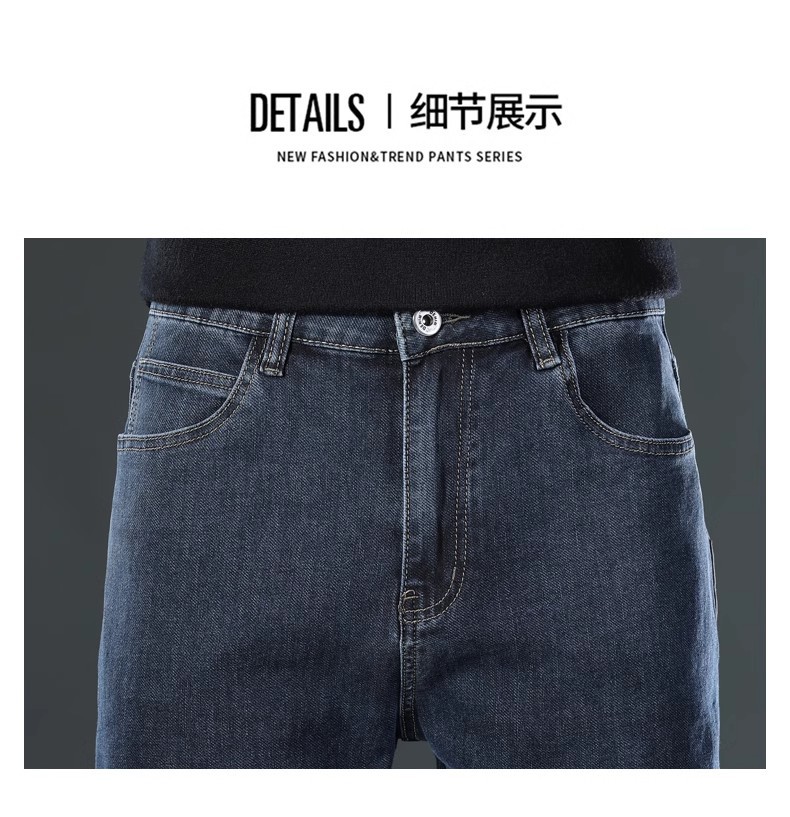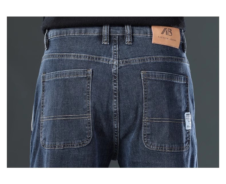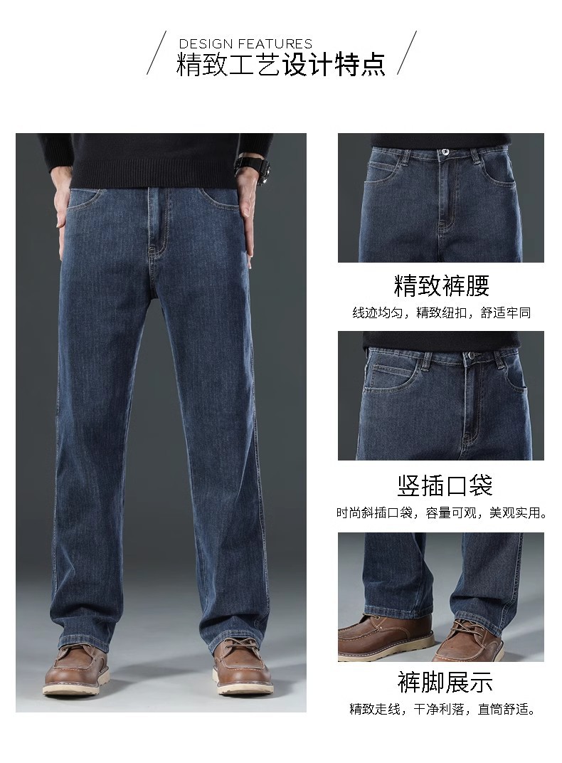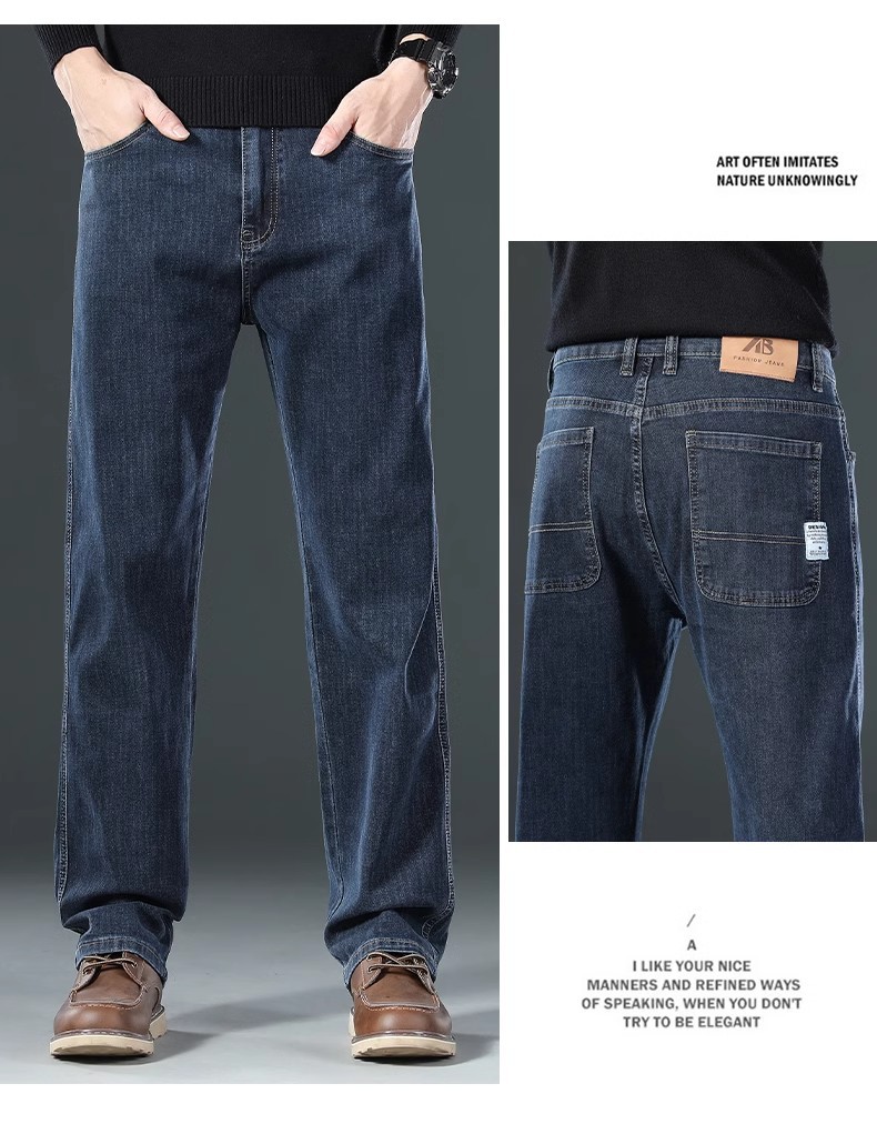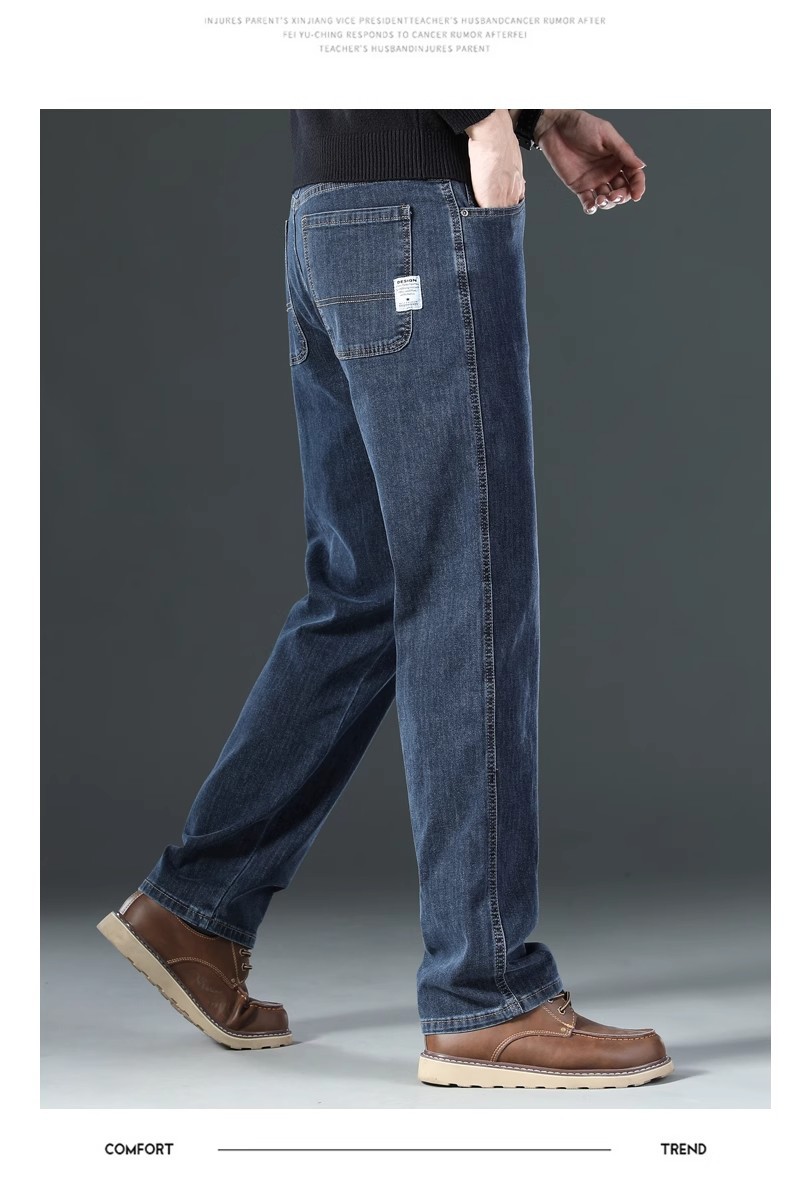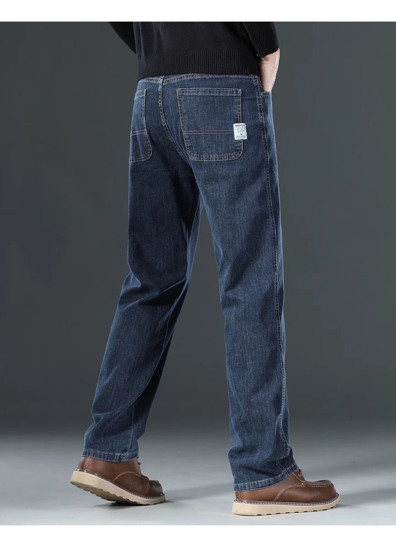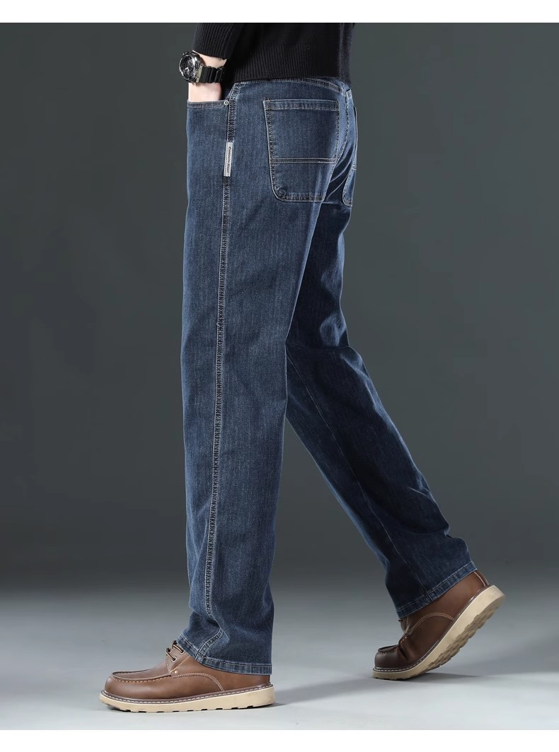 고급 와이드 레그 청바지 2025 년 봄과 여름 스트레칭 중년의 느슨한 스트레이트 롱 팬츠 남성 원피스 헤어 세대스토어 가기