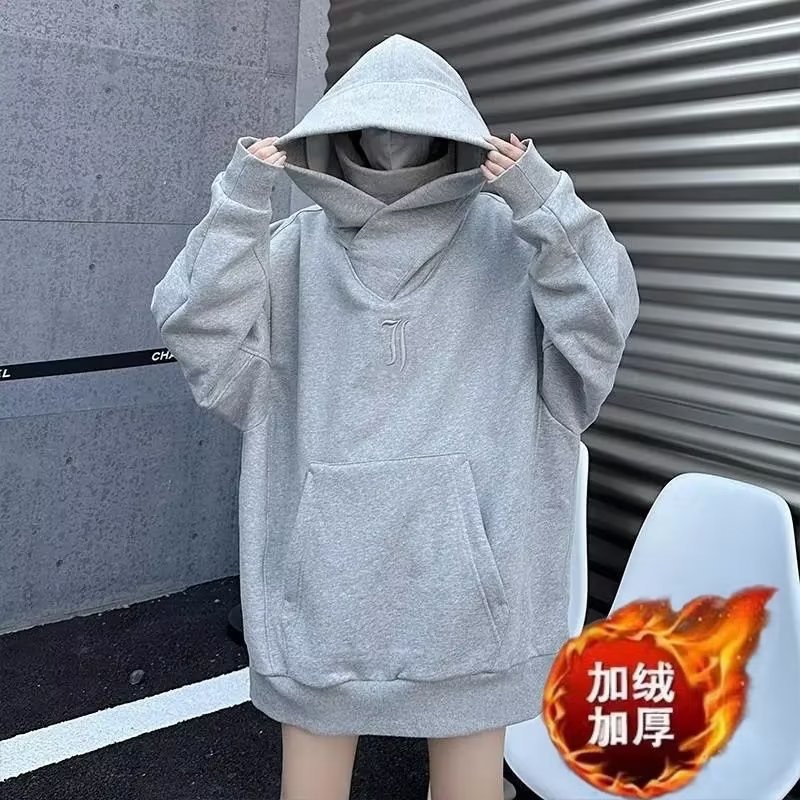 I People's Society 두려움 남성 가을과 겨울 미국 스타일 기능성 바람 무거운 후드 자켓 기모 두꺼운 느슨한 높은 칼라 스웨트 셔츠