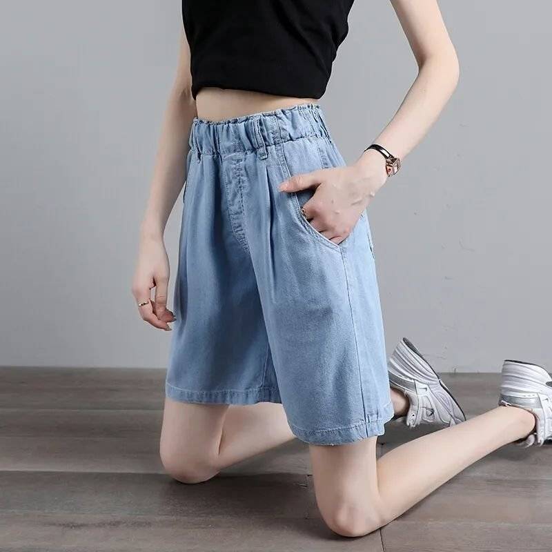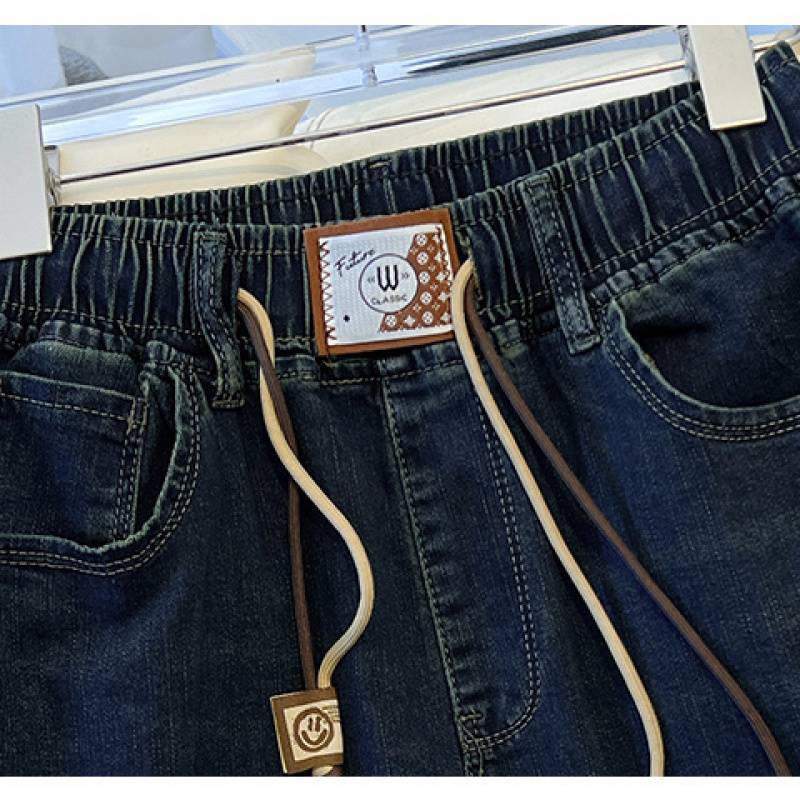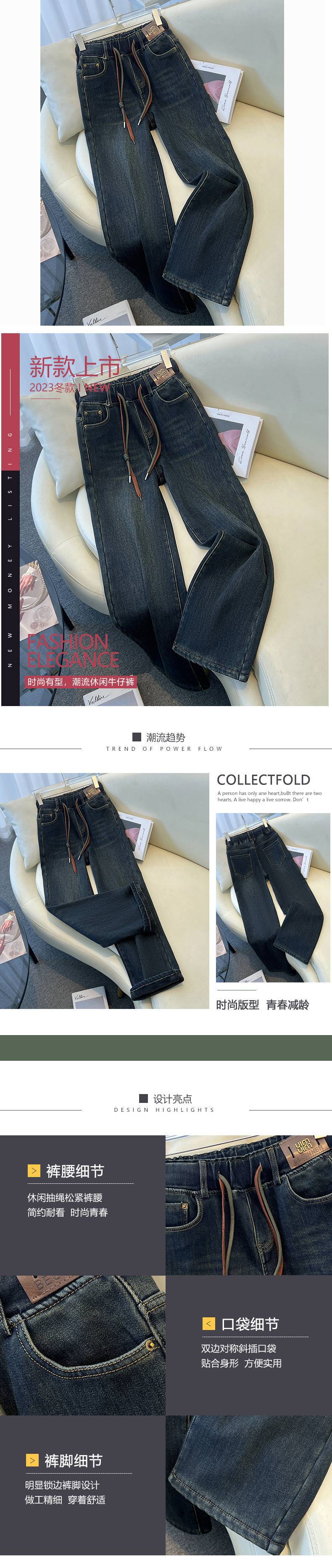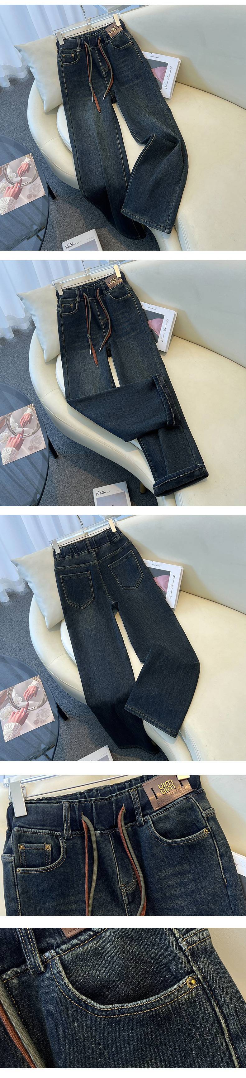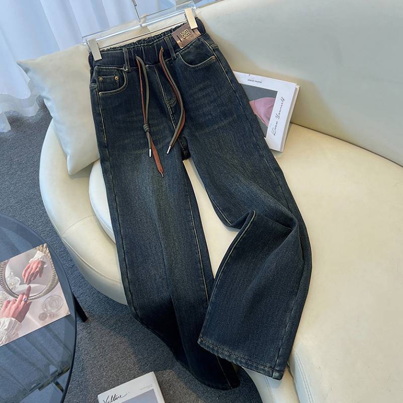 탄성 허리 드로스트링 청바지 여성의 2025 봄 새로운 높은 허리 느슨한 슬리밍 올 매치 좁은 넓은 다리 바지스토어 가기