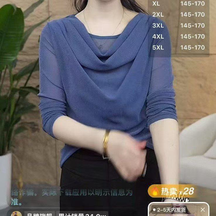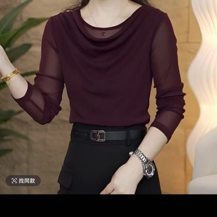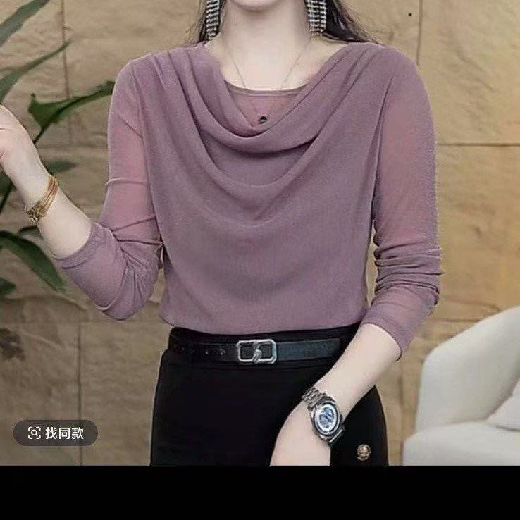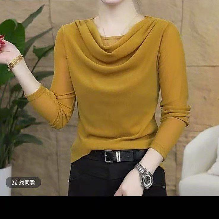 헤어 어머니 파일 칼라 외국 스타일 메쉬 스트레치 패션 여성 봄 긴팔 티셔츠 여성 조커 탑스토어 가기