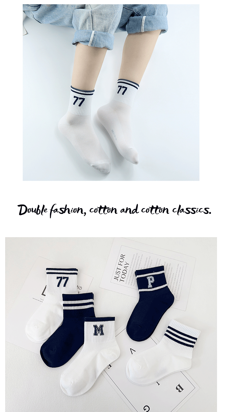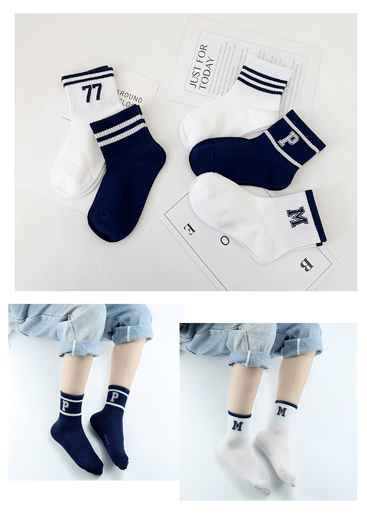 Yi Shuang 쌍 어린이 양말 여름 새로운 메쉬 통기성 유행 브랜드 편지 중간 튜브 양말 코튼 큰 어린이 스포츠 양말스토어 가기