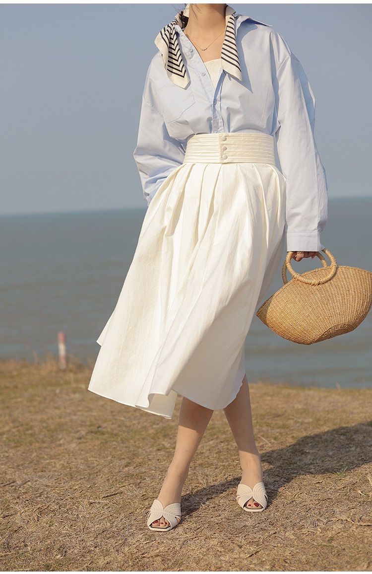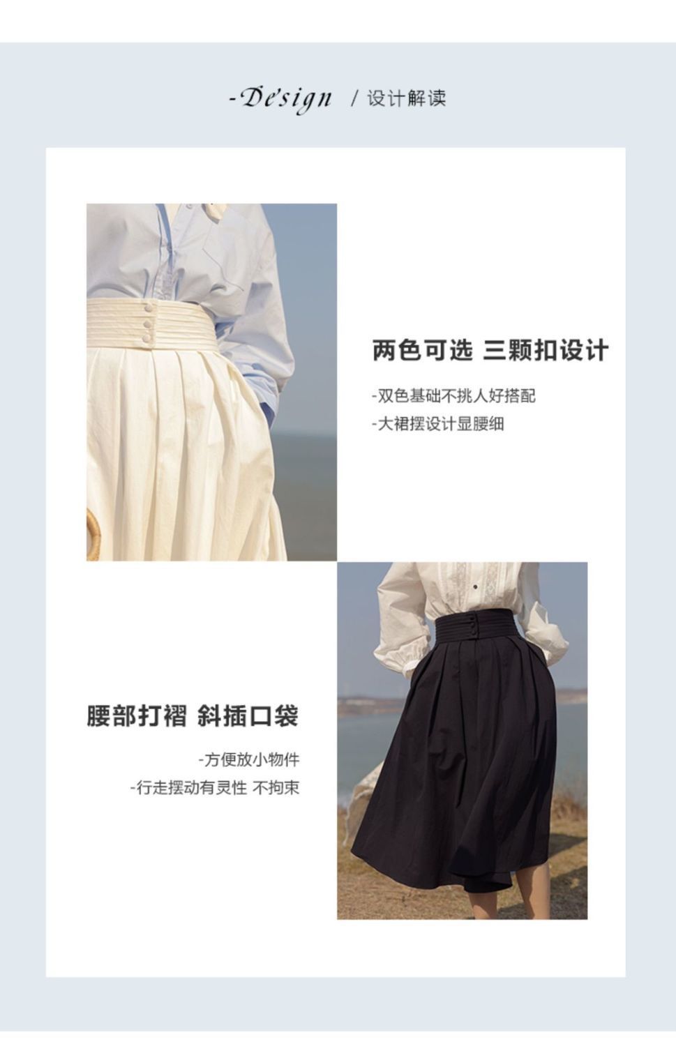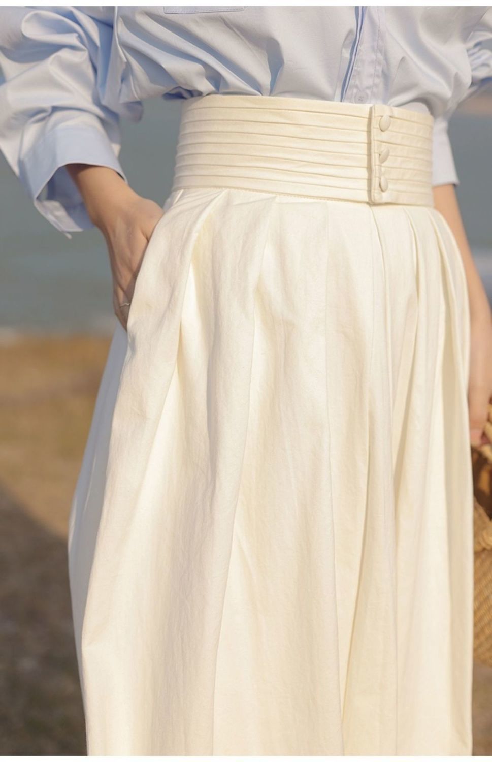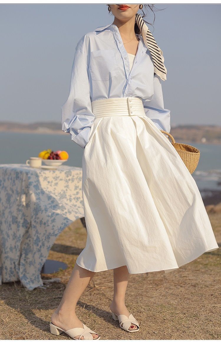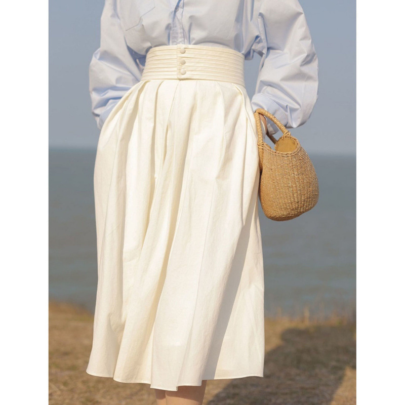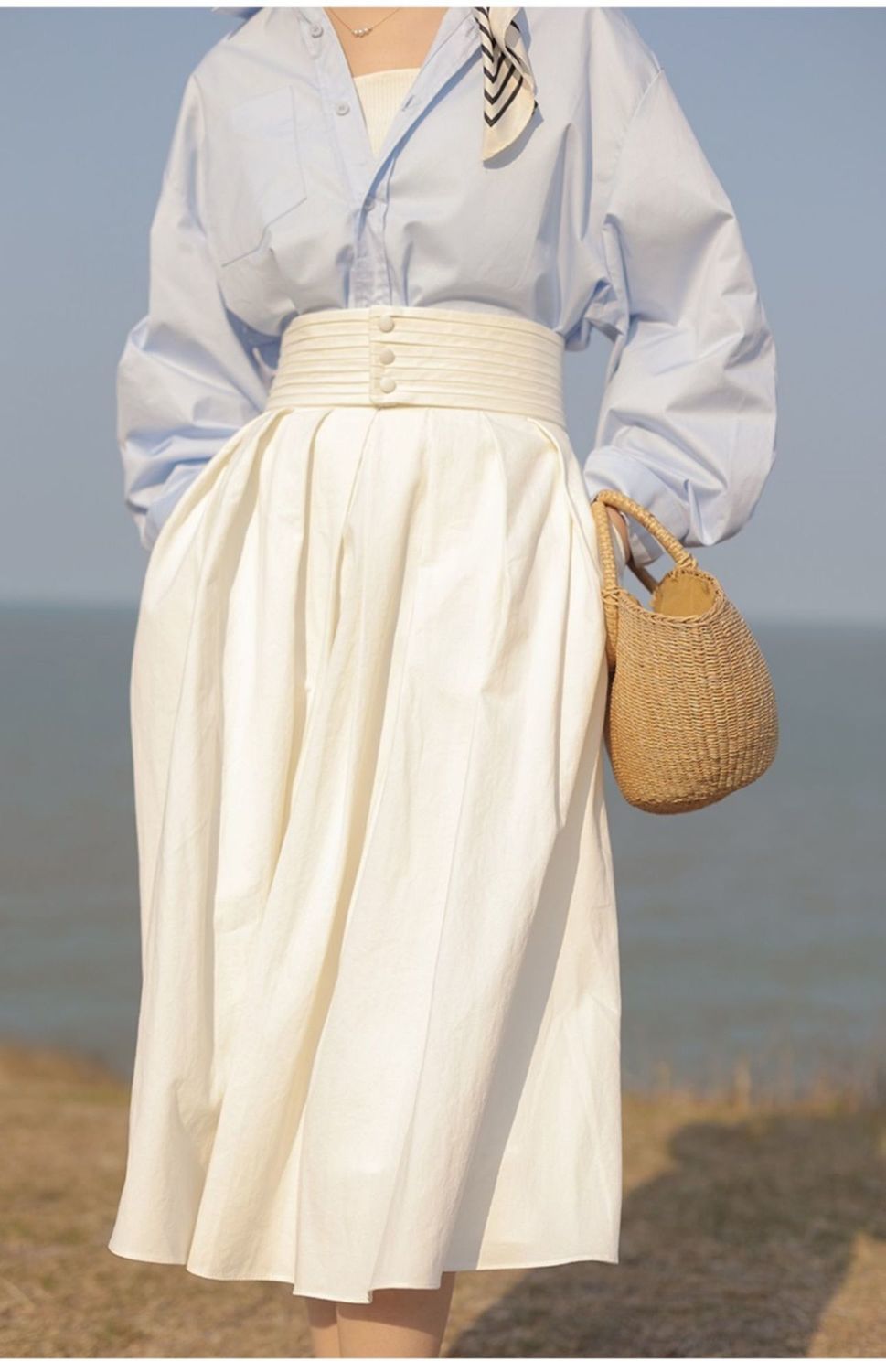 프랑스 흰색 높은 허리 A-라인 우산 치마 치마 2025 가을 디자인 틈새 헵번 스타일 중간 길이 치마스토어 가기