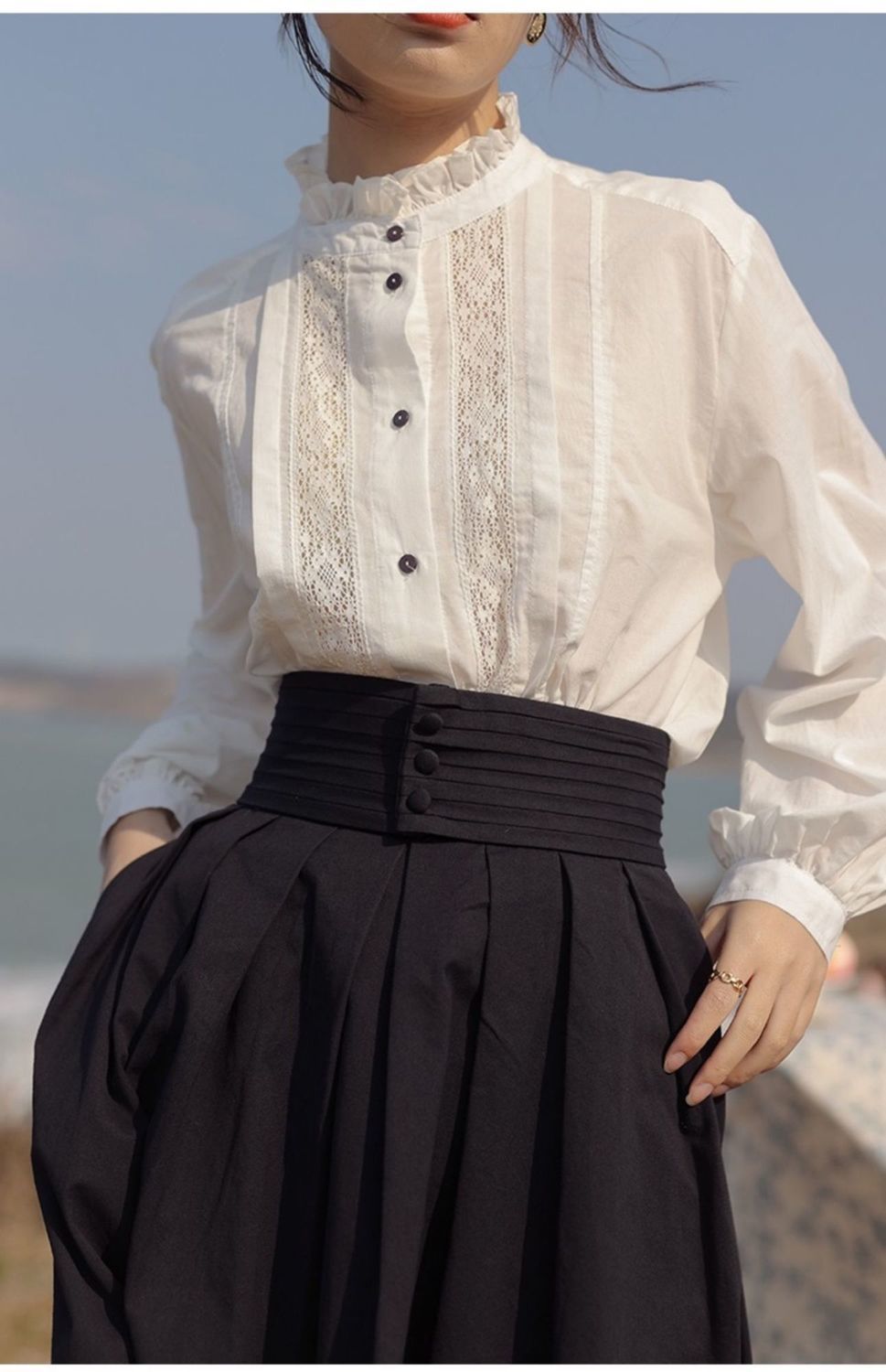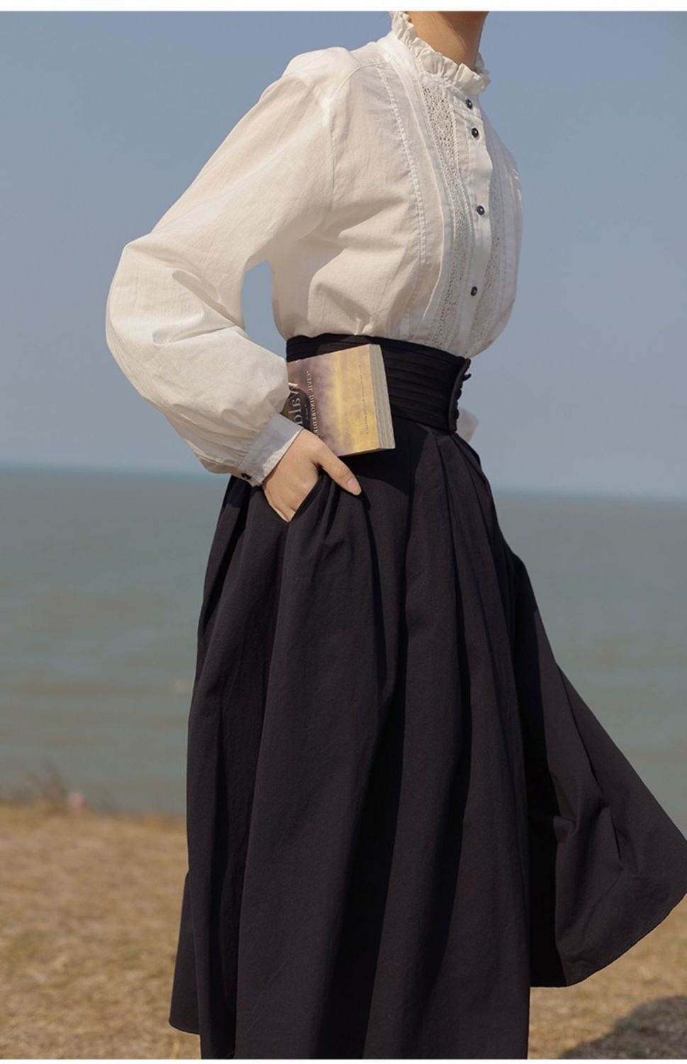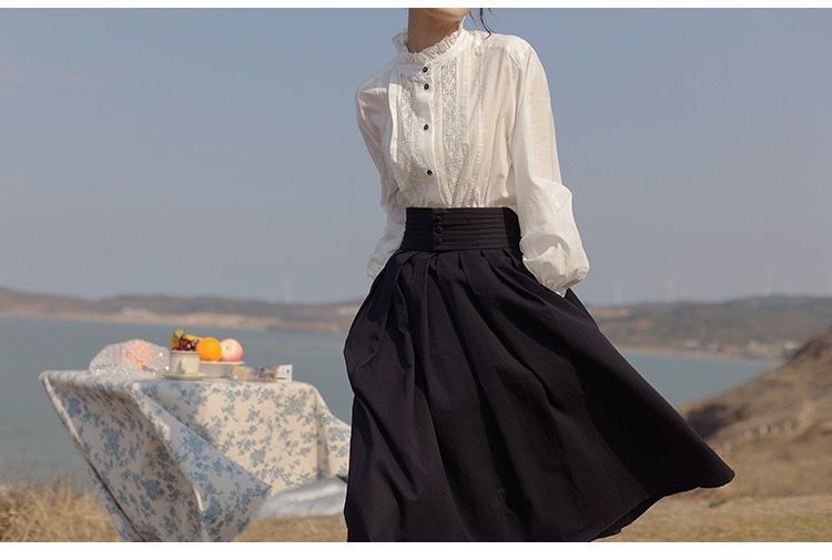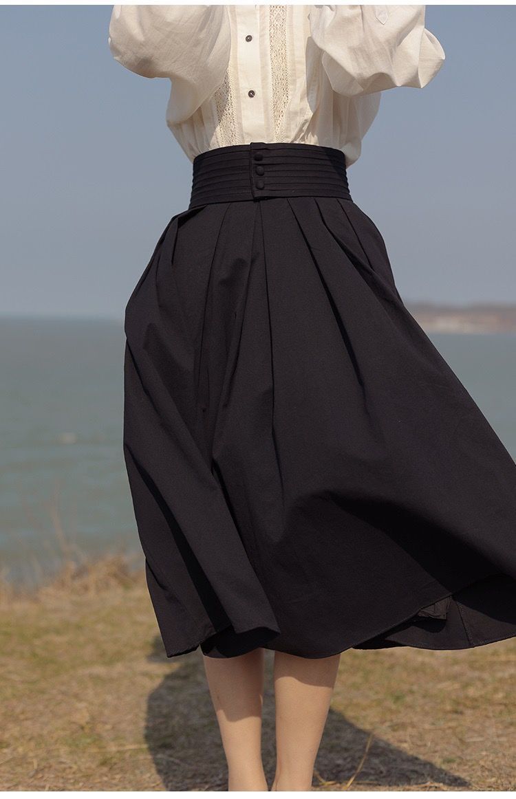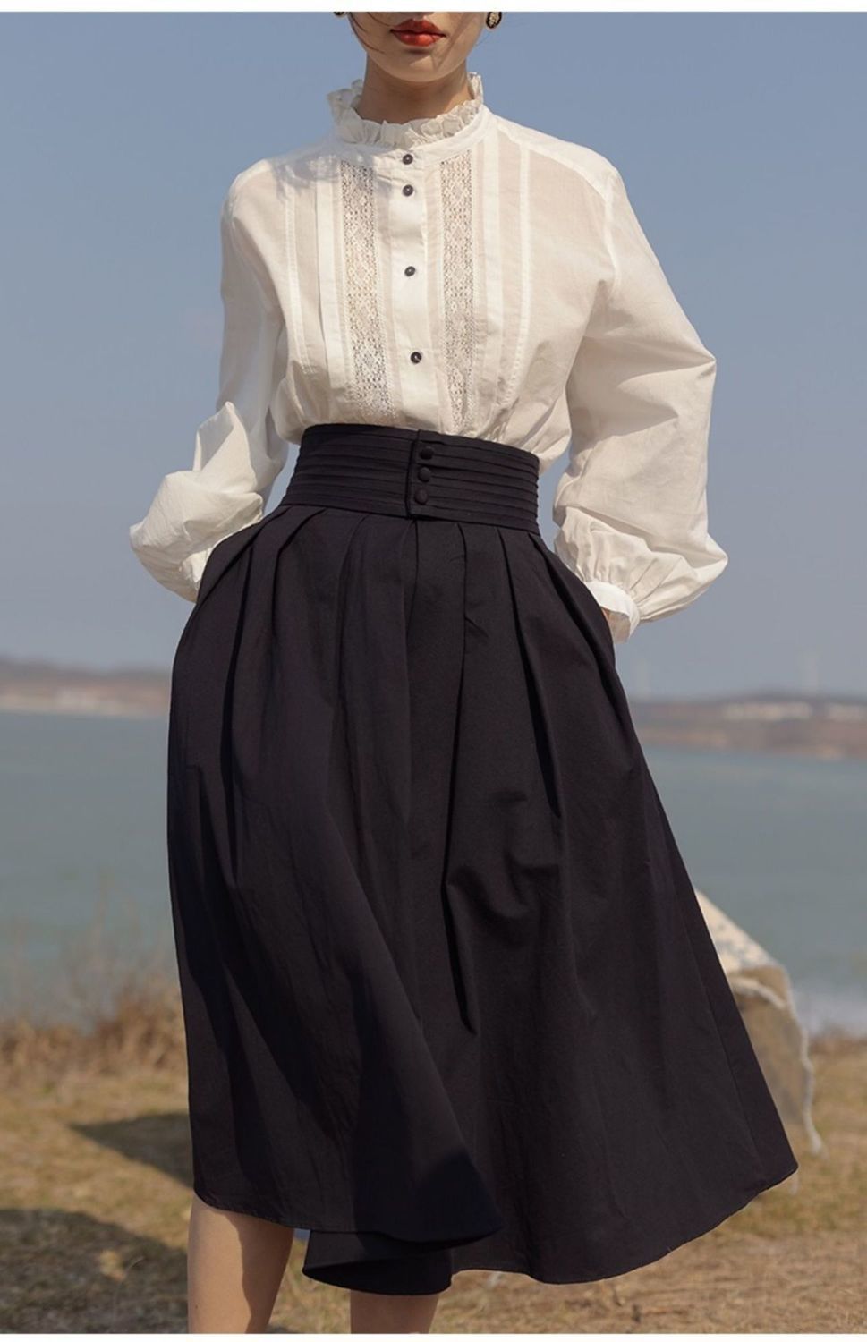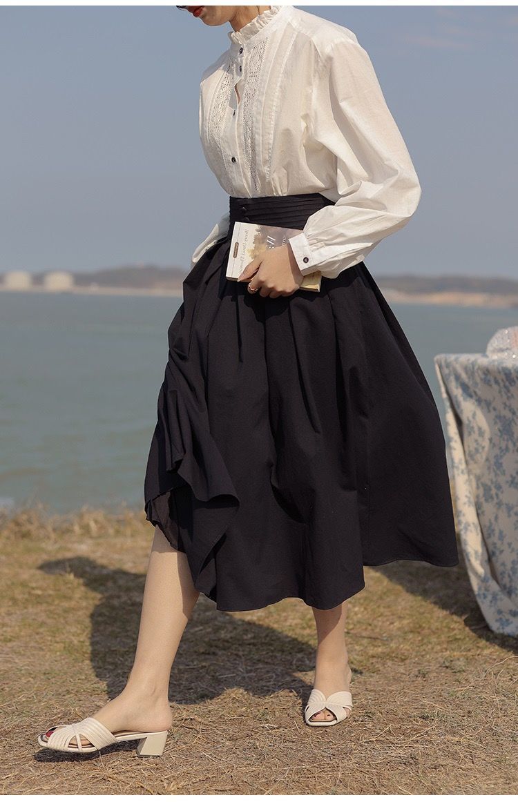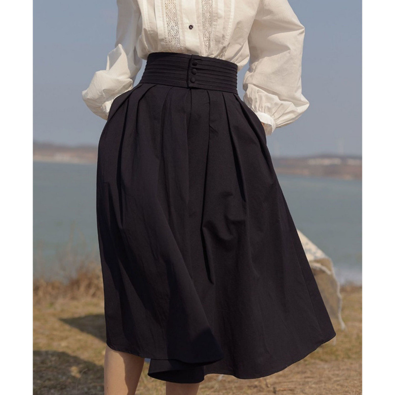 프랑스 흰색 높은 허리 A-라인 우산 치마 치마 2025 가을 디자인 틈새 헵번 스타일 중간 길이 치마스토어 가기