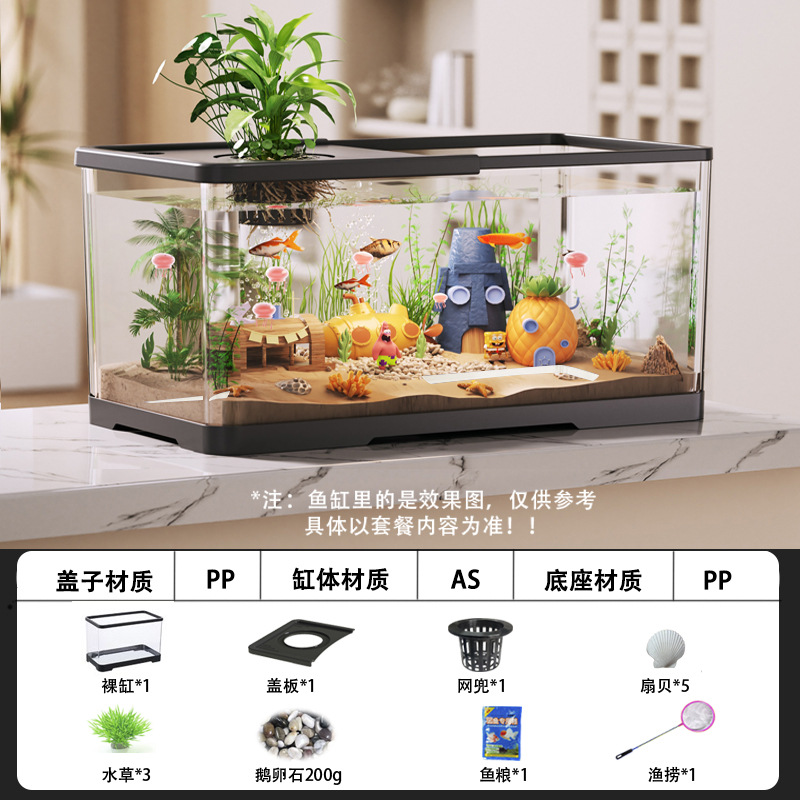 Kuo Ting 어항 가정용 생태 수족관 거실 뚜껑 투명한 금붕어 먹이 탱크 작은 풍경 데스크탑 탱크 새로운