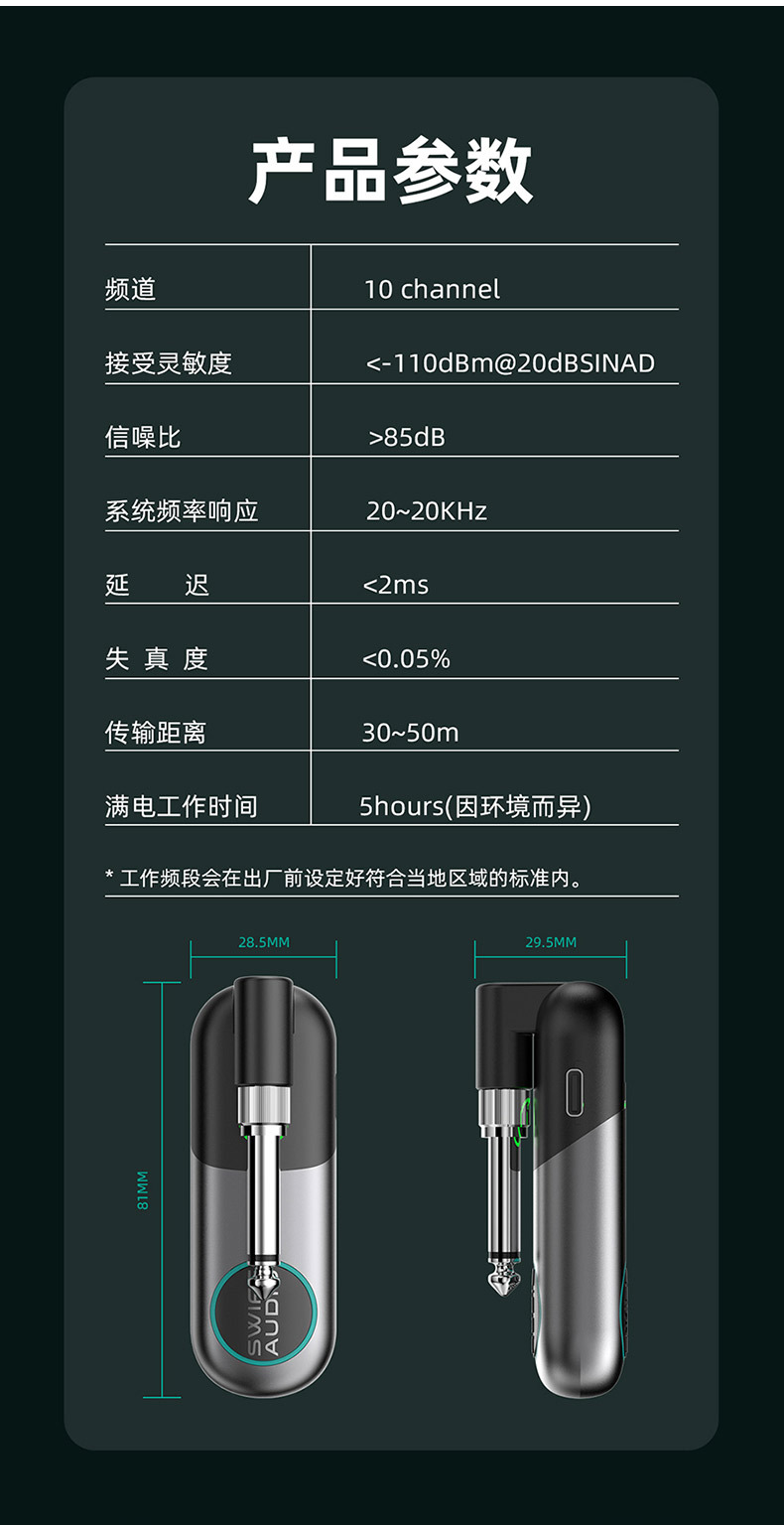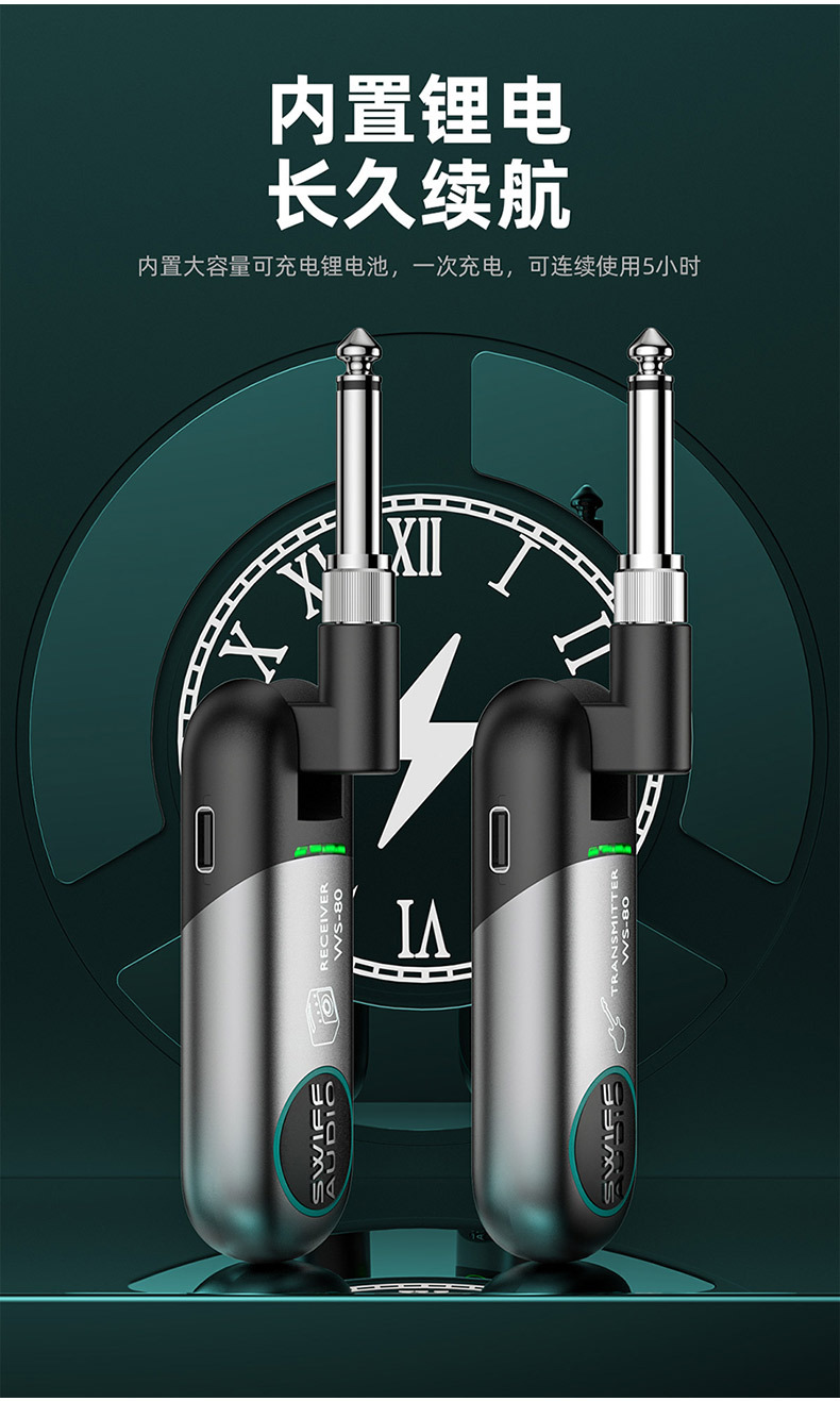SWIFF Ruifu WS-80 트랜시버 전기 기타 무선 송신기 수신기 베스 악기 오디오 케이블스토어 가기