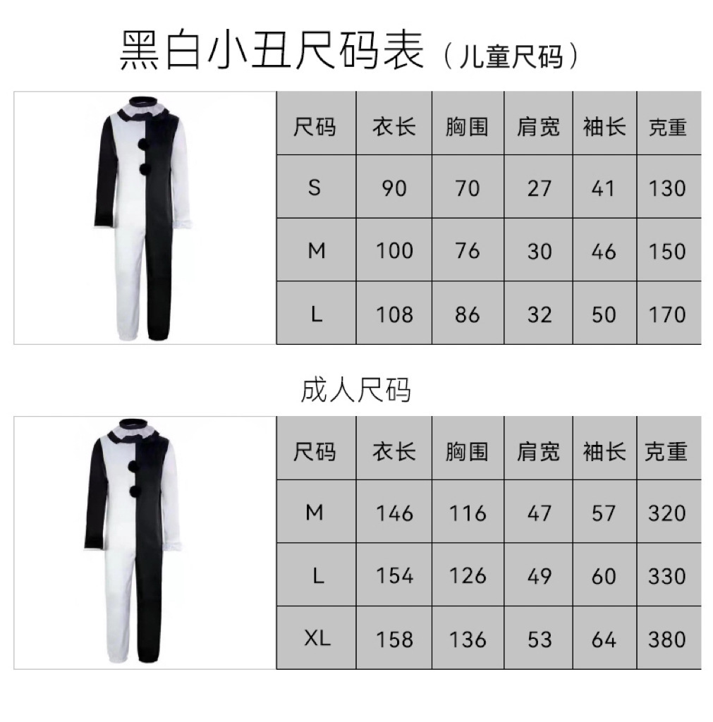 • 어린이용 흑백 광대 + 마스크(모자 포함)
