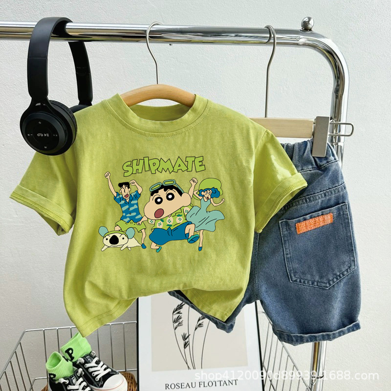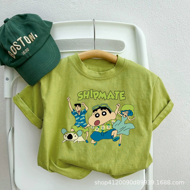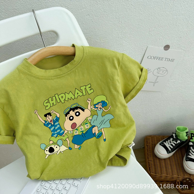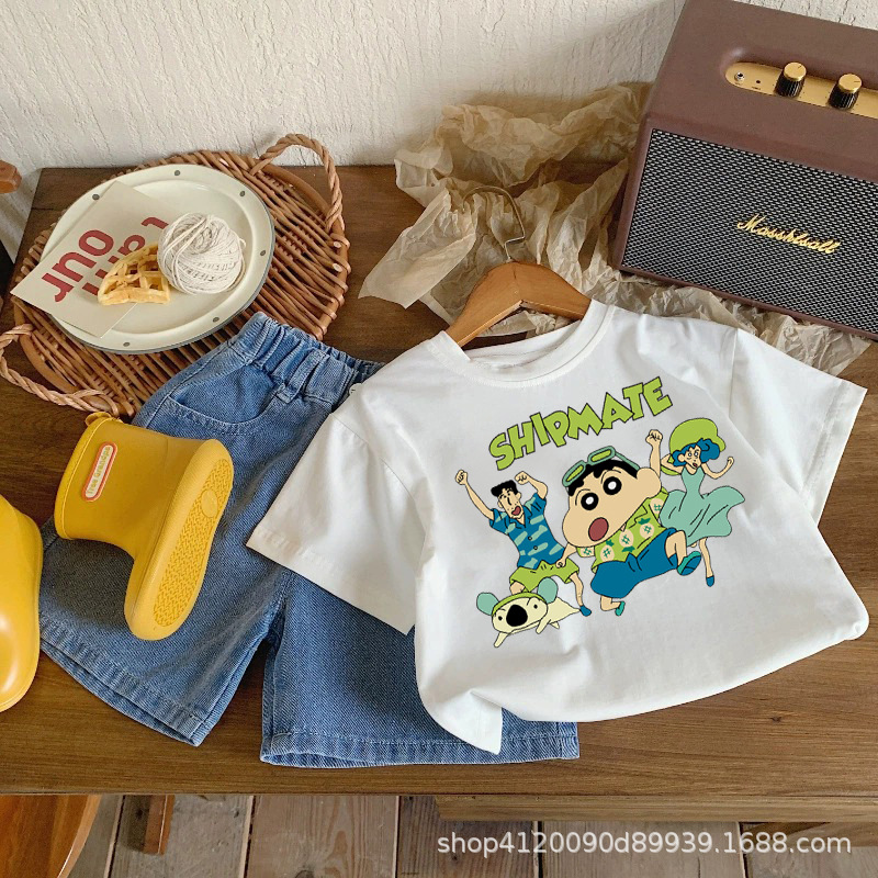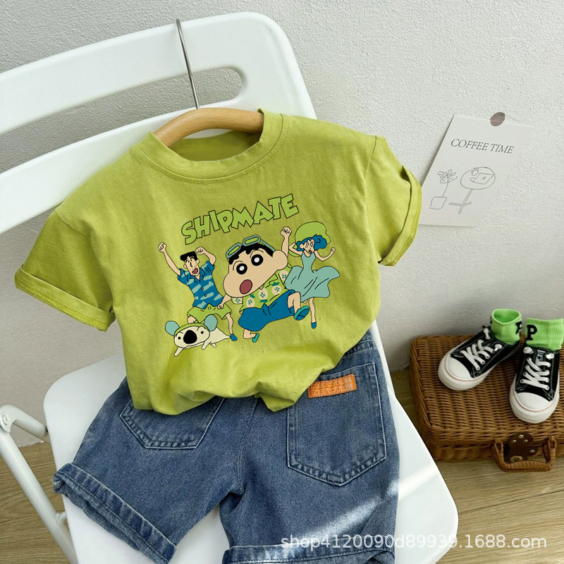 국경 면화 소년 만화 반팔 티셔츠 여름 아기 옷 어린이 여름 반소매 여름 중소형 아동복스토어 가기