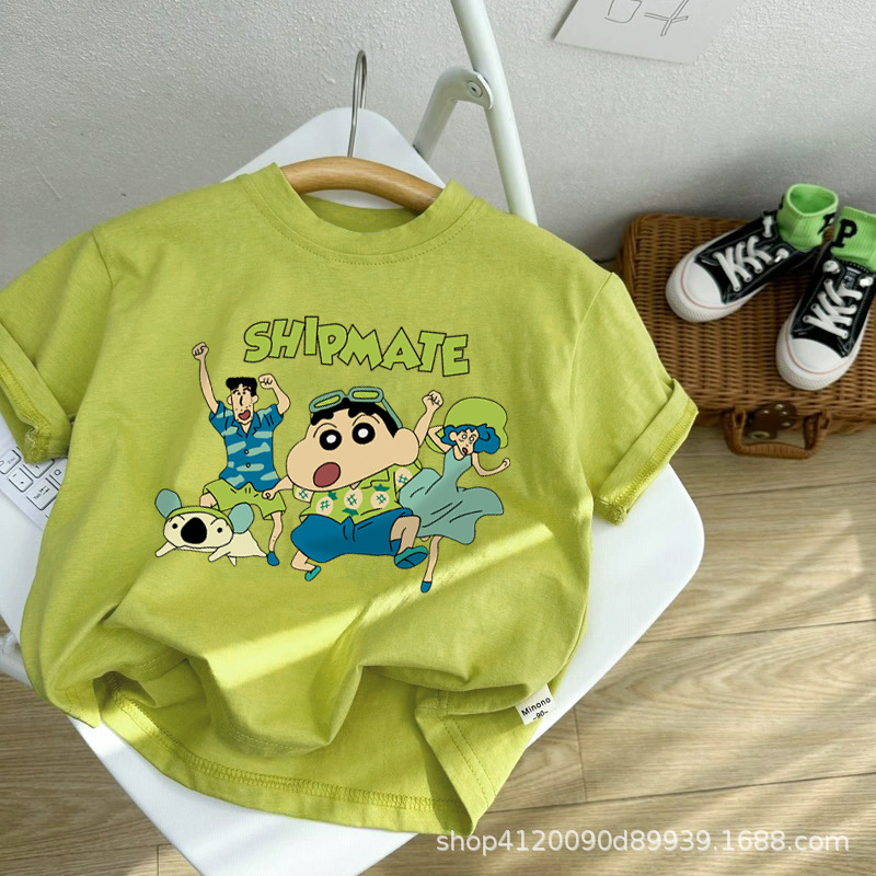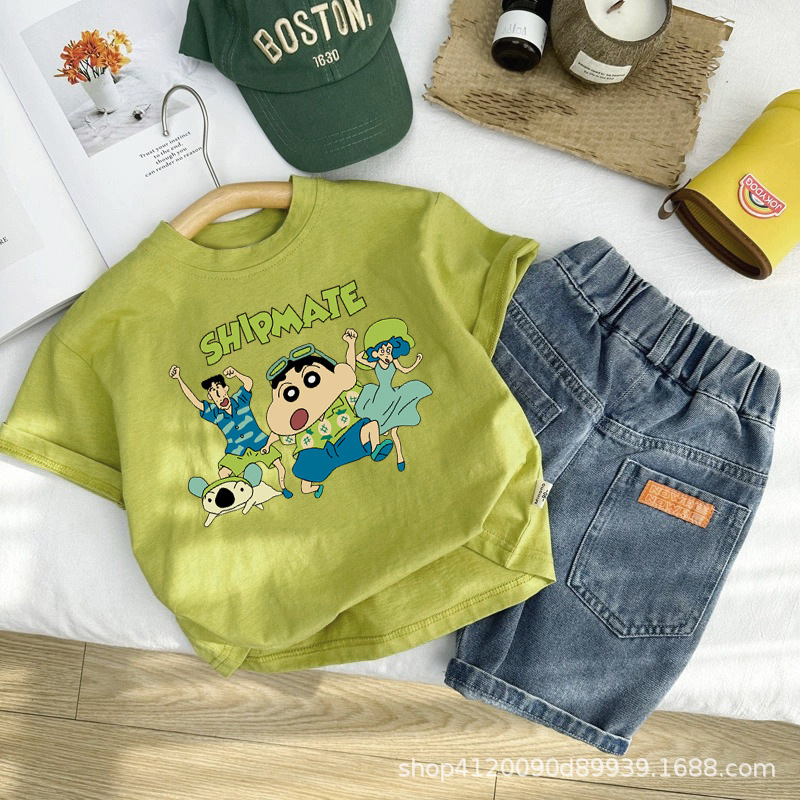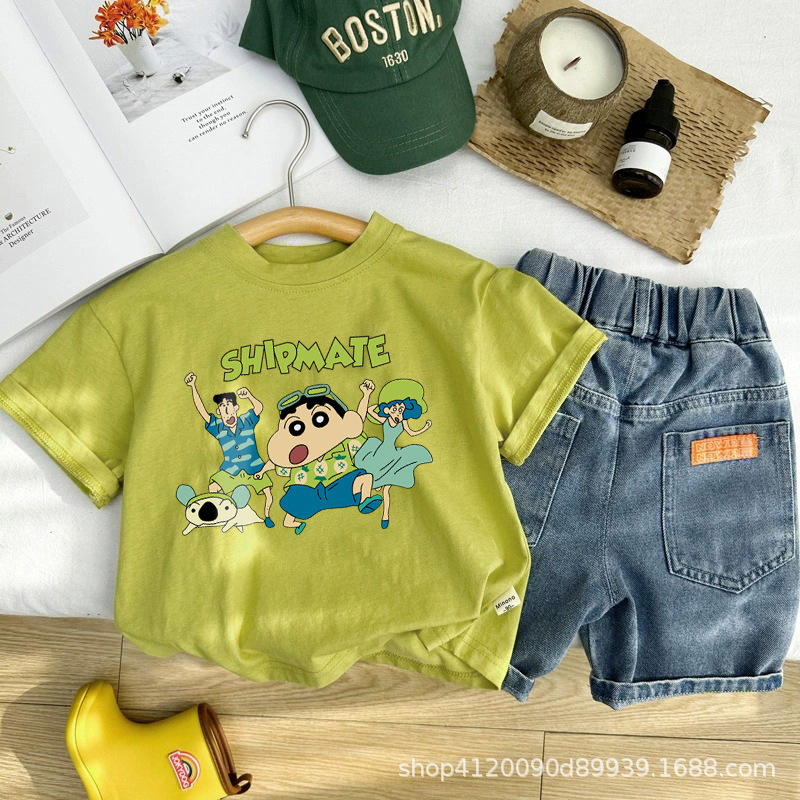국경 면화 소년 만화 반팔 티셔츠 여름 아기 옷 어린이 여름 반소매 여름 중소형 아동복