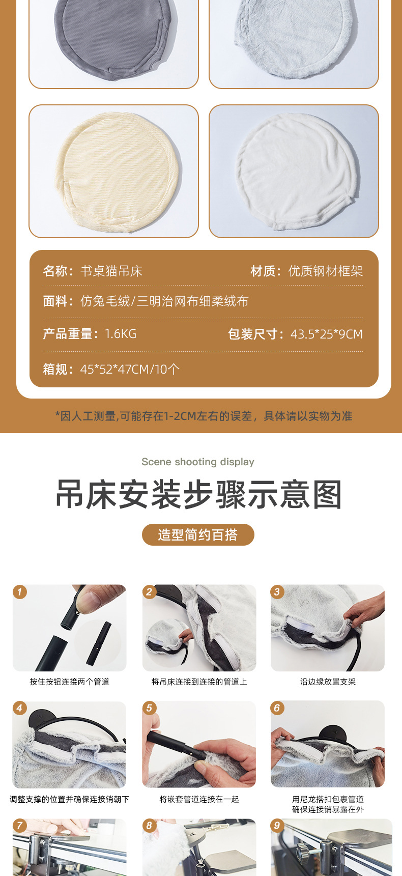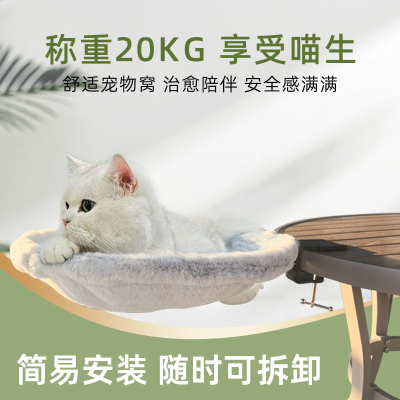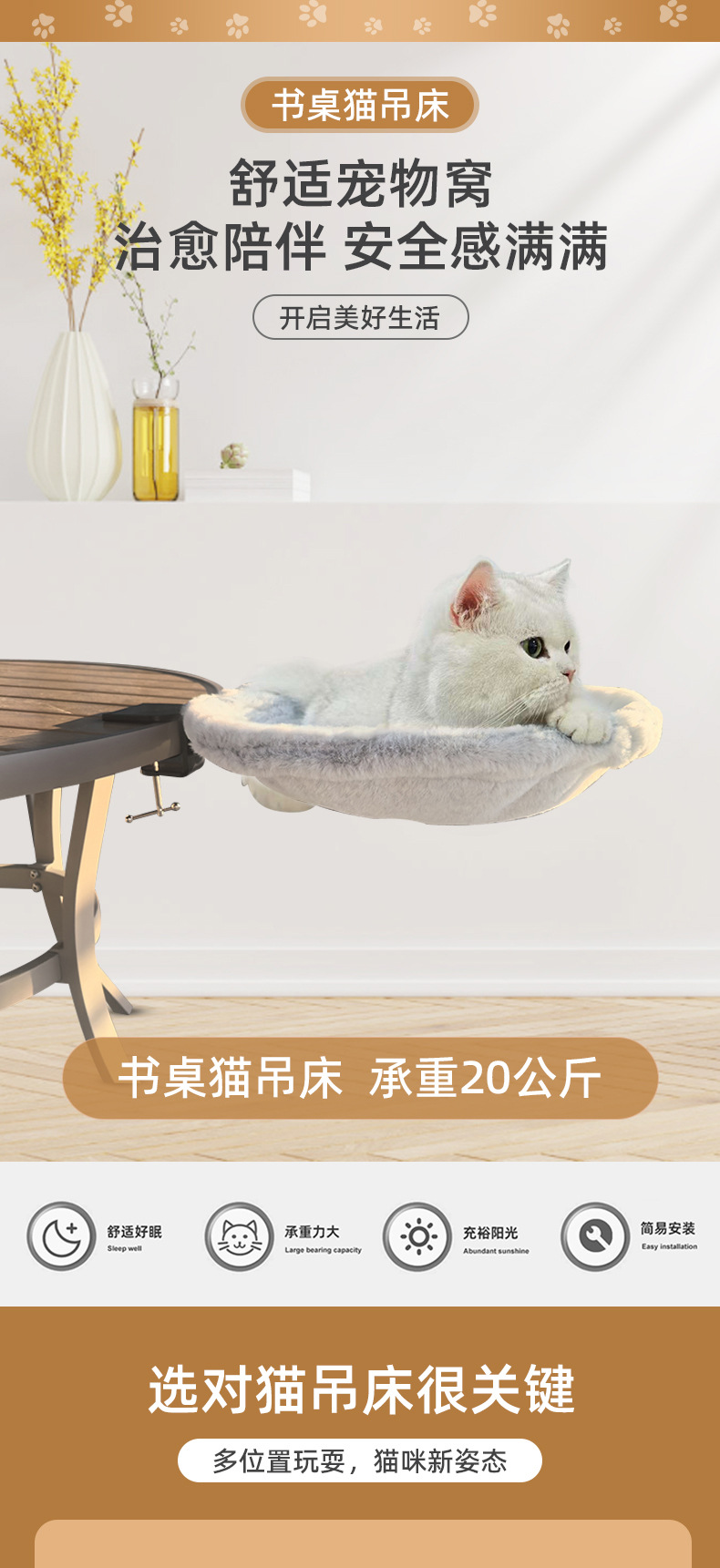 • 베이지색 통기성 메쉬 책상 고양이 해먹