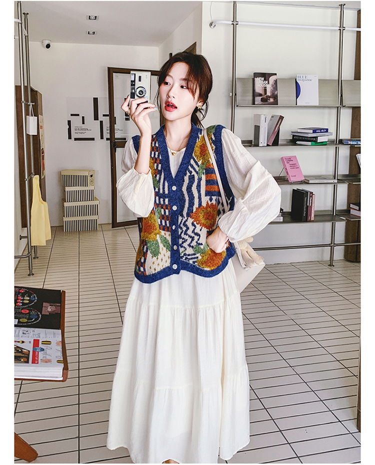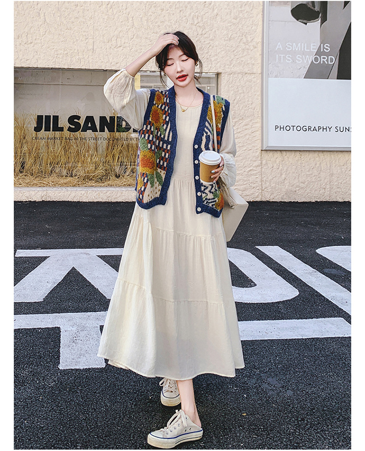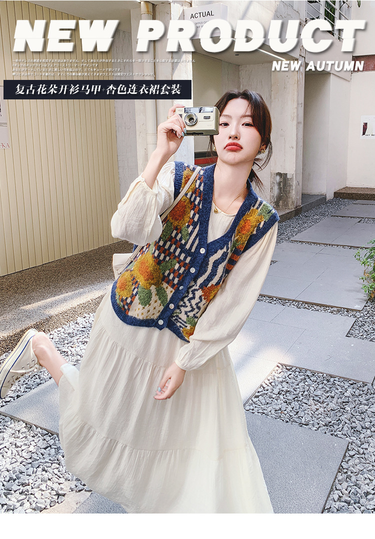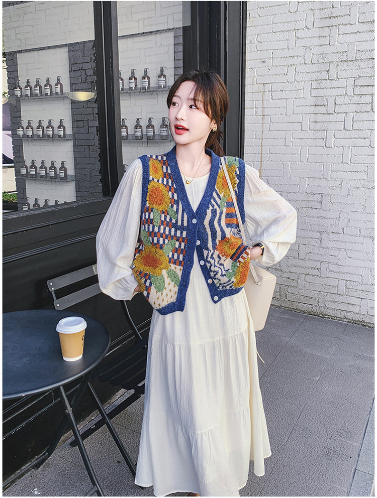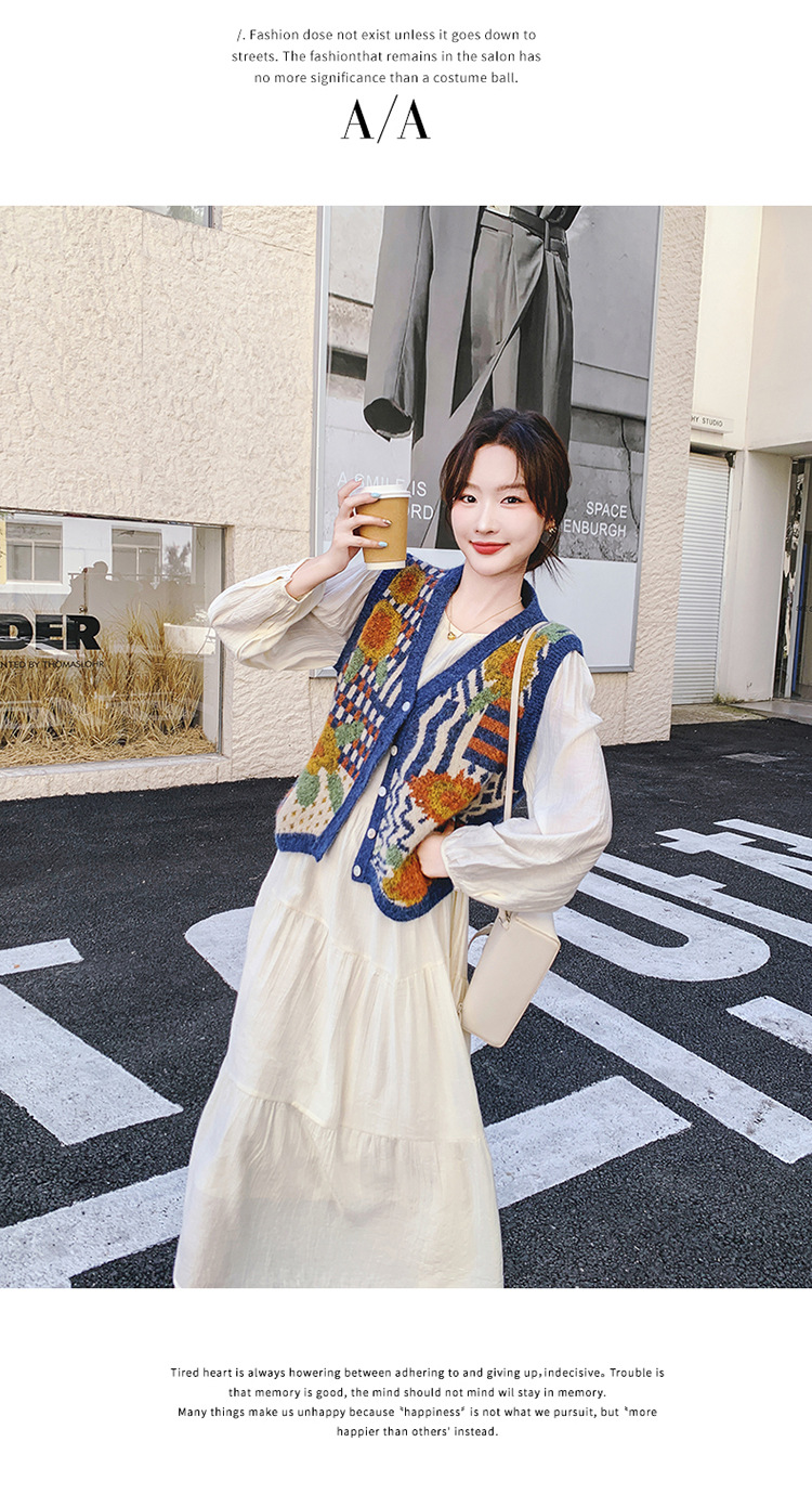 게으르고 편안한 니트 조끼 원피스 세트 여성 2025 년 봄 가을 새해 인기 긴 소매 원피스스토어 가기