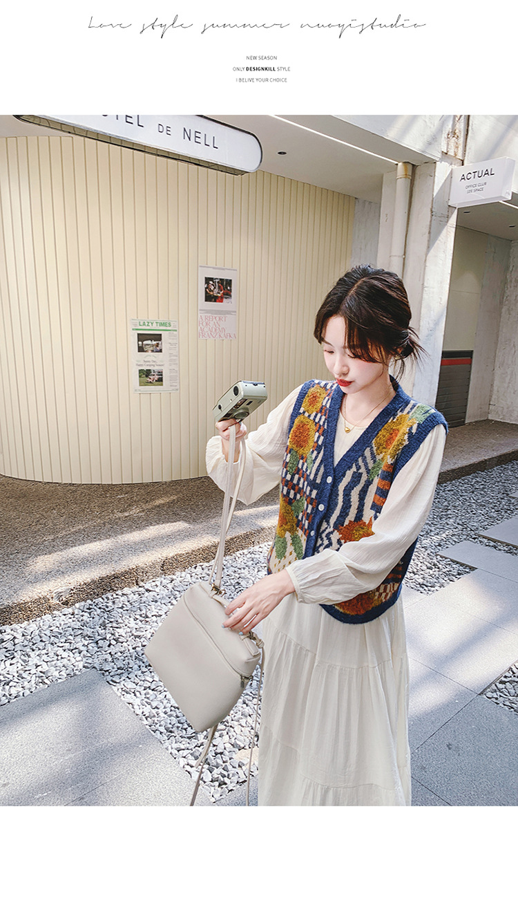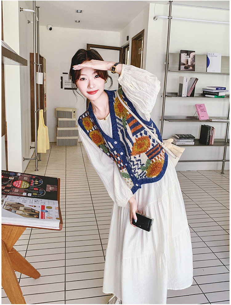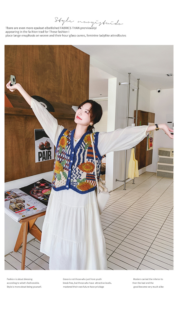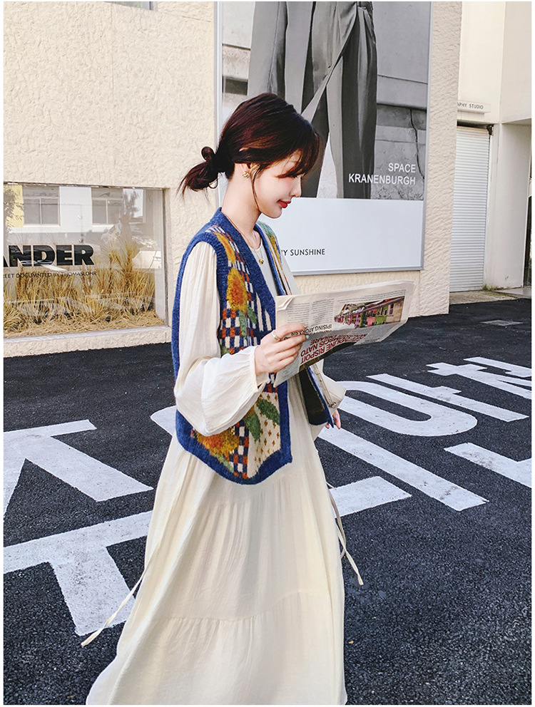 게으르고 편안한 니트 조끼 원피스 세트 여성 2025 년 봄 가을 새해 인기 긴 소매 원피스스토어 가기