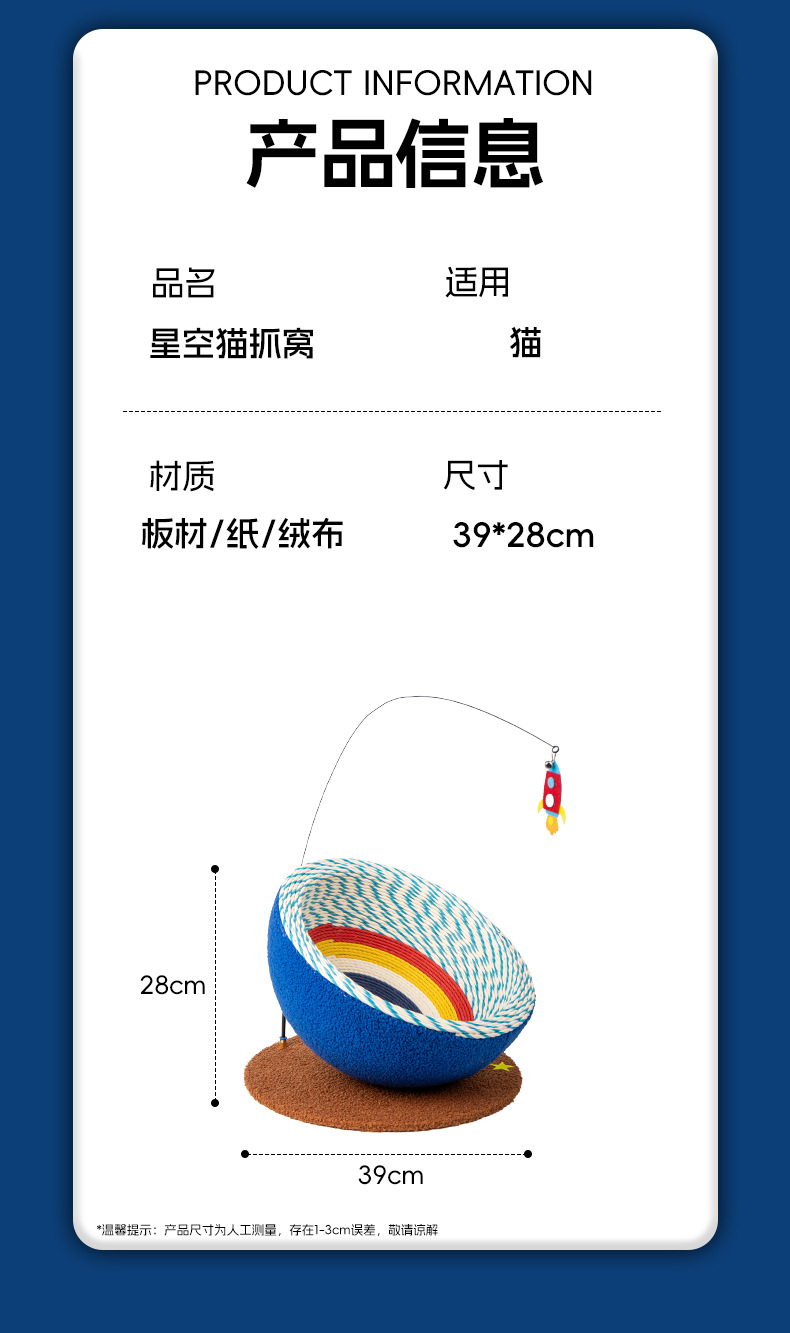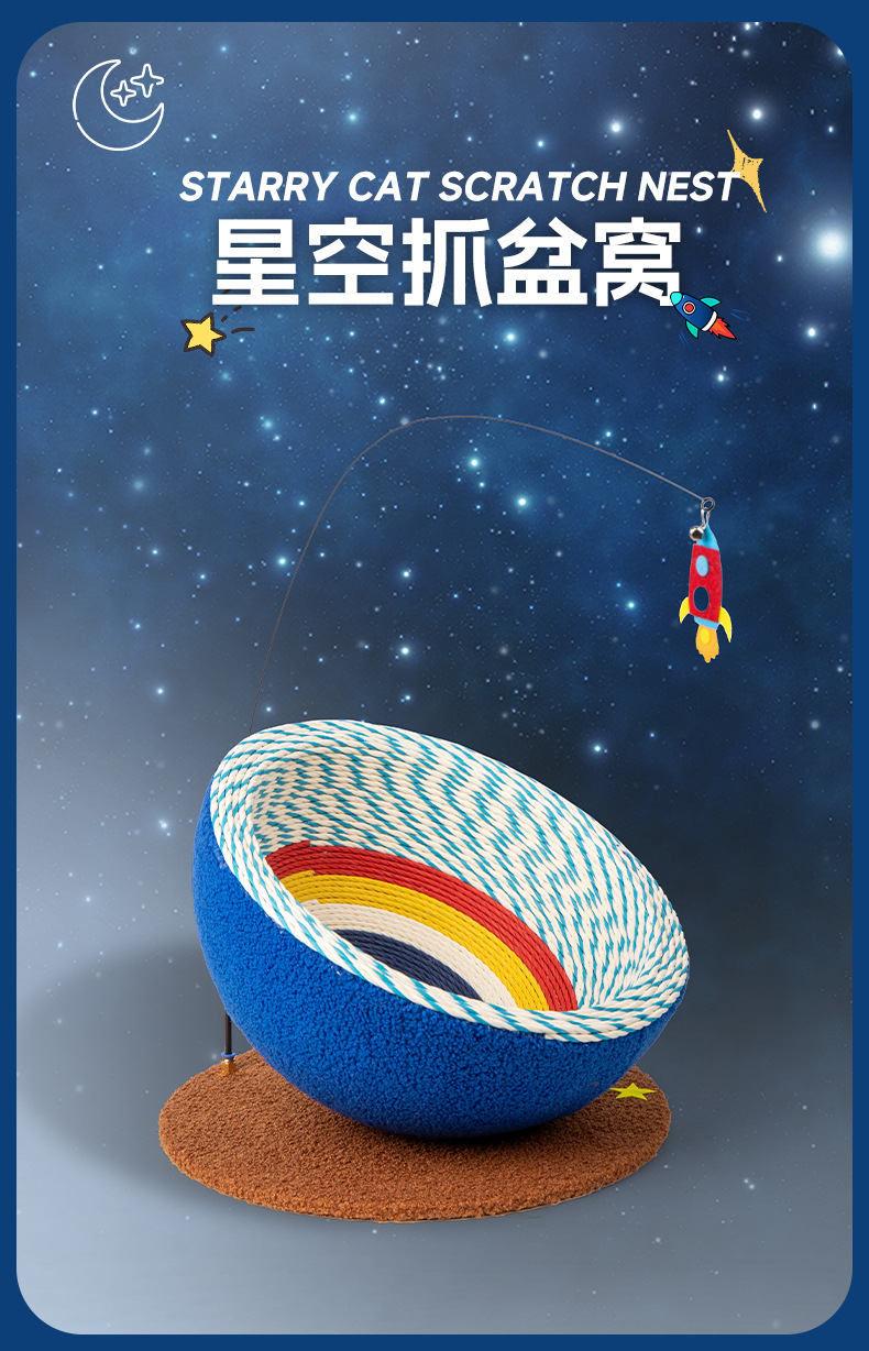 고양이 스크래치 보드 둥지, 다채로운 별이 빛나는 하늘색, 내마모성, 부스러기 없는 고양이 둥지, 일체형 대형 고양이 발톱 둥지, 긁힘 방지 및 내마모성 고양이 장난감스토어 가기
