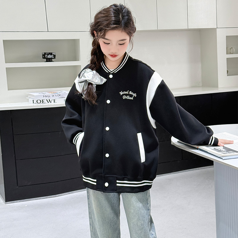 소녀 봄 코트 2025 새로운 스타일 어린이 봄과 가을 캐주얼 재킷 소녀 봄 느슨한 야구 옷스토어 가기
