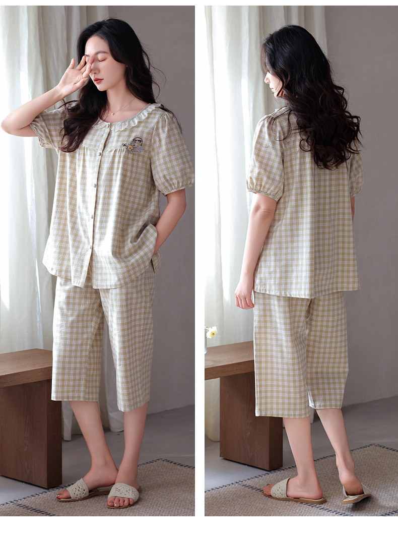 잠옷 여성의 여름 짠 순면 여성용 반팔 카프리 바지 여름 중년 플러스 사이즈 여성 어머니의 집 옷스토어 가기