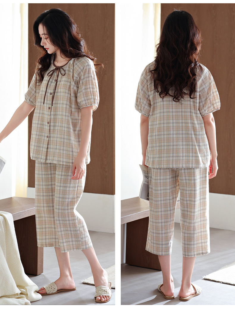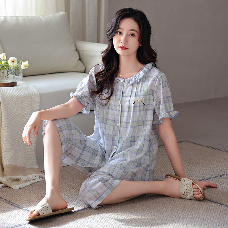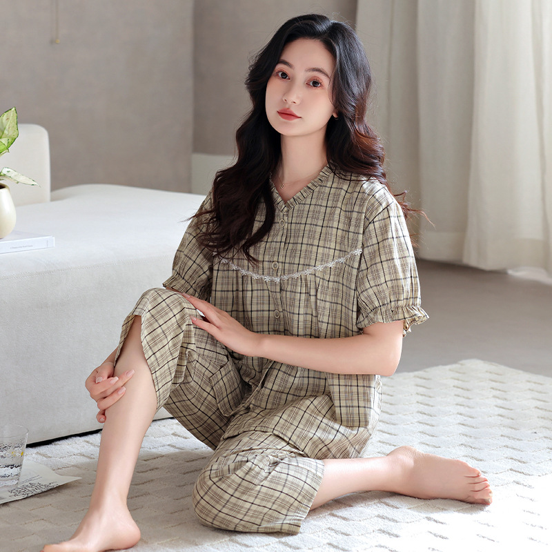 잠옷 여성의 여름 짠 순면 여성용 반팔 카프리 바지 여름 중년 플러스 사이즈 여성 어머니의 집 옷