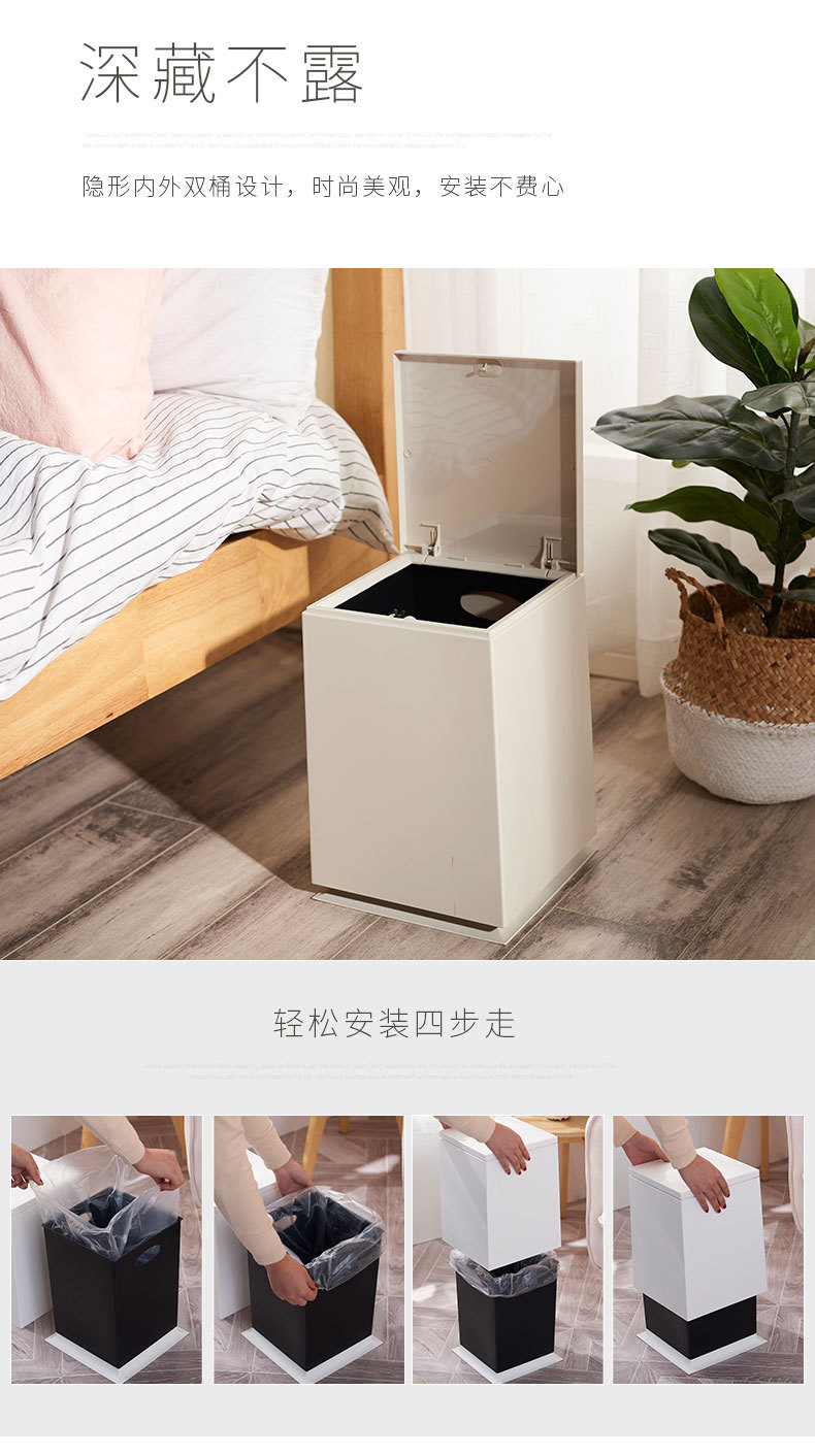 스퀘어 휴지통 가정용 거실 주방 푸시 형 더블 레이어 대용량 종이 바구니 뚜껑 간단한 가벼운 럭셔리 스타일