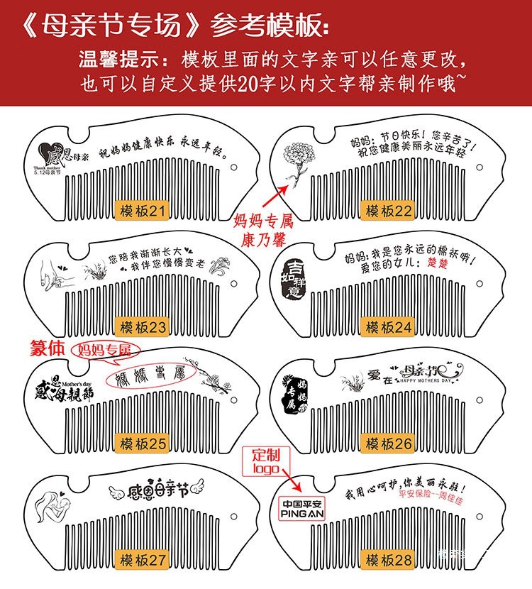 • 클래식 홍백단 달 빗 + 선물 상자 선물 가방 + 무료 각인