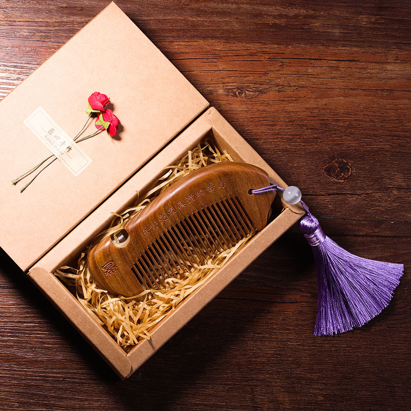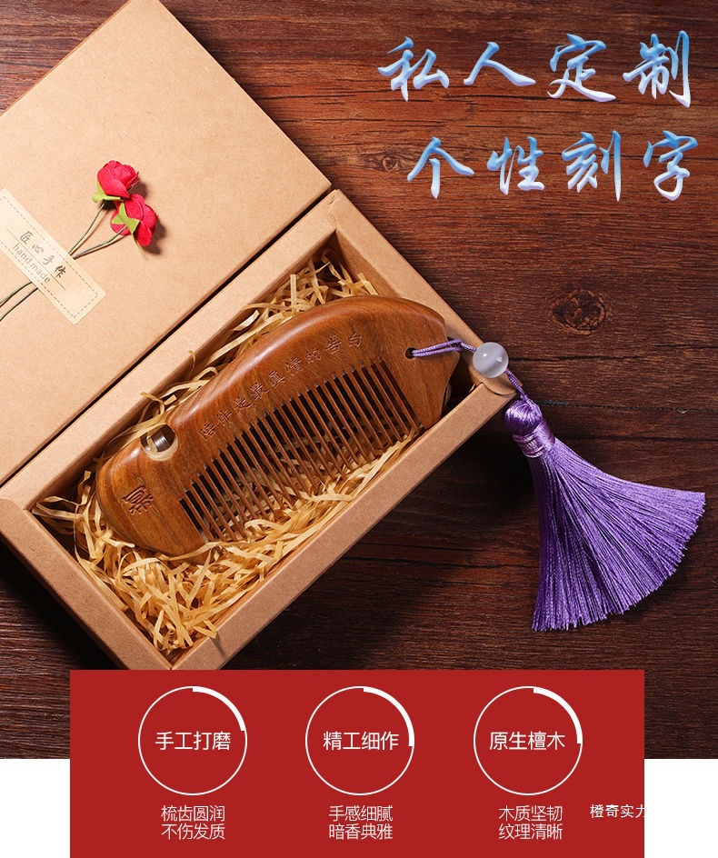 • 녹색 백단향 빗 + 보라색 술 + 선물 상자 선물 가방 + 무료 각인