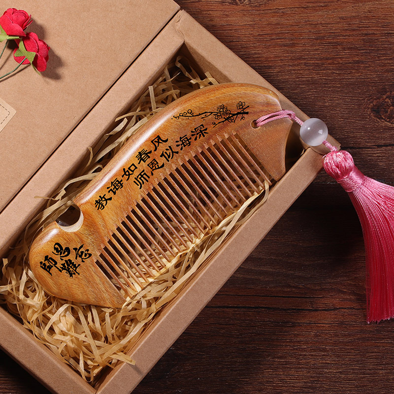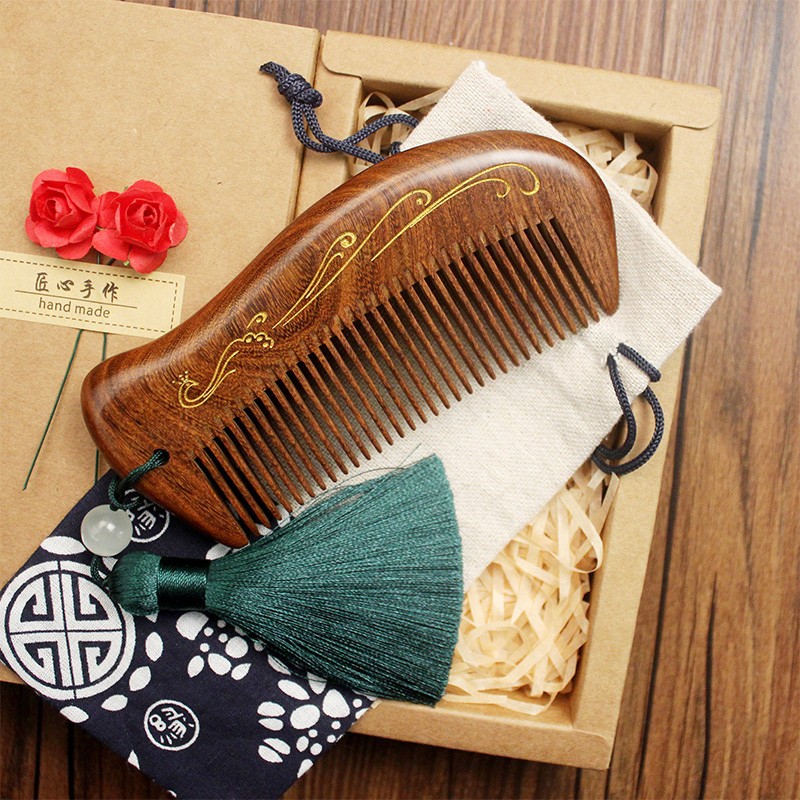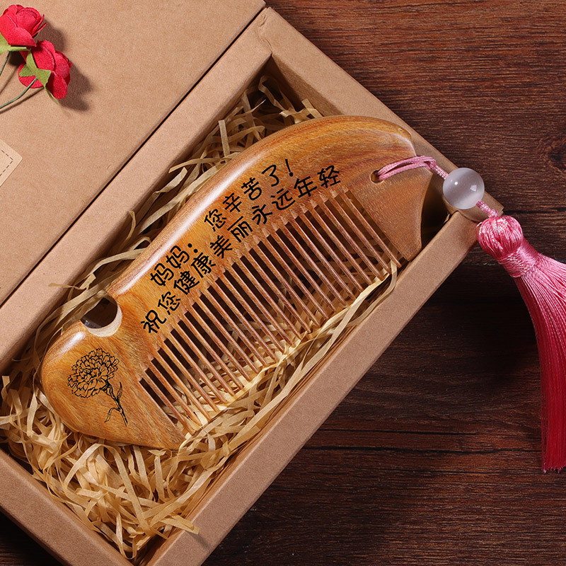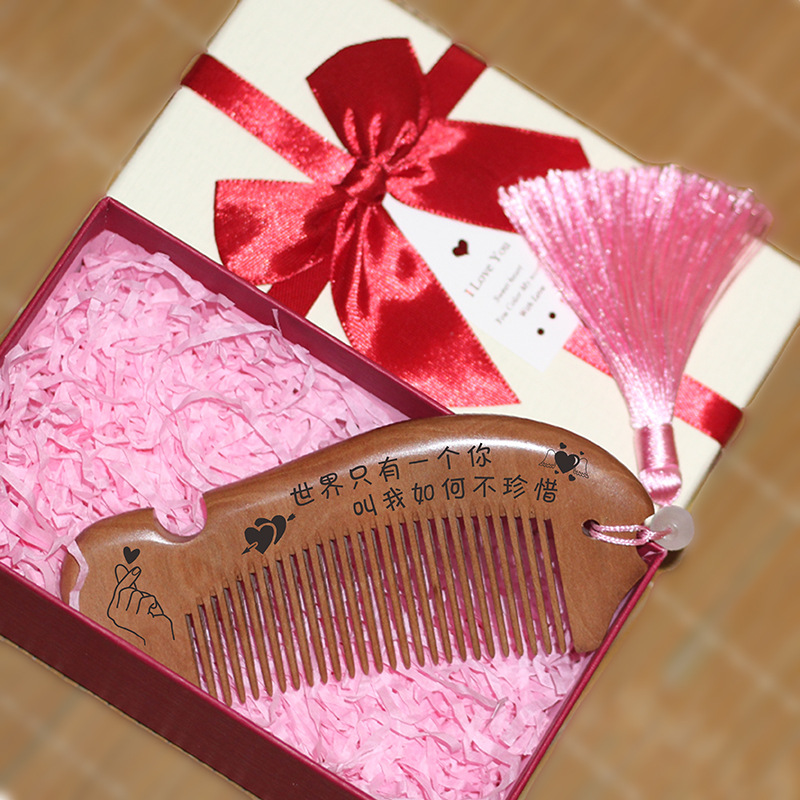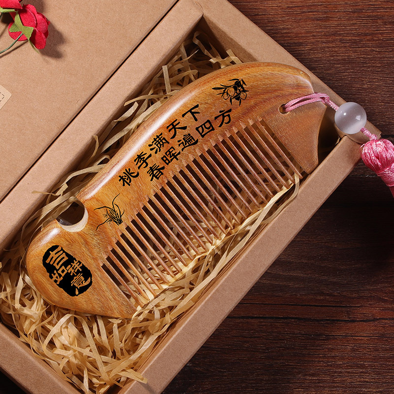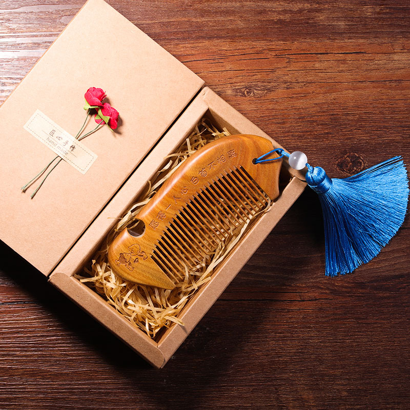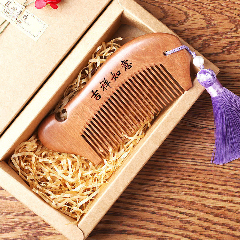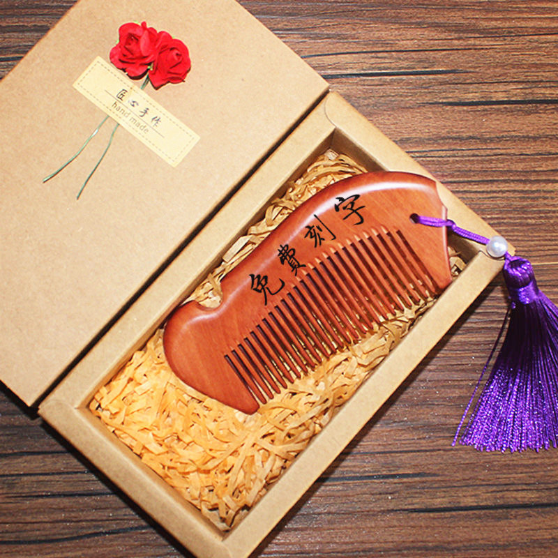 • 올드 스타일 복숭아 나무 빗 + 술 + 선물 상자 선물 가방 + 무료 각인