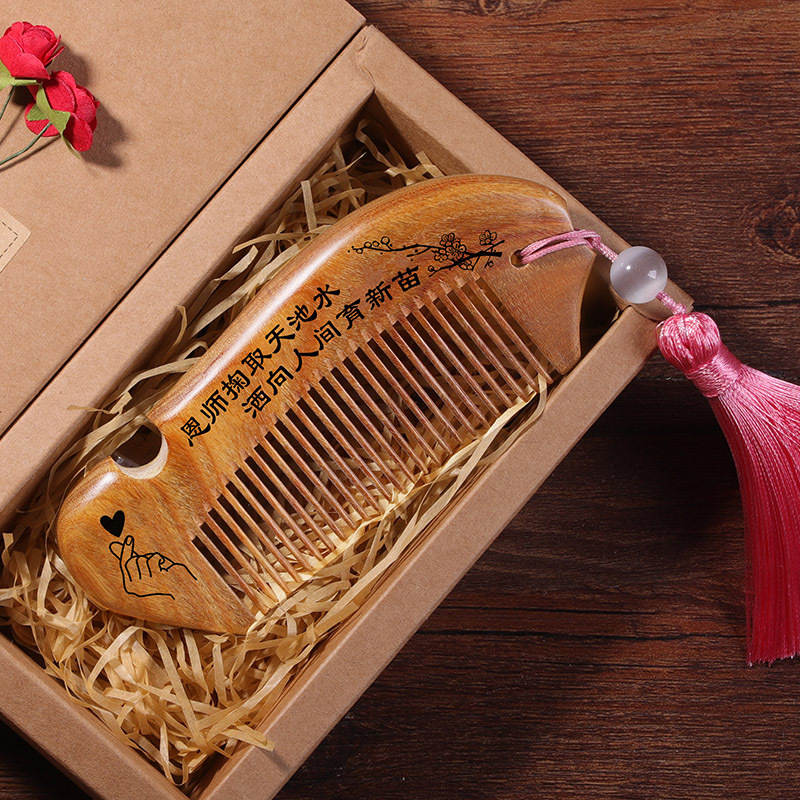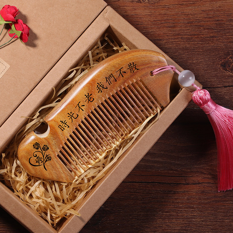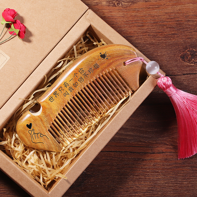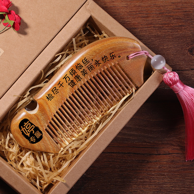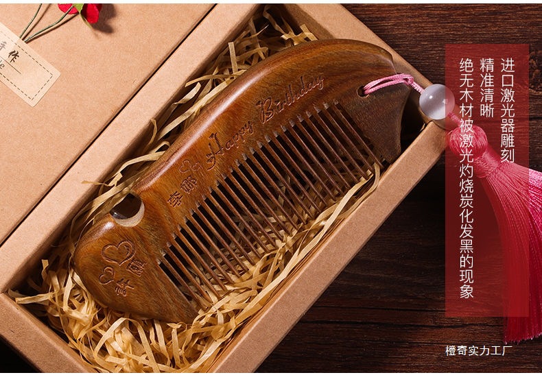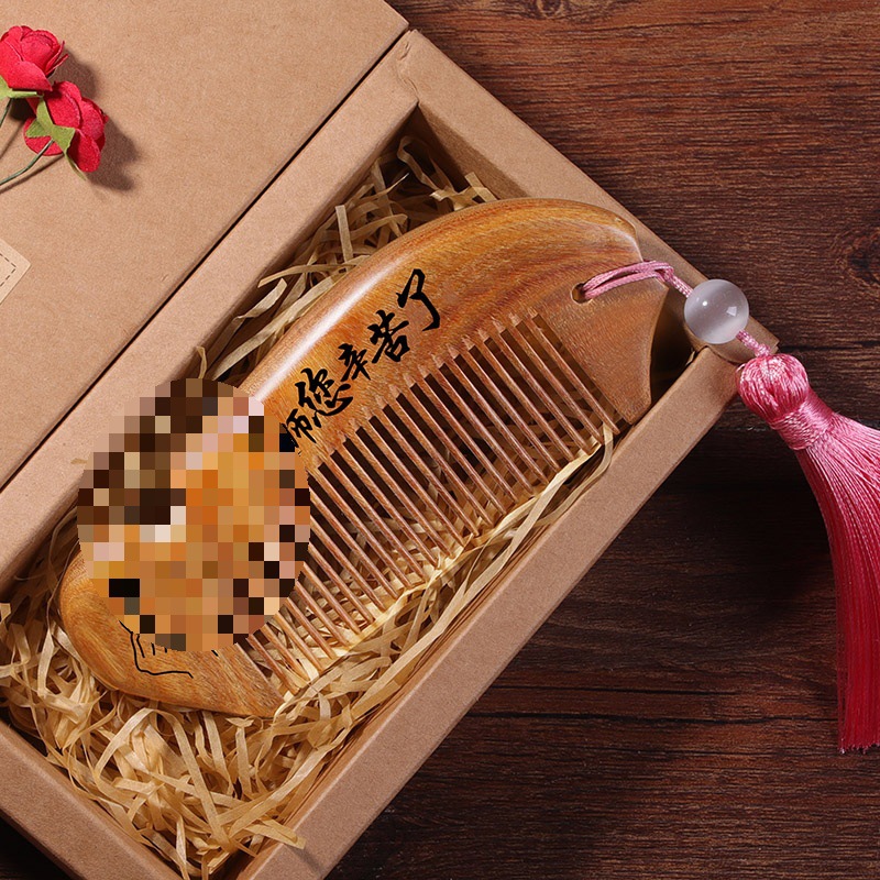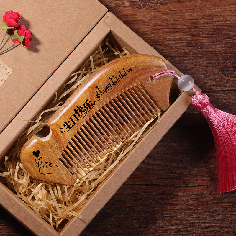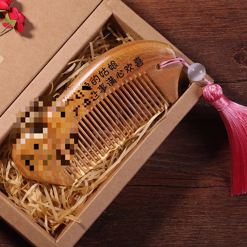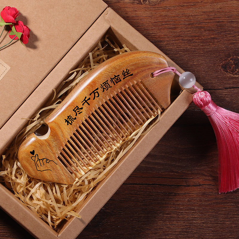 • 녹색 백단향 빗 + 핑크 술 + 선물 상자 선물 가방 + 무료 각인
