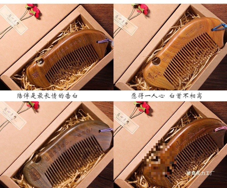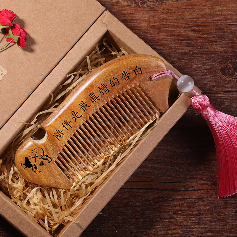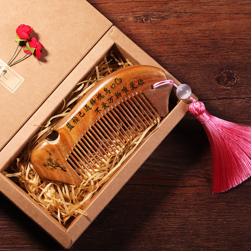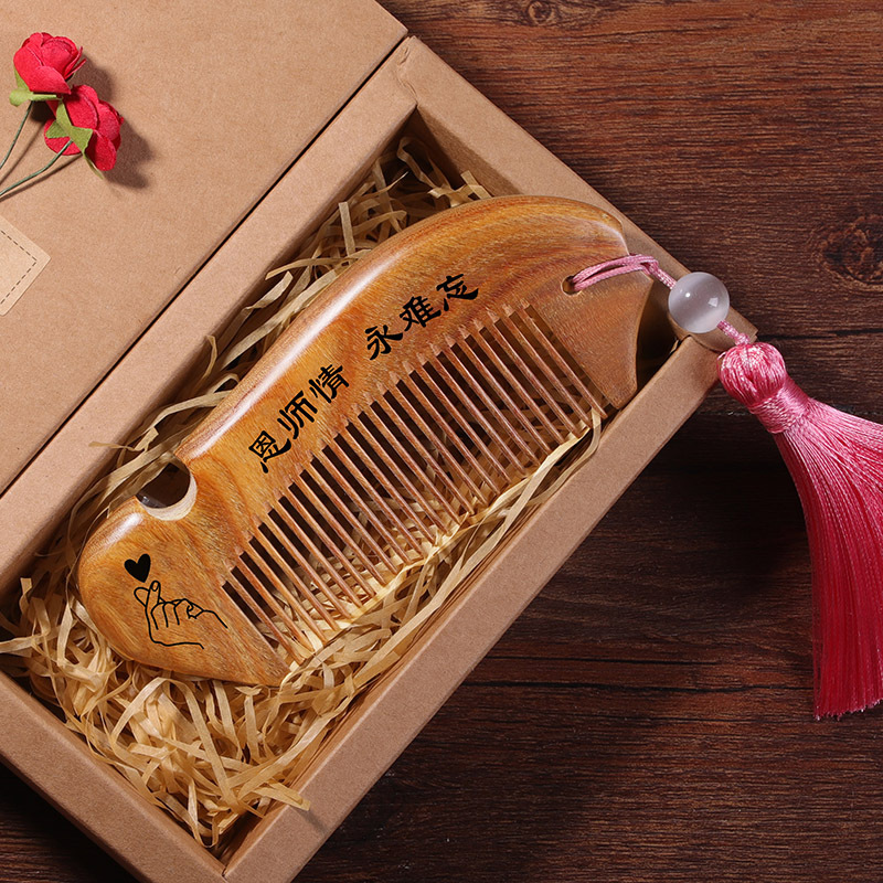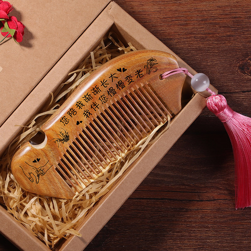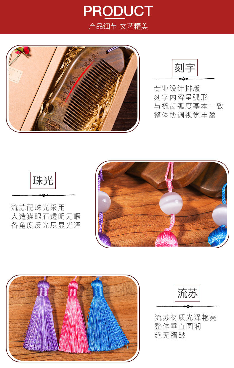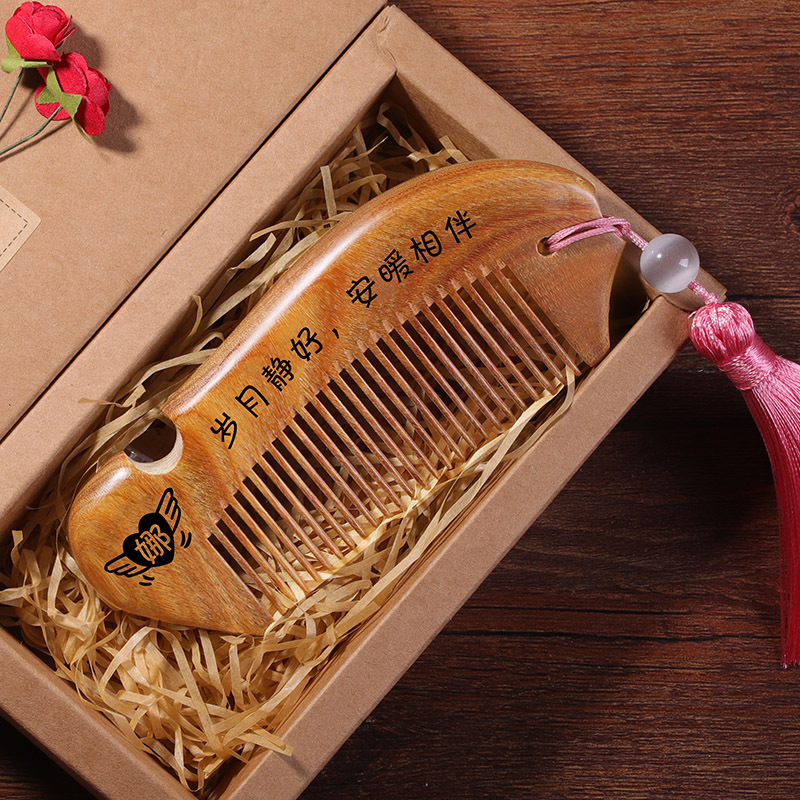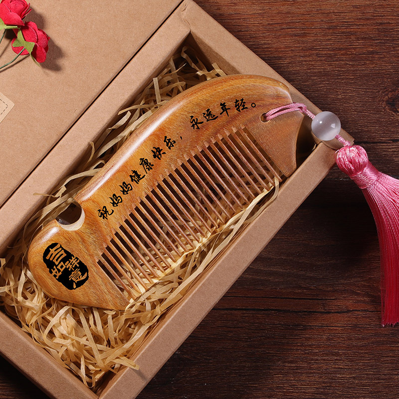 • 녹색 백단향 빗 + 핑크 술 + 선물 상자 선물 가방 + 무료 각인