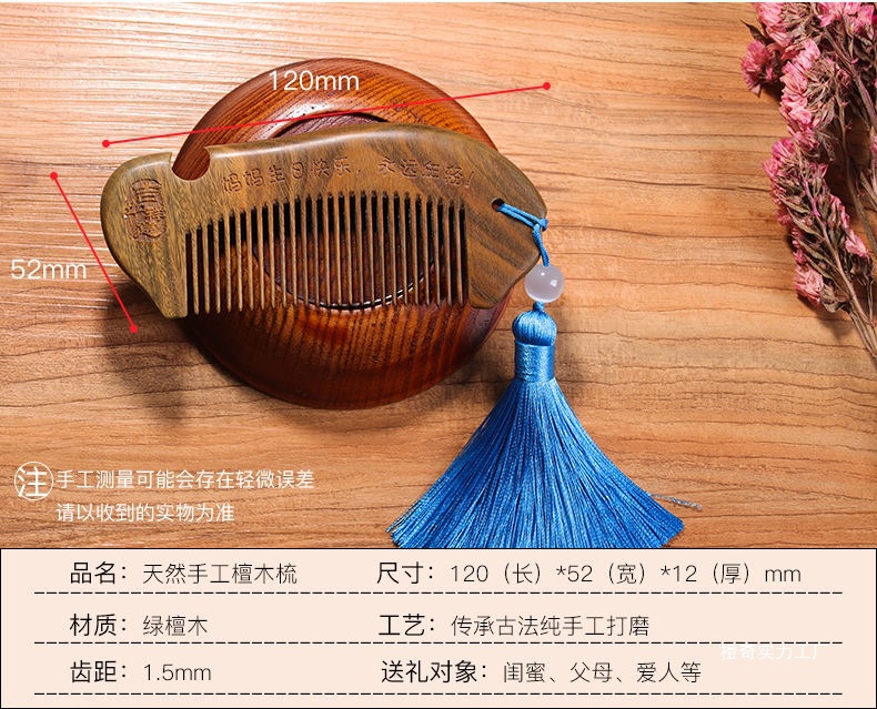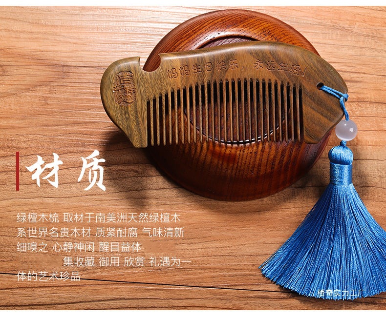 • 녹색 백단향 빗 + 파란색 술 + 선물 상자 선물 가방 + 무료 각인