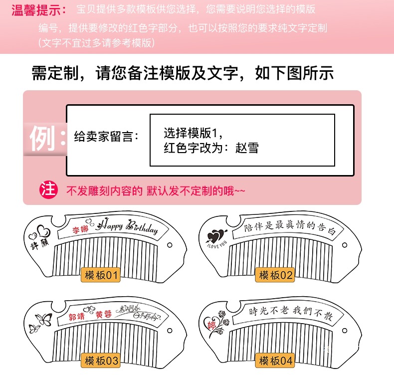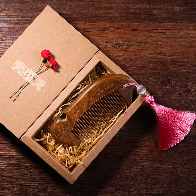• 백단향 빗 + 핑크 술 + 선물 상자 + 선물 가방 + 무료 각인