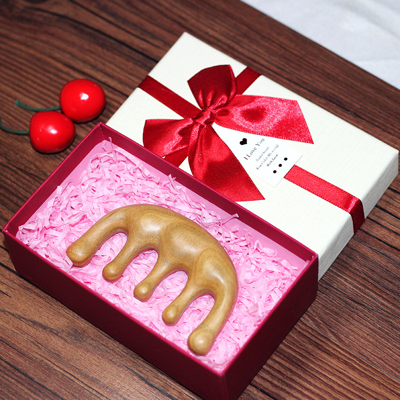 • 녹색 백단 건강 마사지 빗 + 버전 선물 상자 + 무료 조각 5 단어