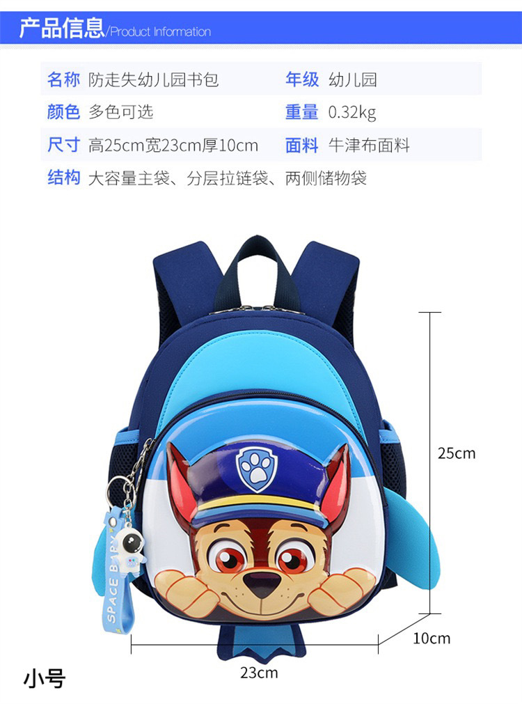 분실 방지 학교 가방 1-2-3 세 유치원 어린이 배낭 만화 강아지 소년과 소녀 유치원 학교 가방