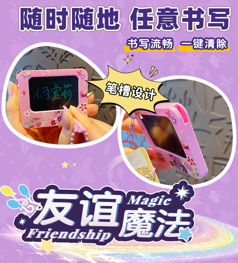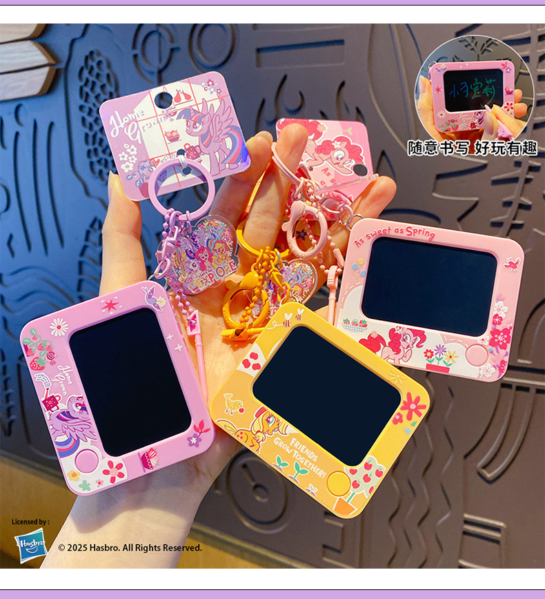 정품 마이 리틀 포니 낙서판 키체인 지울 수 있는 필기판 교육용 장난감 가방 장식 말의 해 선물