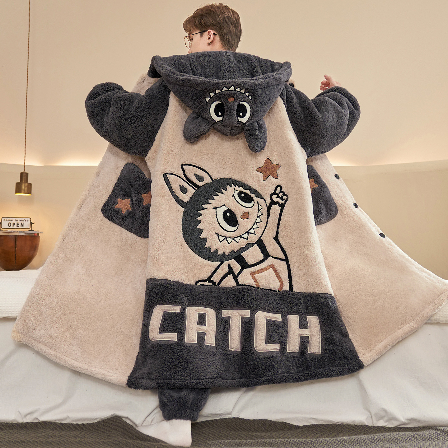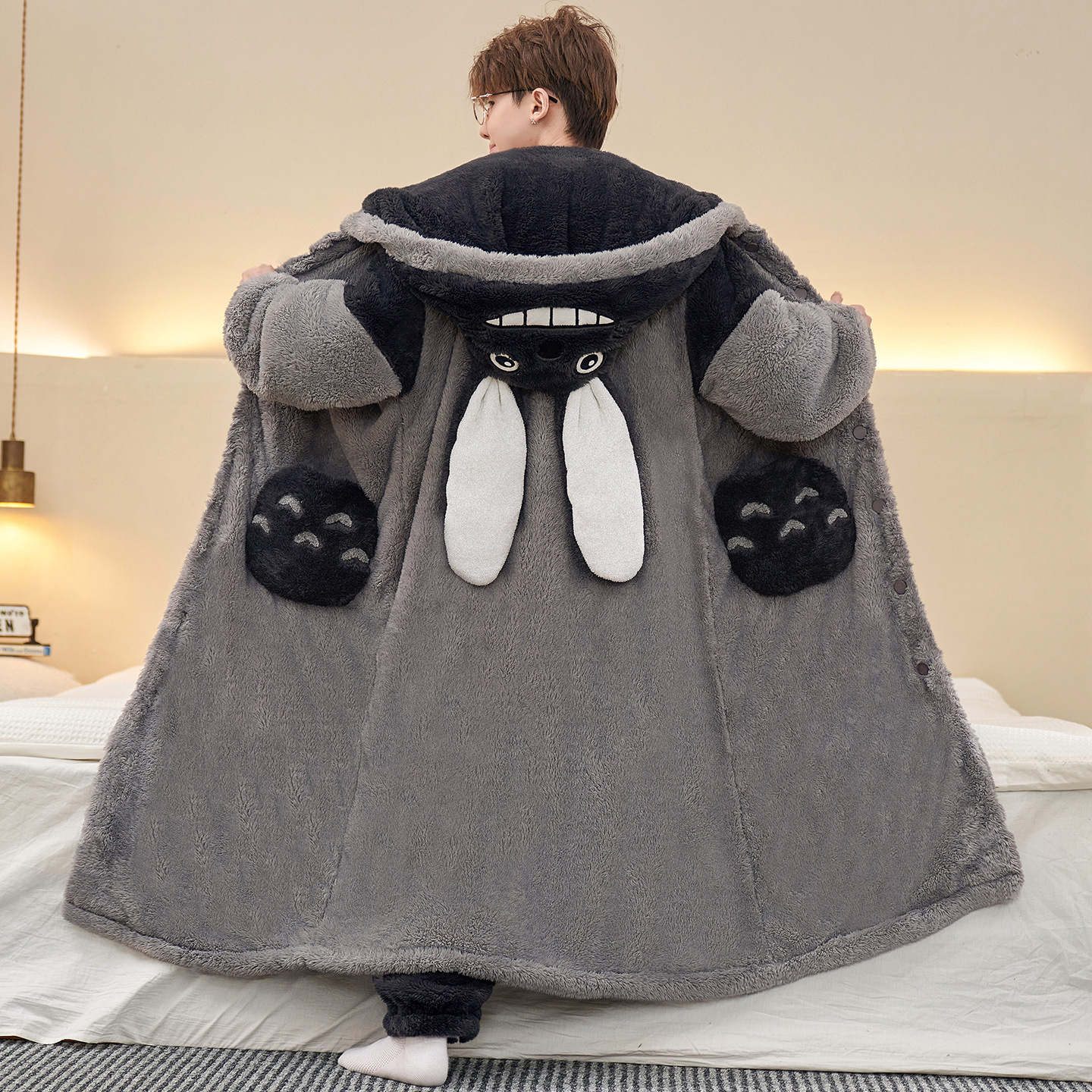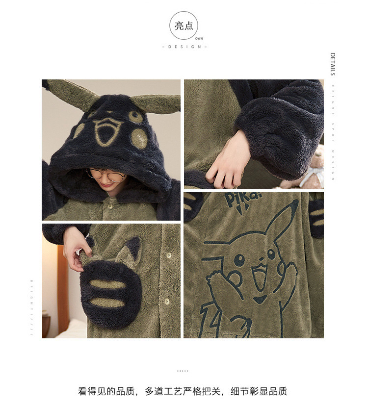 산호 양털 후드 나이트가운 남자의 가을과 겨울 청소년 플러스 사이즈 파자마 피카추 홈 의류 세트스토어 가기