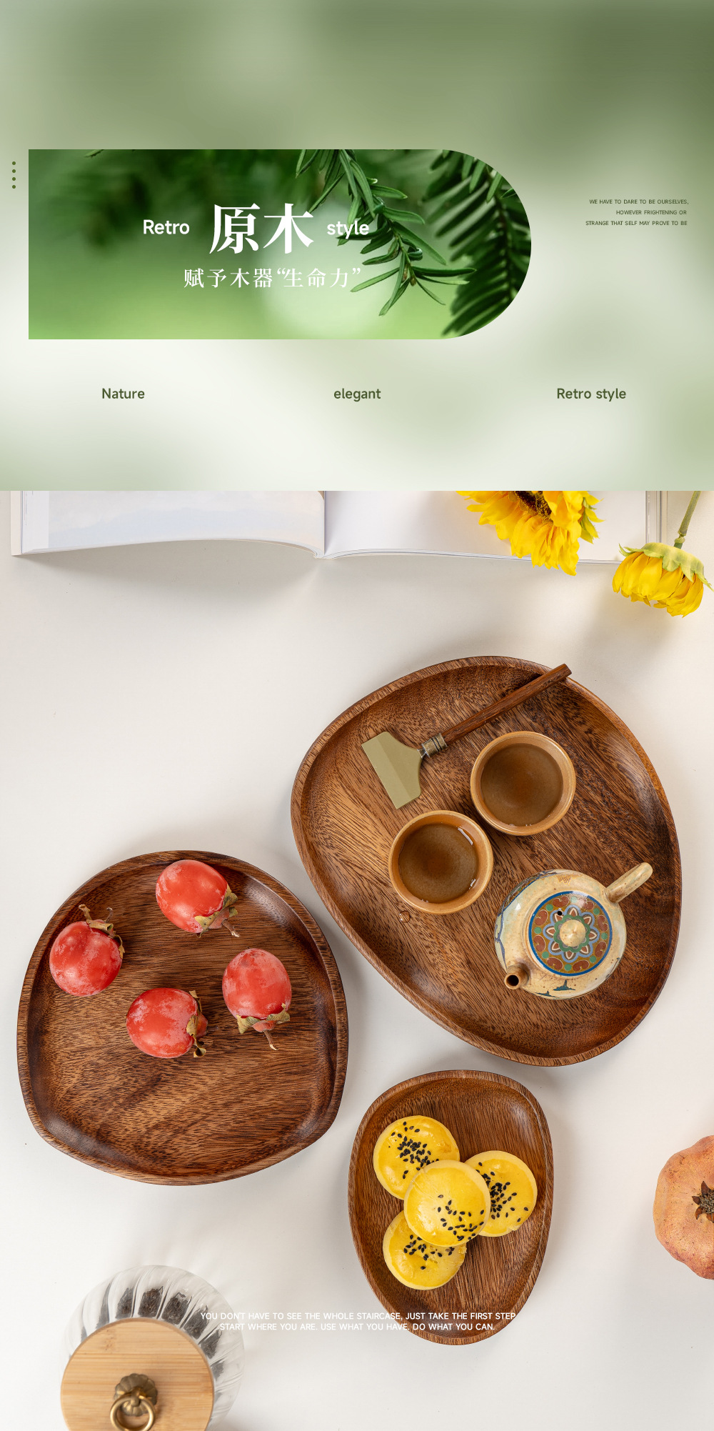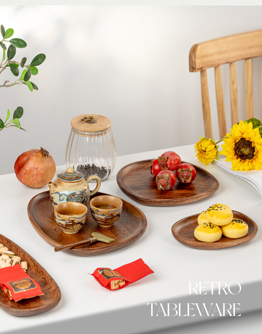 불규칙한 모양의 호두나무 다용도 트레이 가정용 식사 트레이 간식 트레이 수제 스타일 트레이스토어 가기