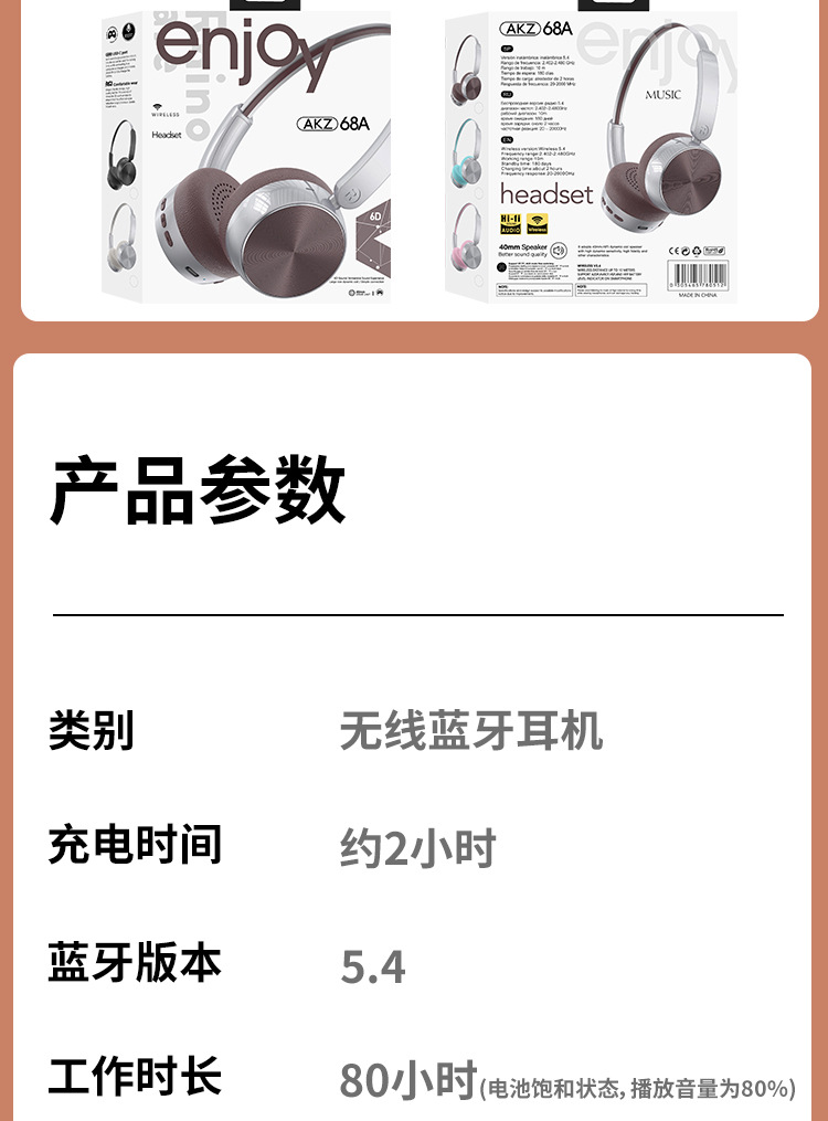 AKZ68A 복고풍 국경 전자 상거래 새로운 개인 모델 철 활 헤드 장착 무선 블루투스 헤드셋 긴 내구성 5.4스토어 가기