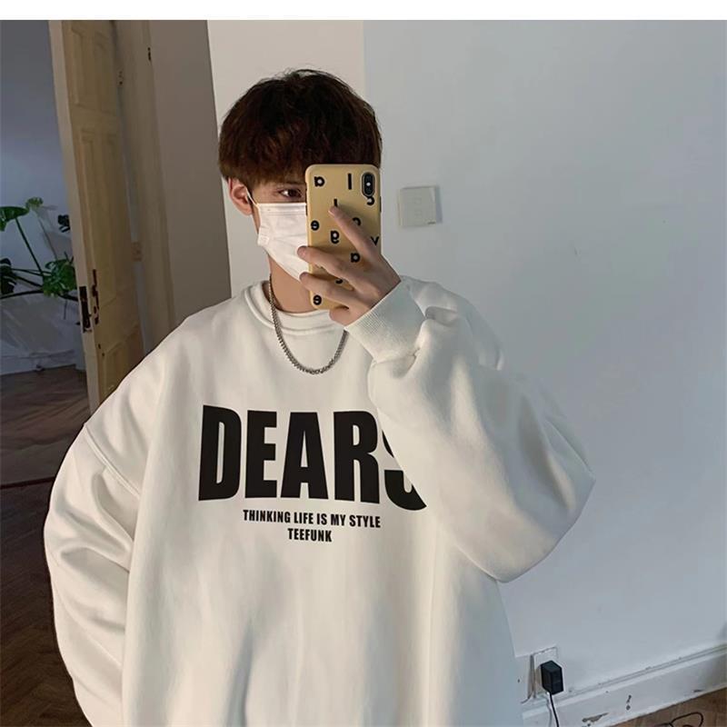 홍콩 스타일 얇은 둥근 목 풀오버 스웨트 셔츠 남자 한국 스타일 느슨한 올 매치 재킷 Instagram 스타일 기모 가을과 겨울을위한 두꺼운 옷스토어 가기