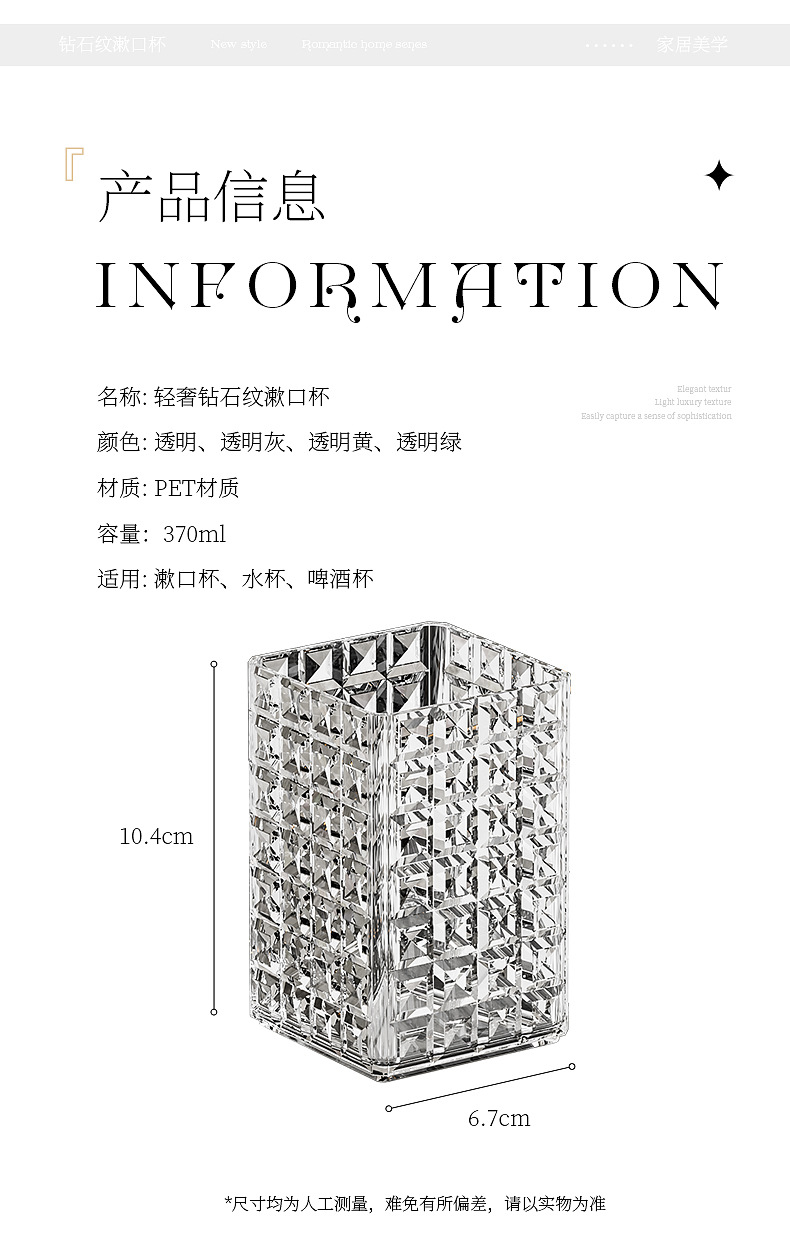 호텔 및 B&B 구강 세정제 컵, 가정용 가벼운 고급 세척 컵, 기숙사 크리에이티브 칫솔 컵, 커플 사각 칫솔 컵 도매스토어 가기