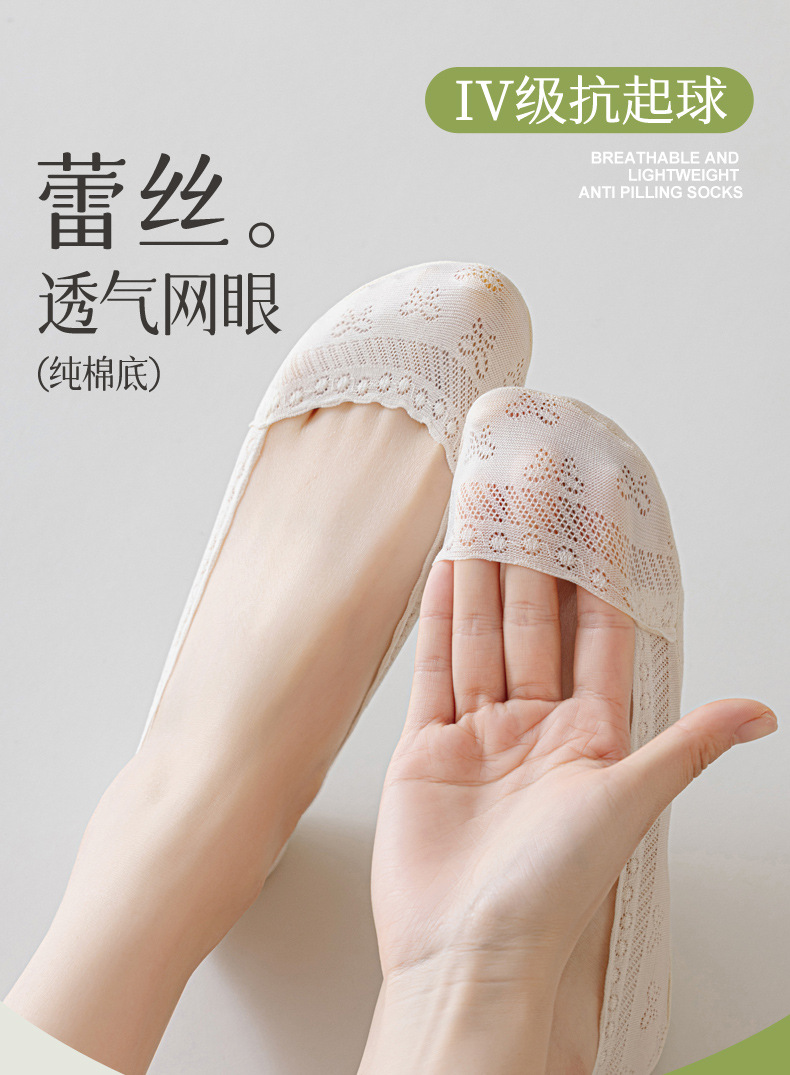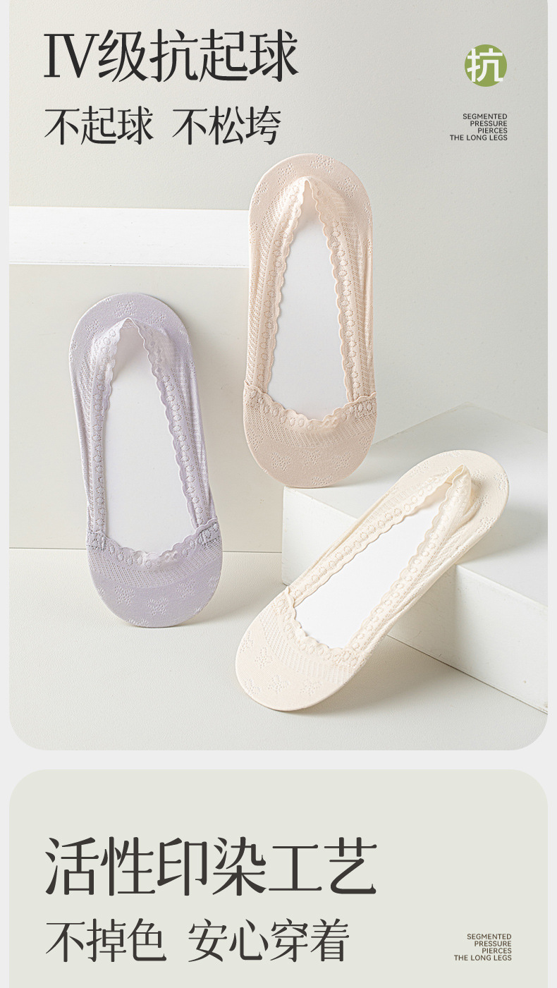 면향 레이스 얕은 입 보트 양말 노출되지 않은 가장자리 면화 하단 여름 여성을위한 얇은 미끄럼 방지 짧은 양말