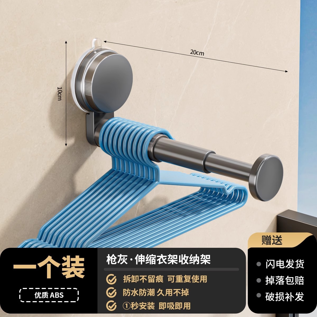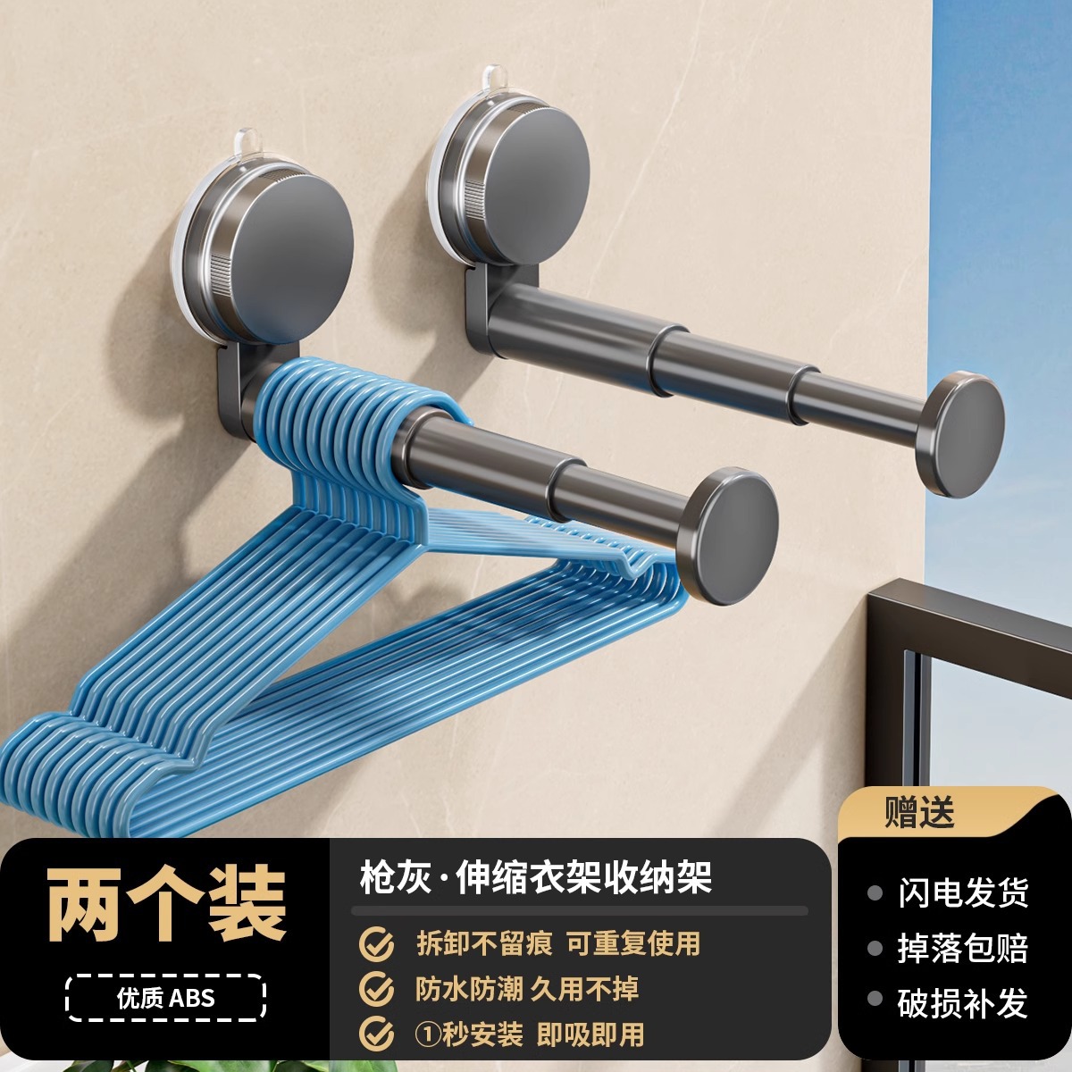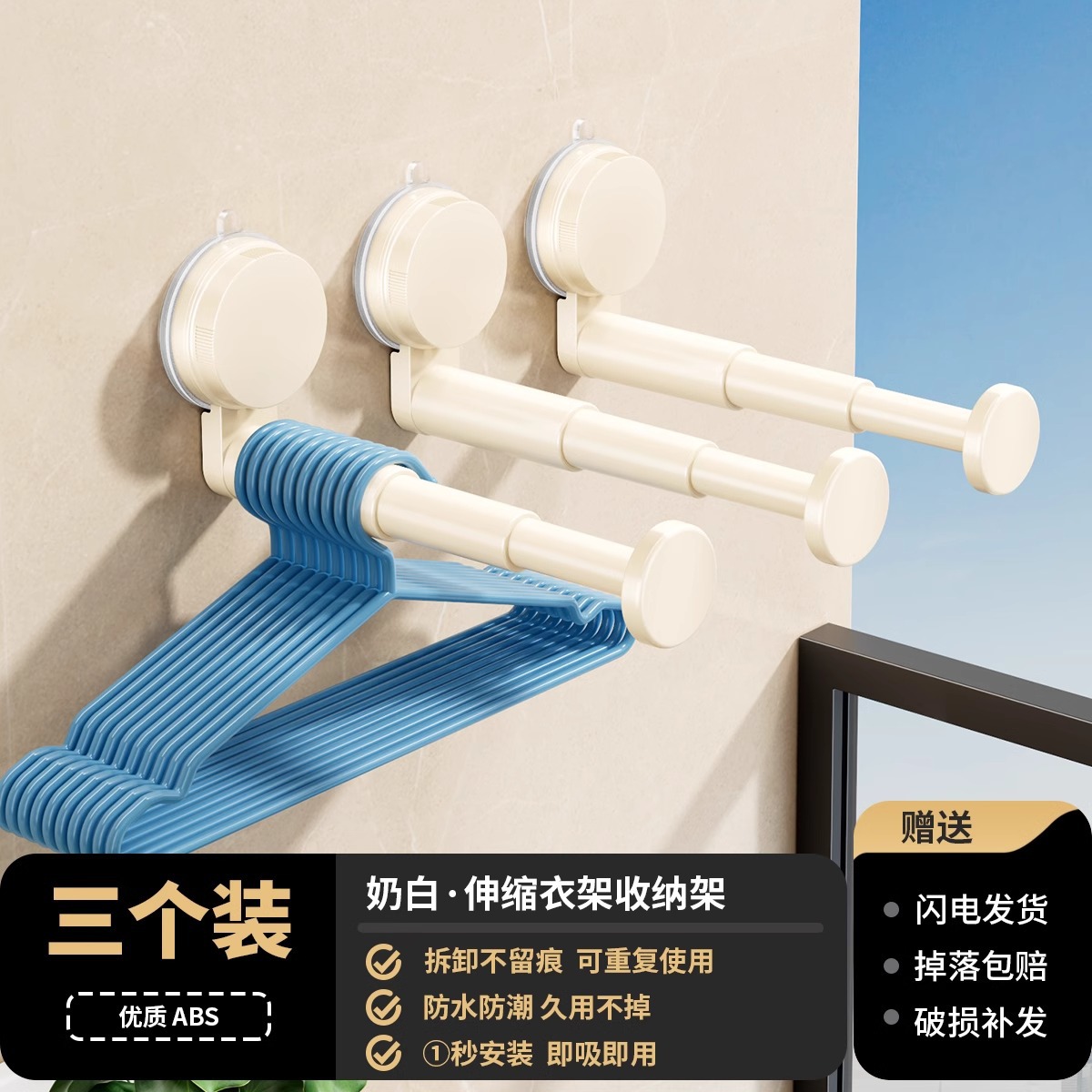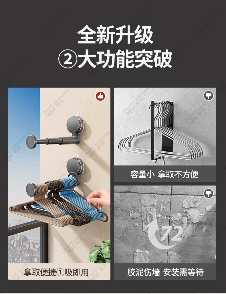 석션 컵 행거 보관 아티팩트 가정용 발코니 다기능 텔레스코픽 비 펀치 벽 교수형 원활한 옷 랙스토어 가기